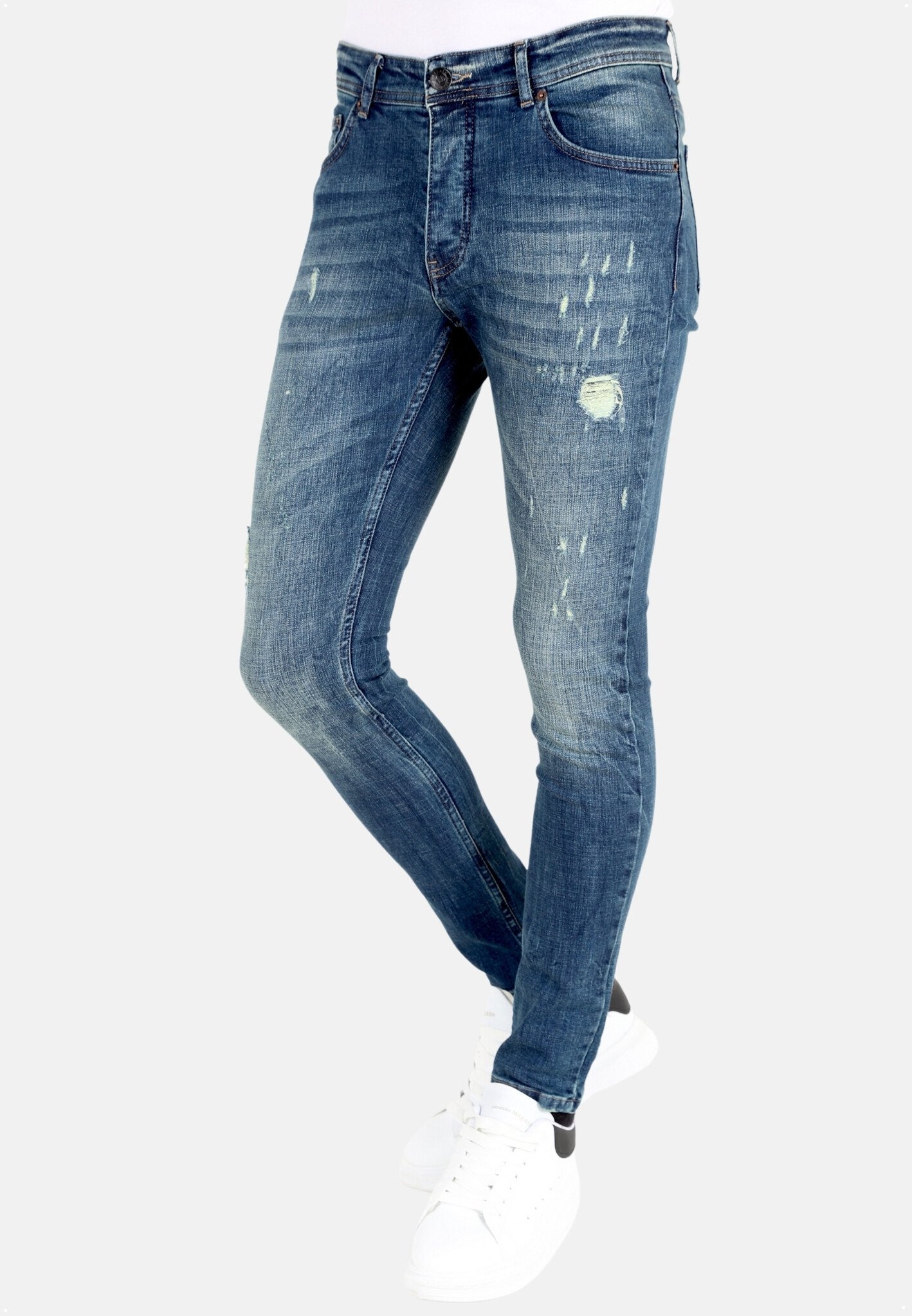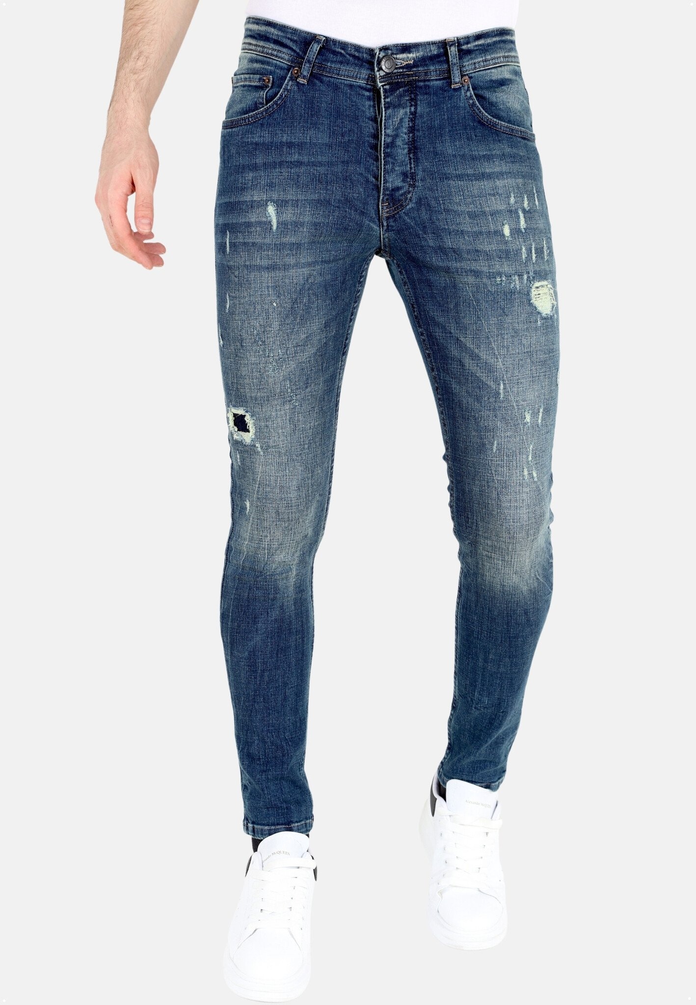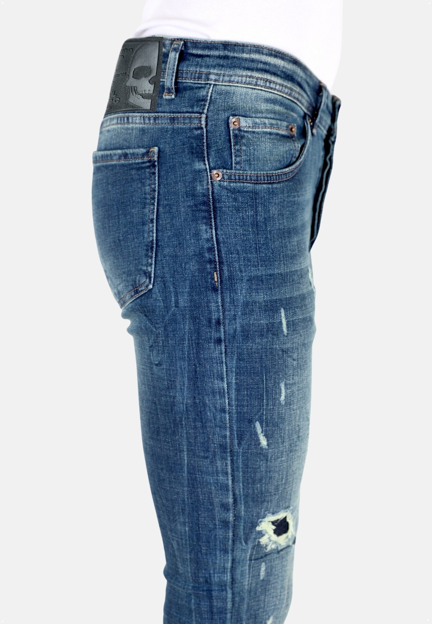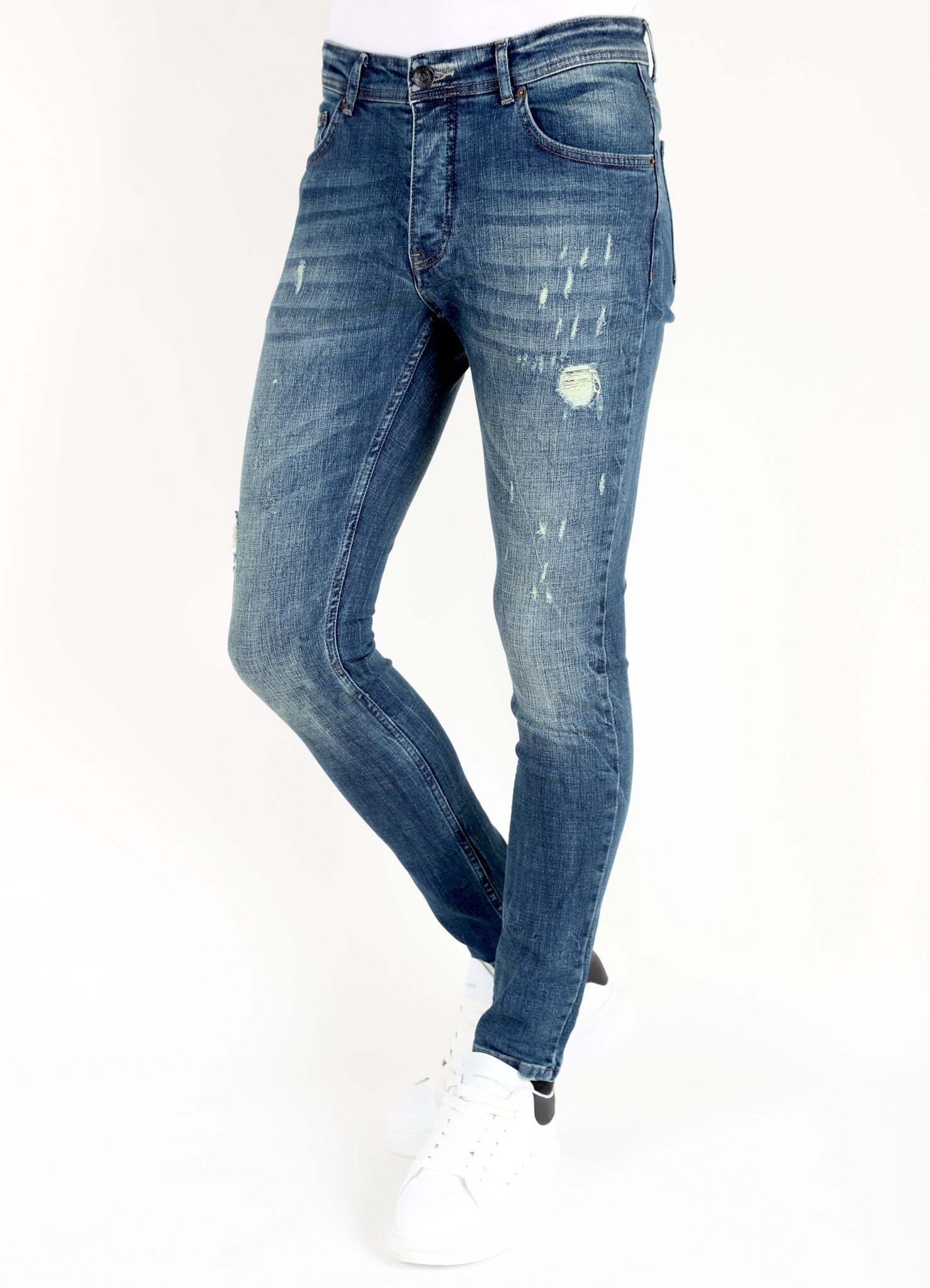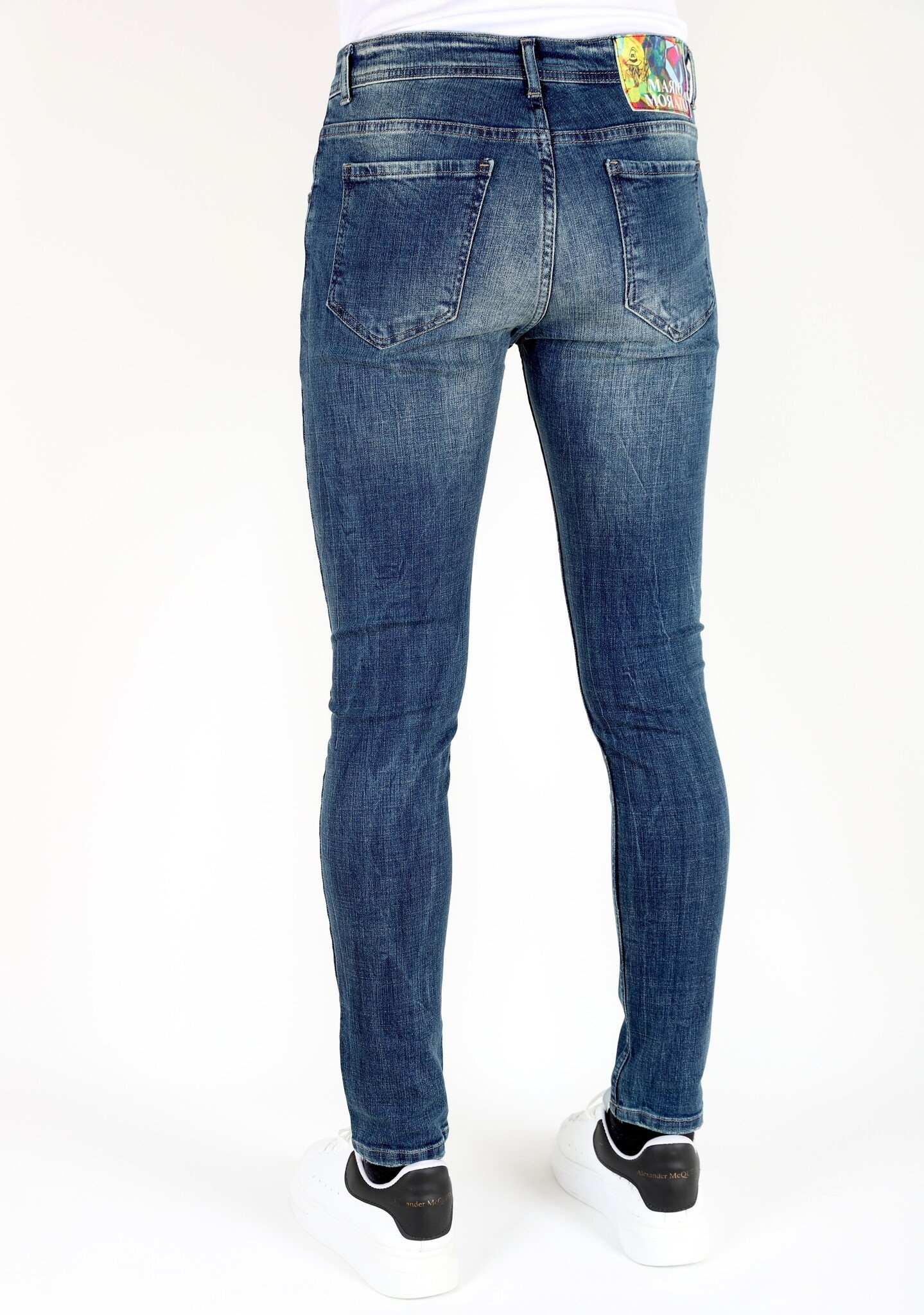 Blå Slim Fit Jeans med Tårar Herr -MM118- Blå