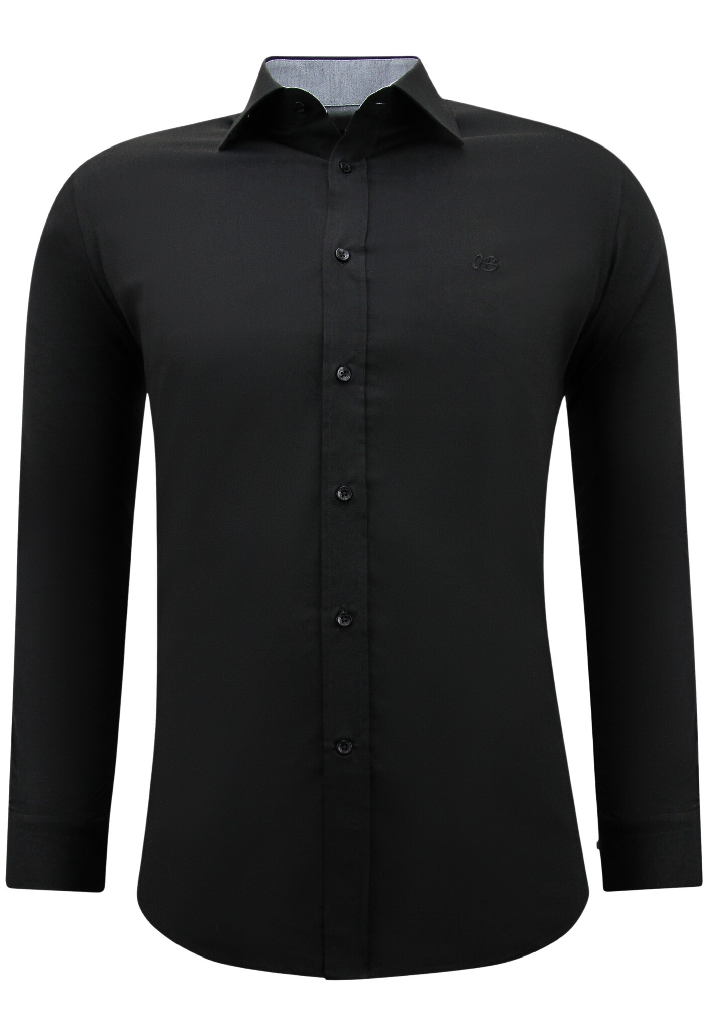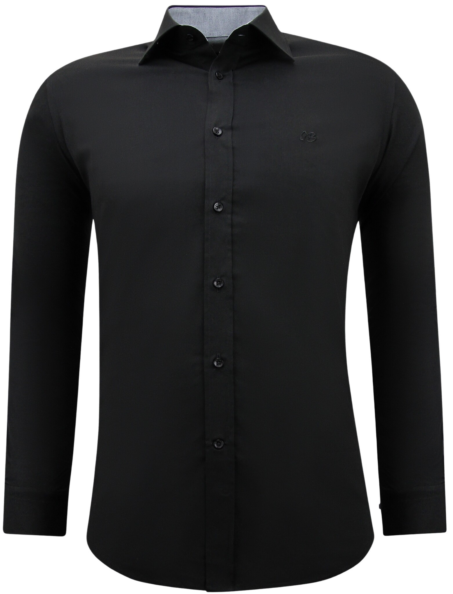 Businessskjorta för män - Blus med smal passform och stretch - Svart