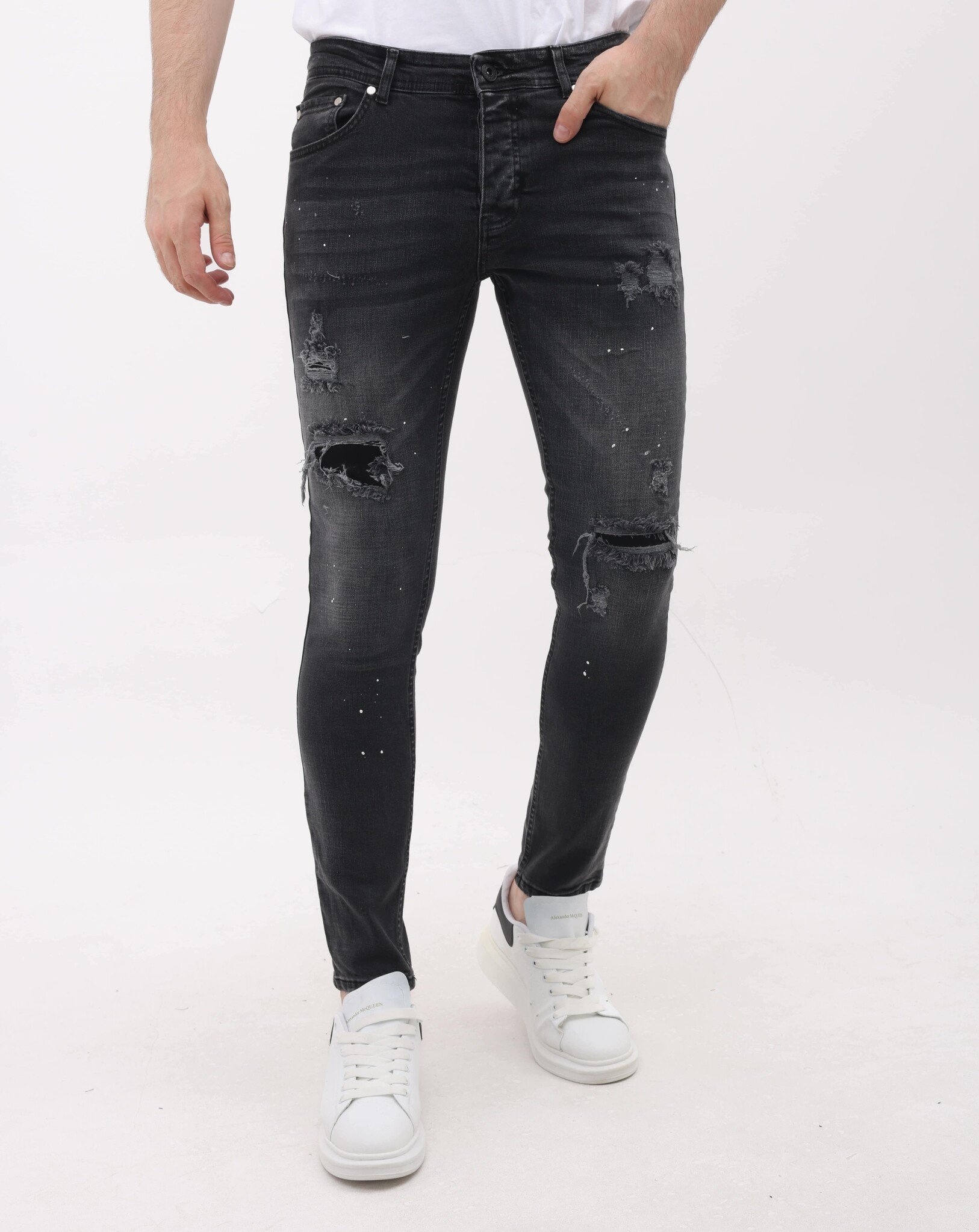 Jeans för män Slim Fit-jeans med färgstänk - MM-S-114 - Grå