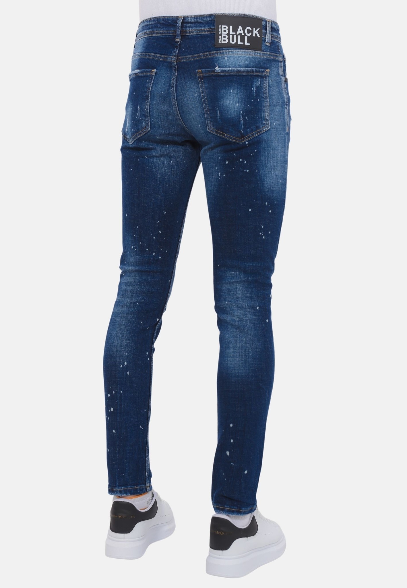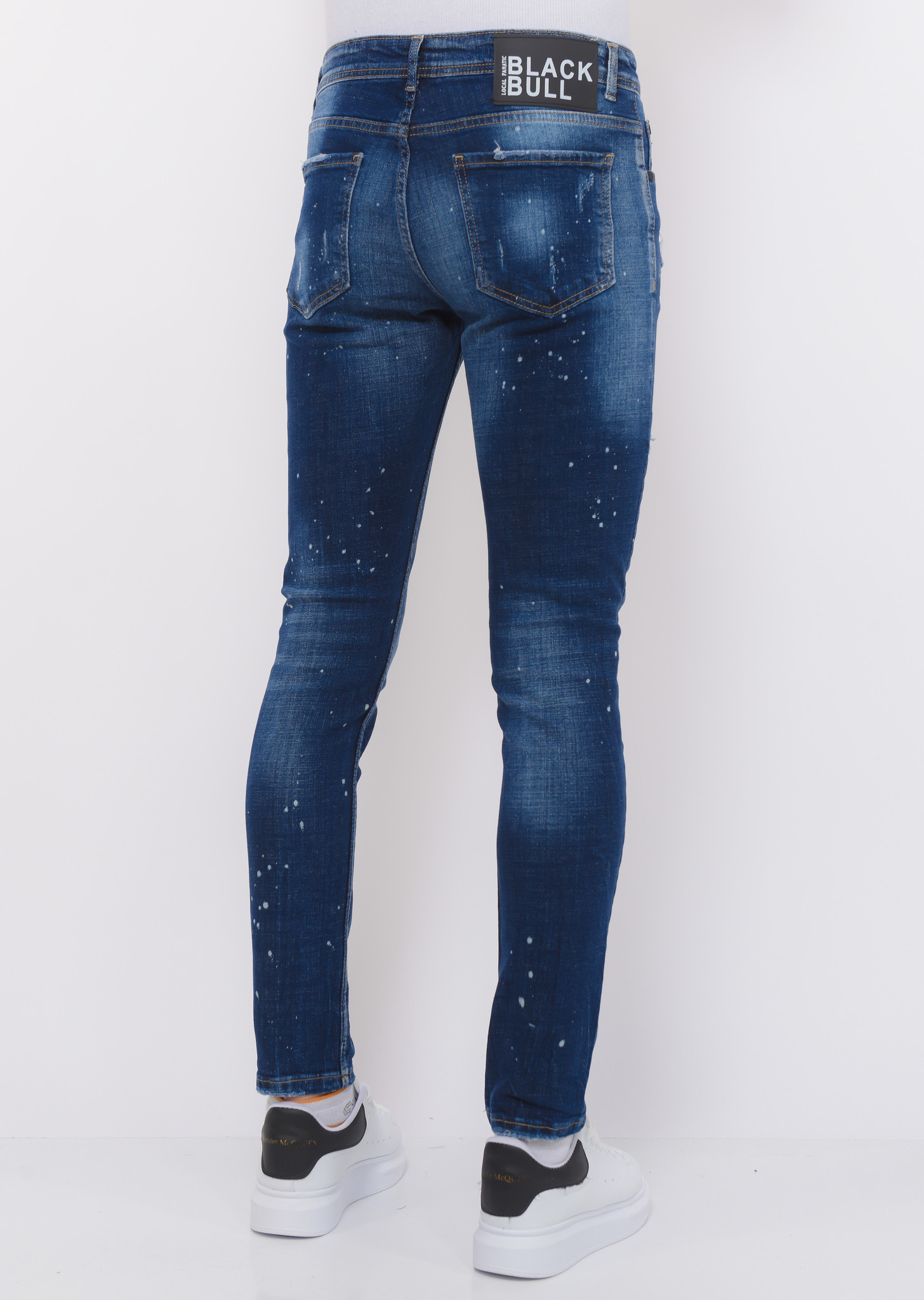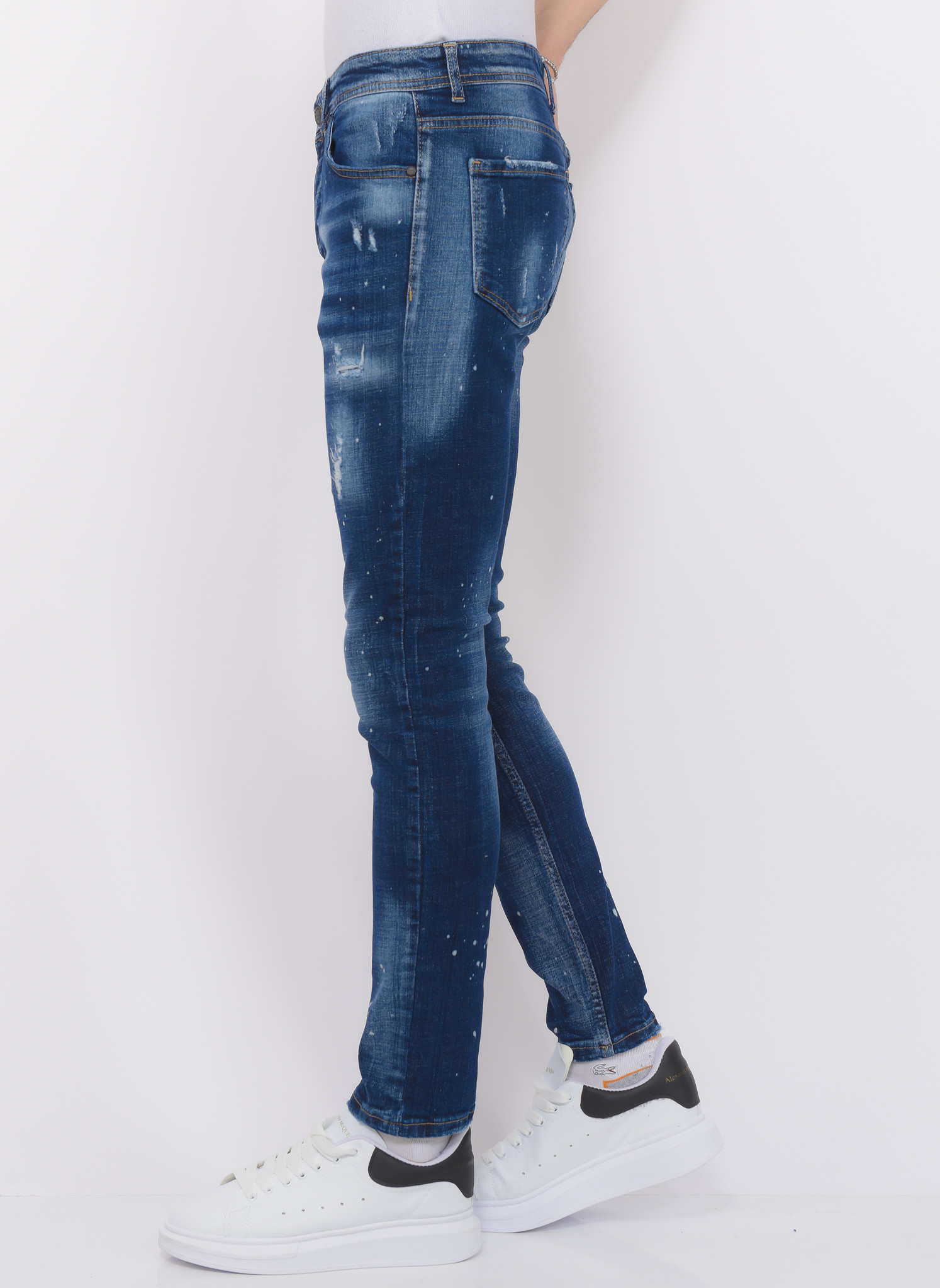 Herr Paint Splatter Stonewashed Jeans Slim Fit -1077 - Bla