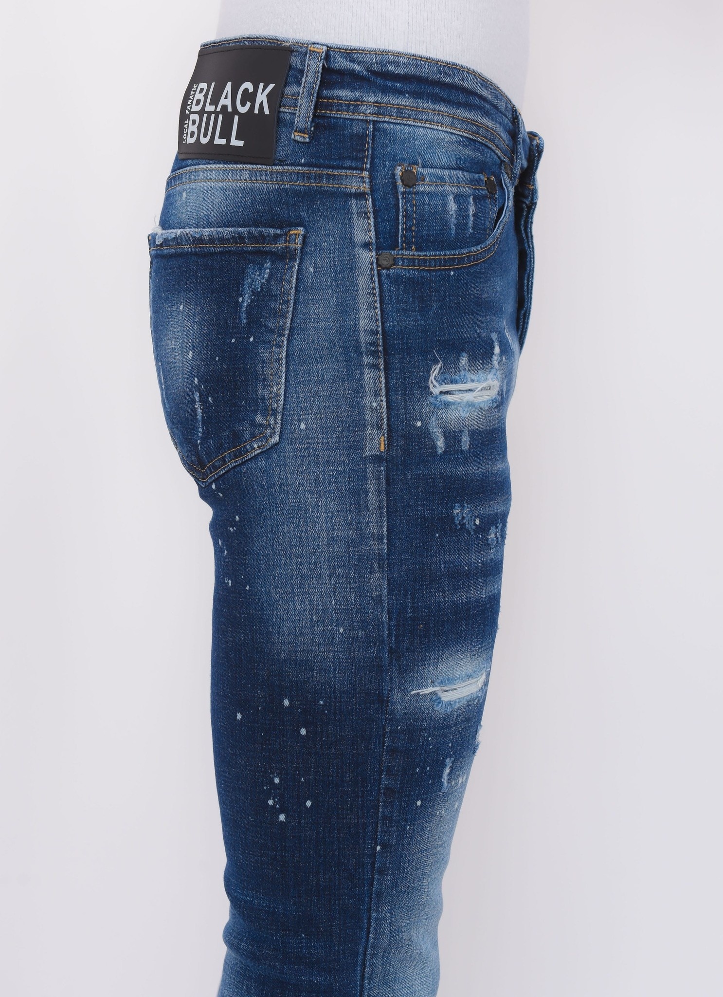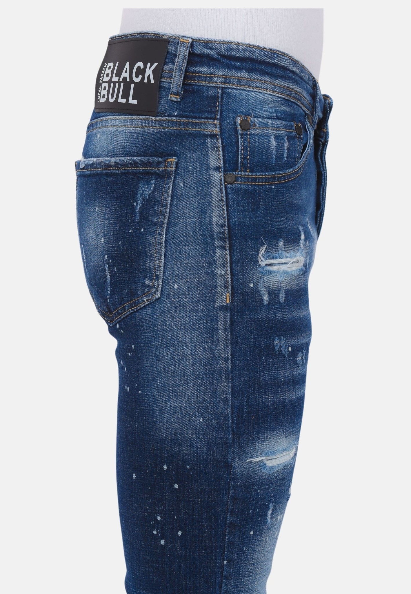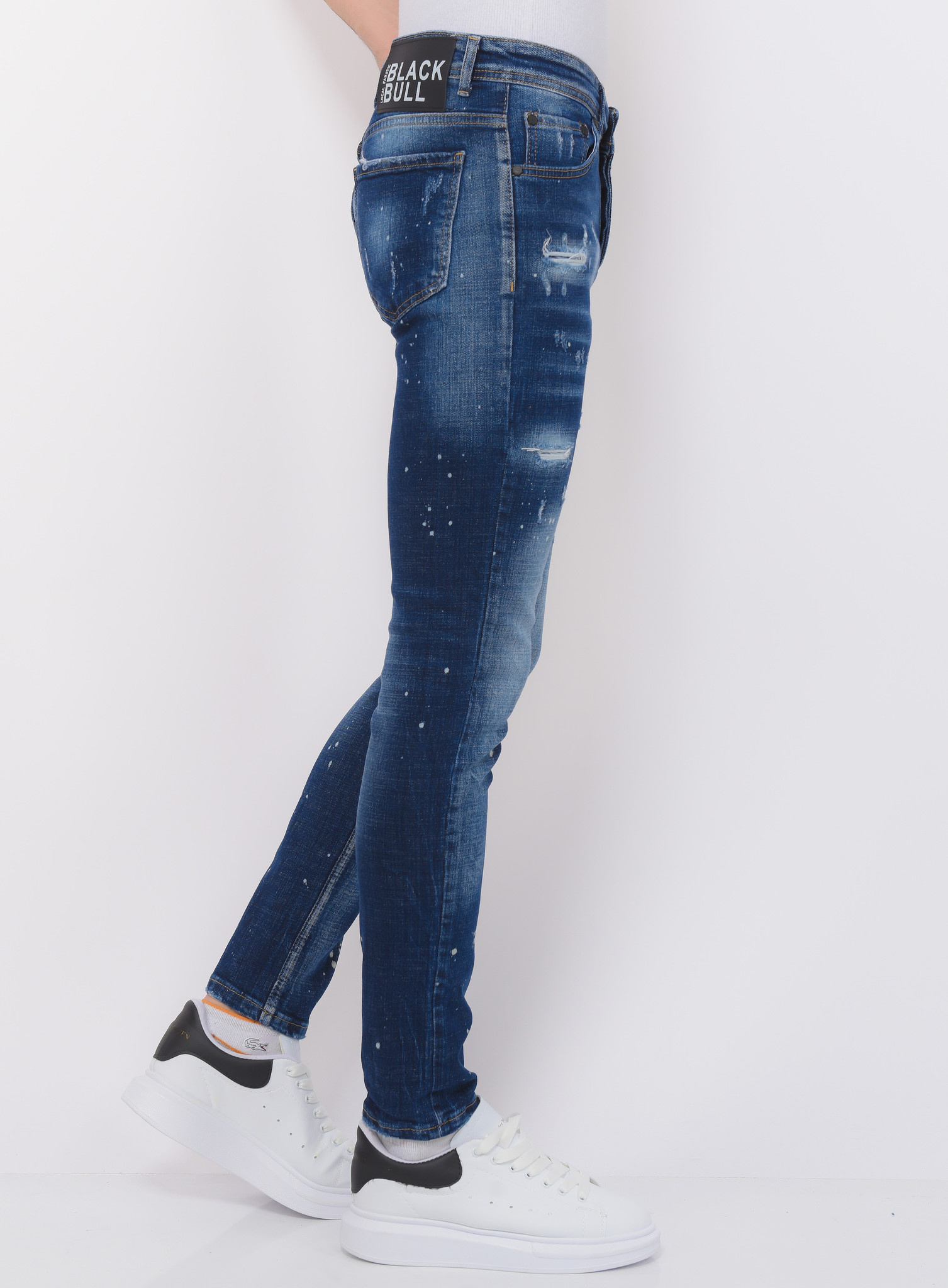 Herr Paint Splatter Stonewashed Jeans Slim Fit -1077 - Bla