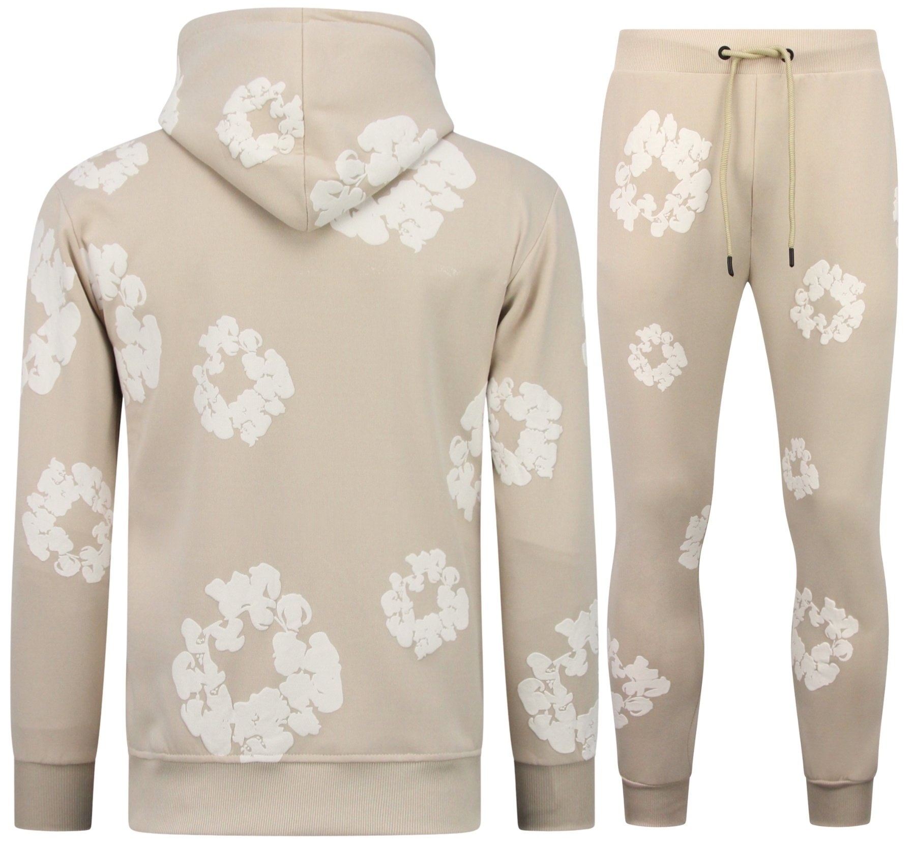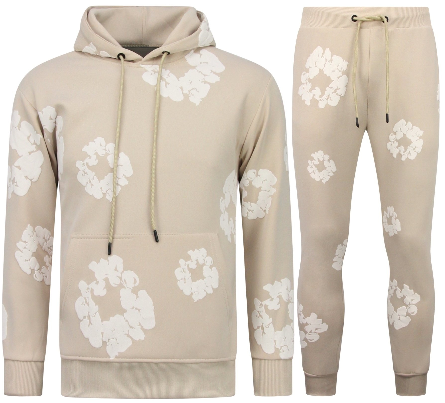 Tjock vävd herrträningsoverall med heltäckande blommönster - Herrdräkt med blommönster - Twinset - 5991 - Beige