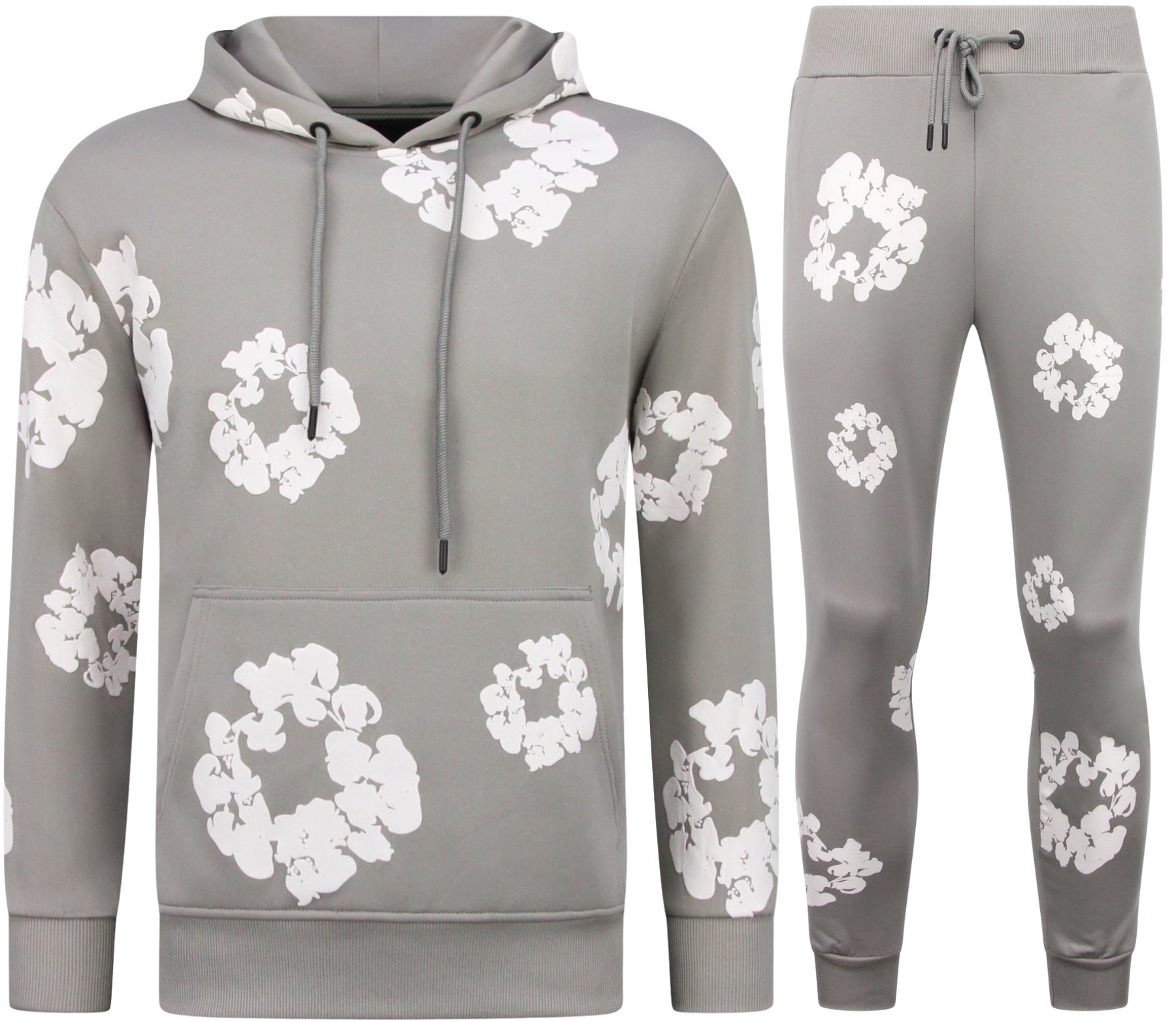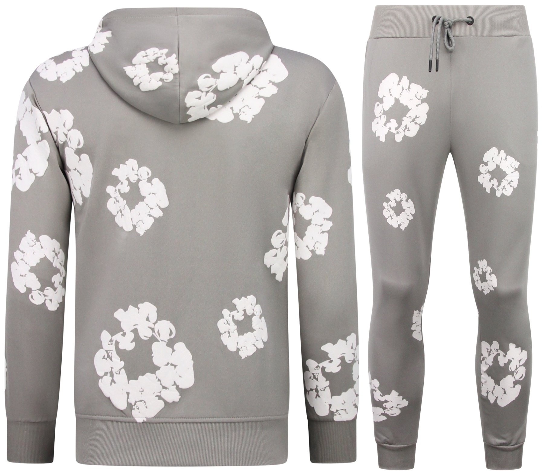 Tjock vävd herrträningsoverall med heltäckande blommönster - Herrdräkt med blommönster - Twinset - 5991 - Grå