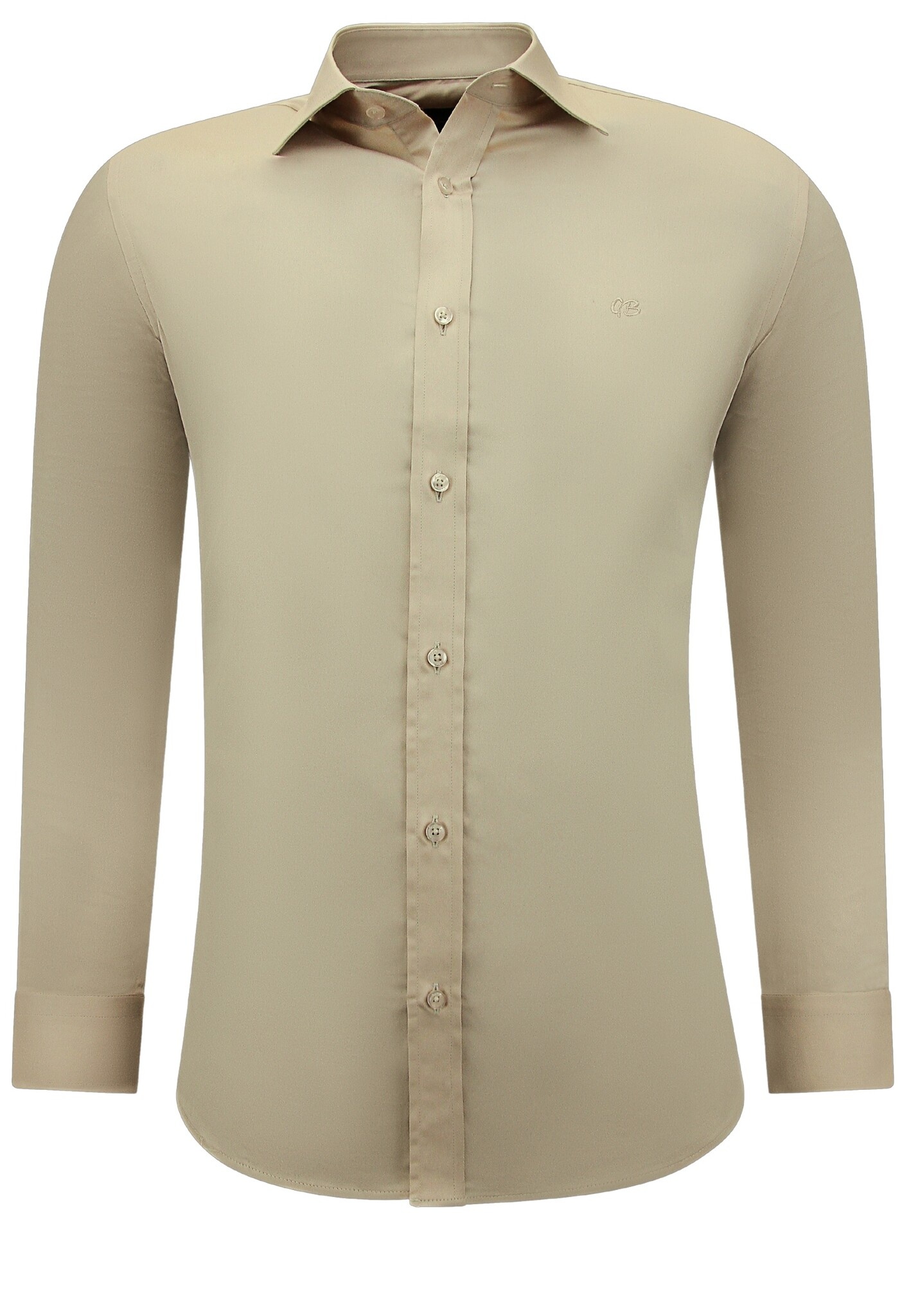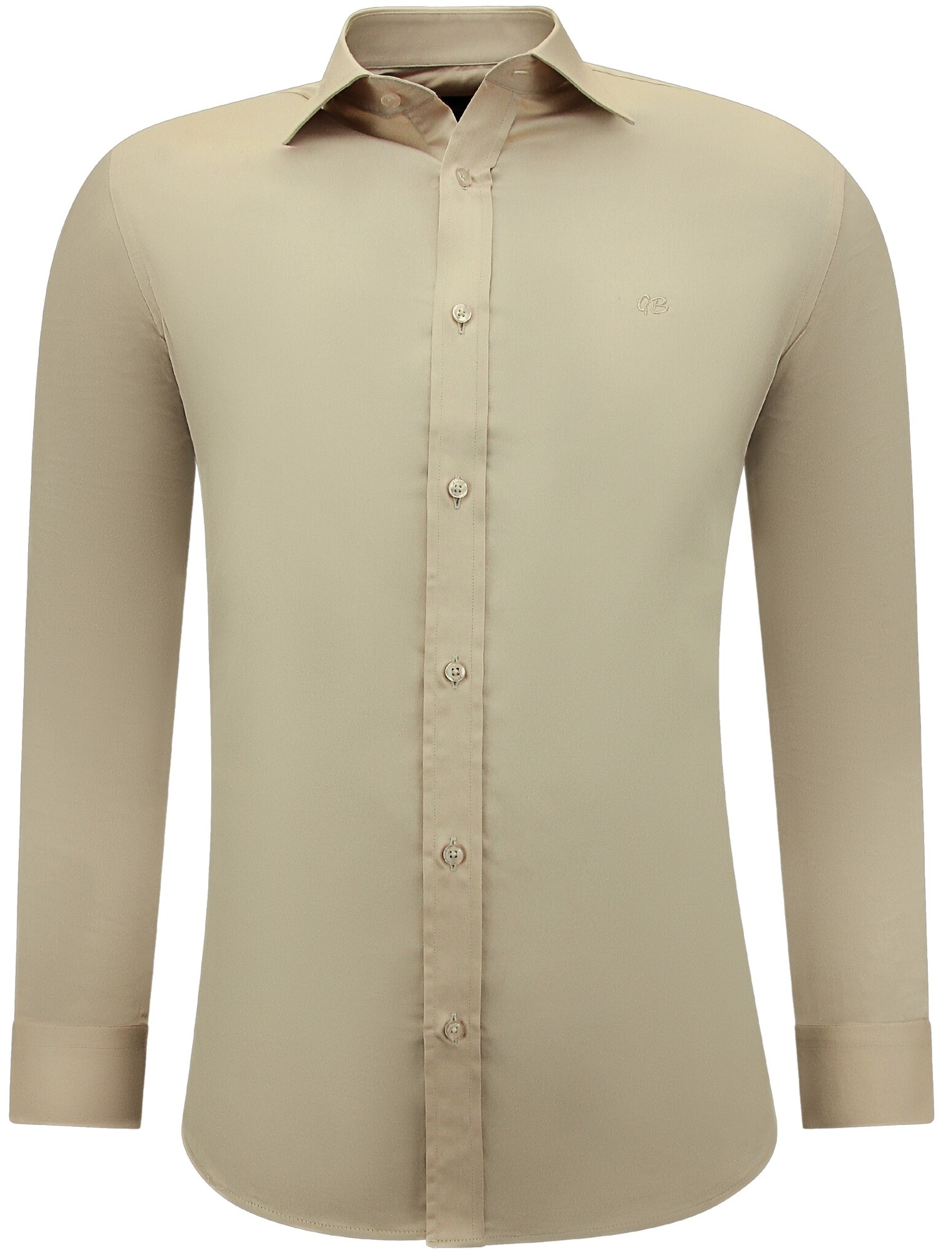 Icke-järn Satinskjorta Slim Fit Långärmad Herr - Beige