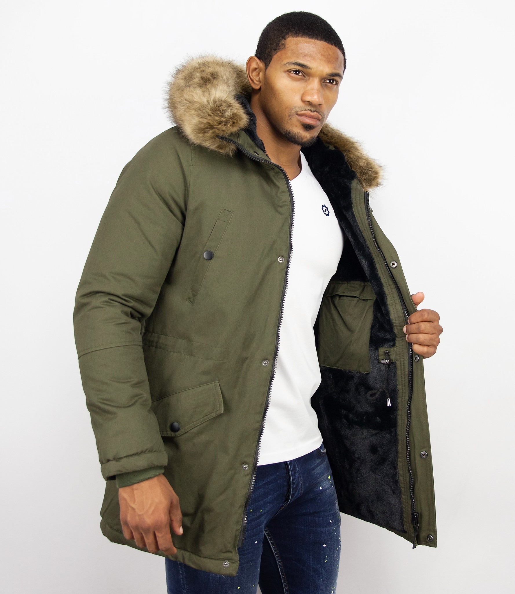 Jacka Med Fuskpälskrage - Tjocka Vinterjackor Herr - CA-7023G - Grön