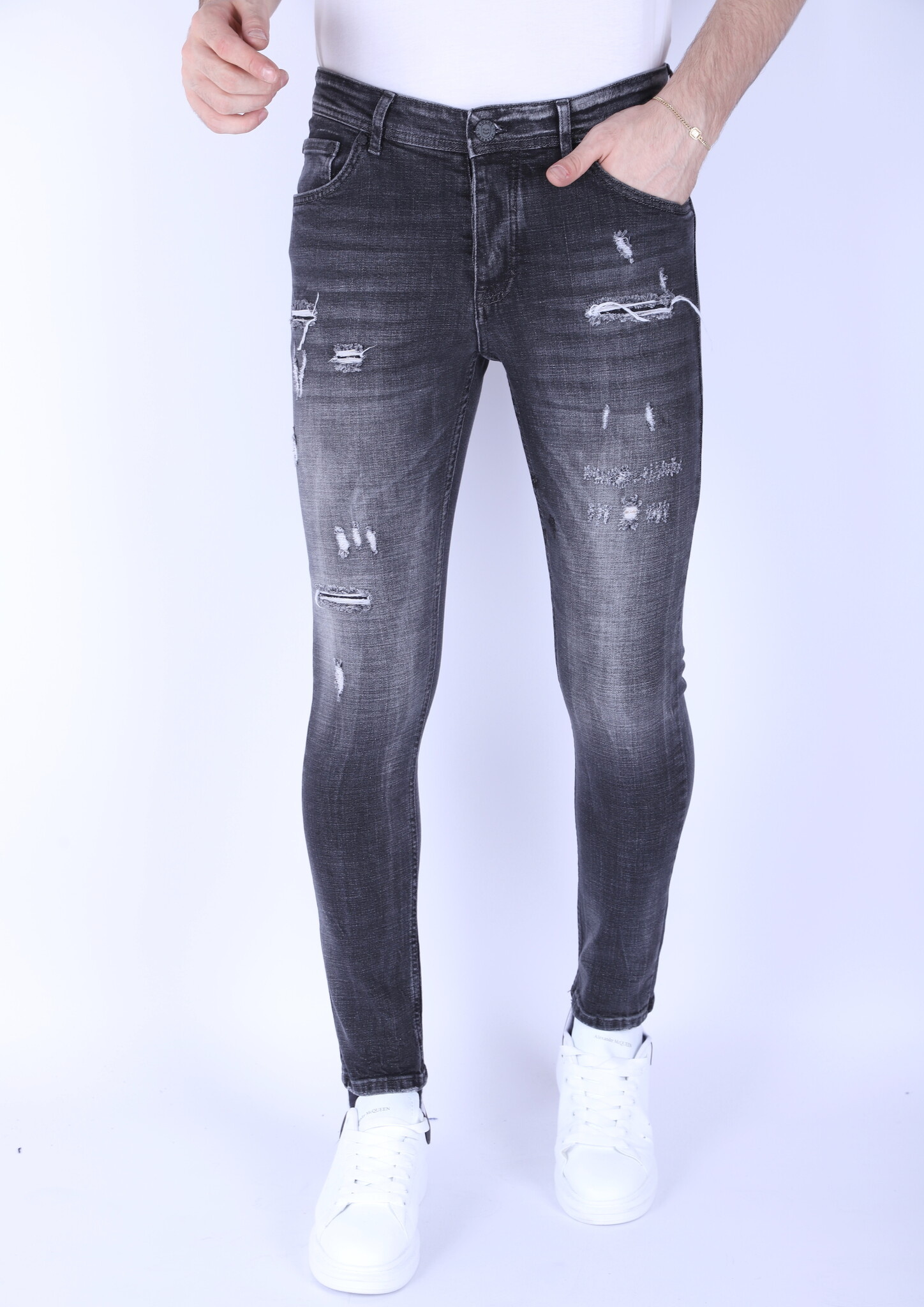 Jeans för män med Rips Slim Fit -1099 - Grå
