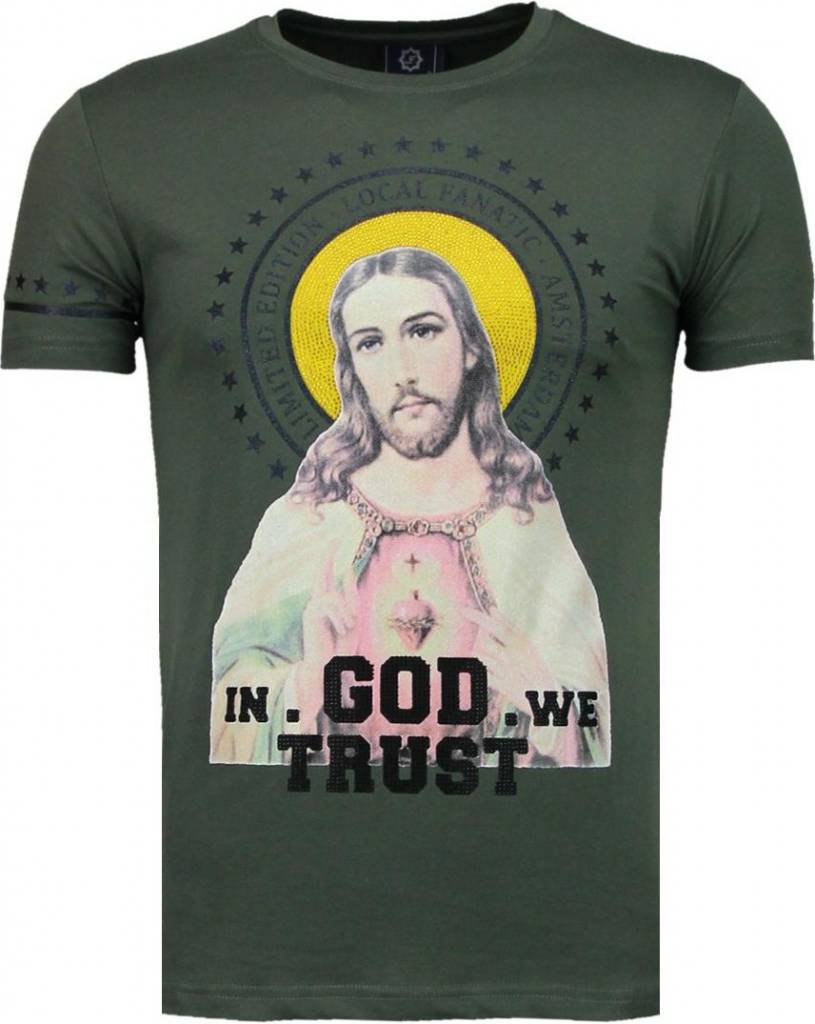 Jesus God Trust Rhinestone - Man T Shirt - 5094G - Grön