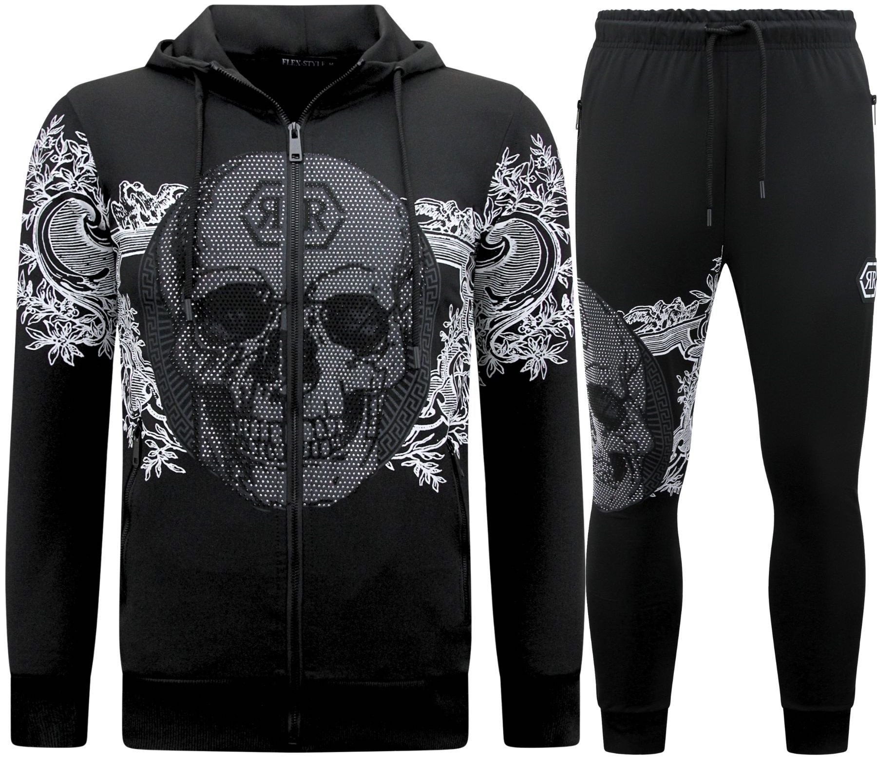 Joggingdräkt med tryck för herrar - Husdräkt - Traningsuit - 2676 - Svart