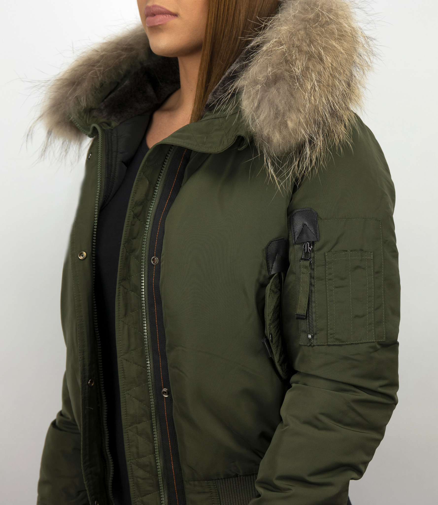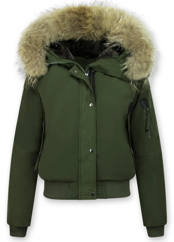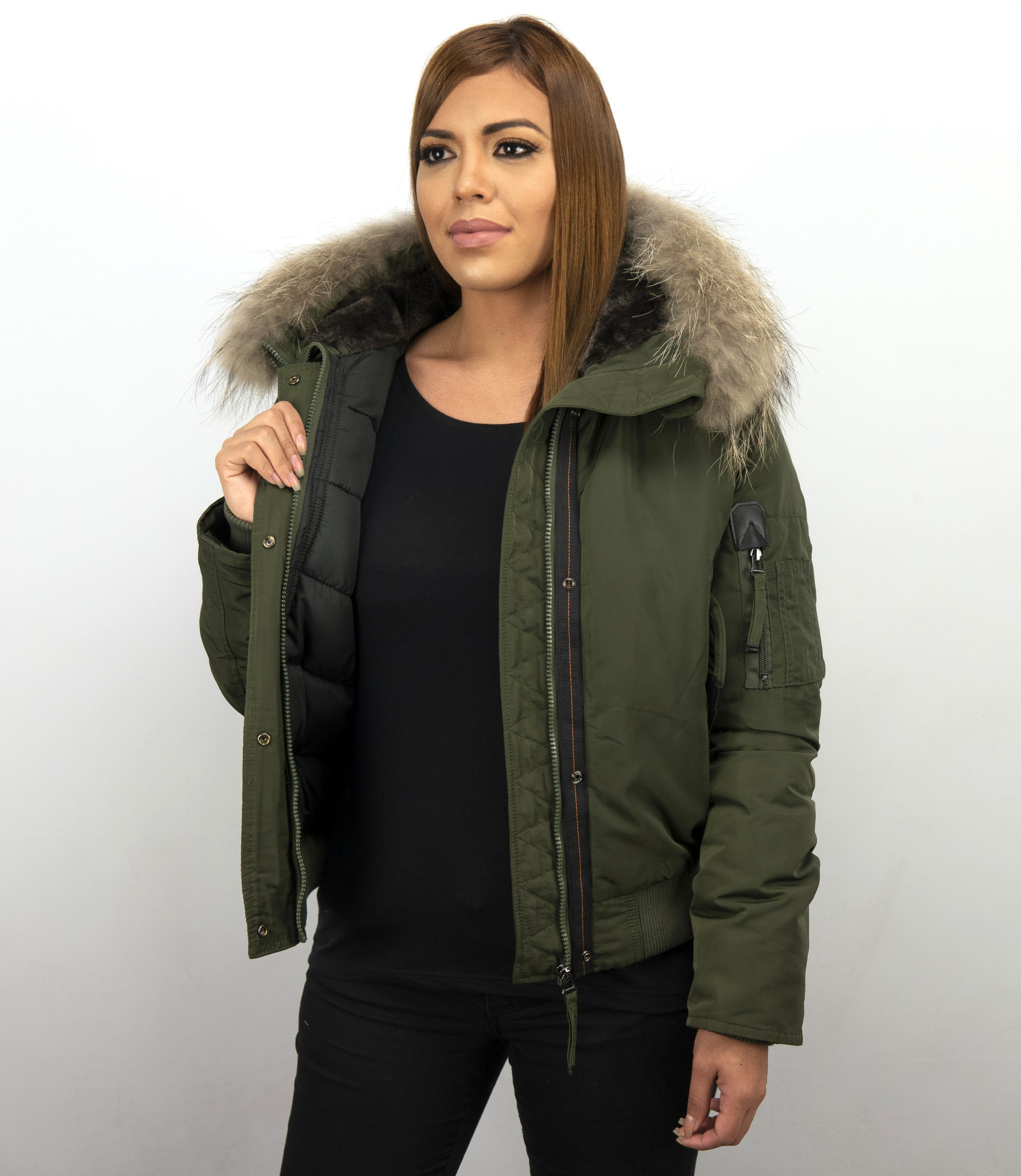Vinterjacka Dam - Kort Jacka Dam med äkta Pälskrage - Grön