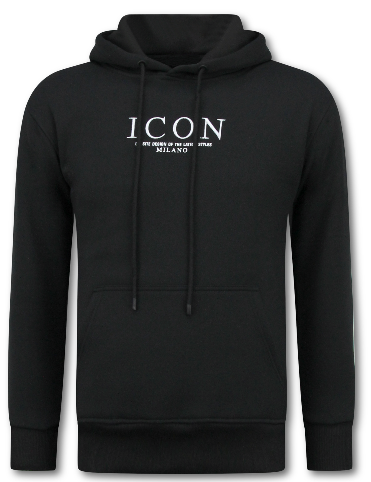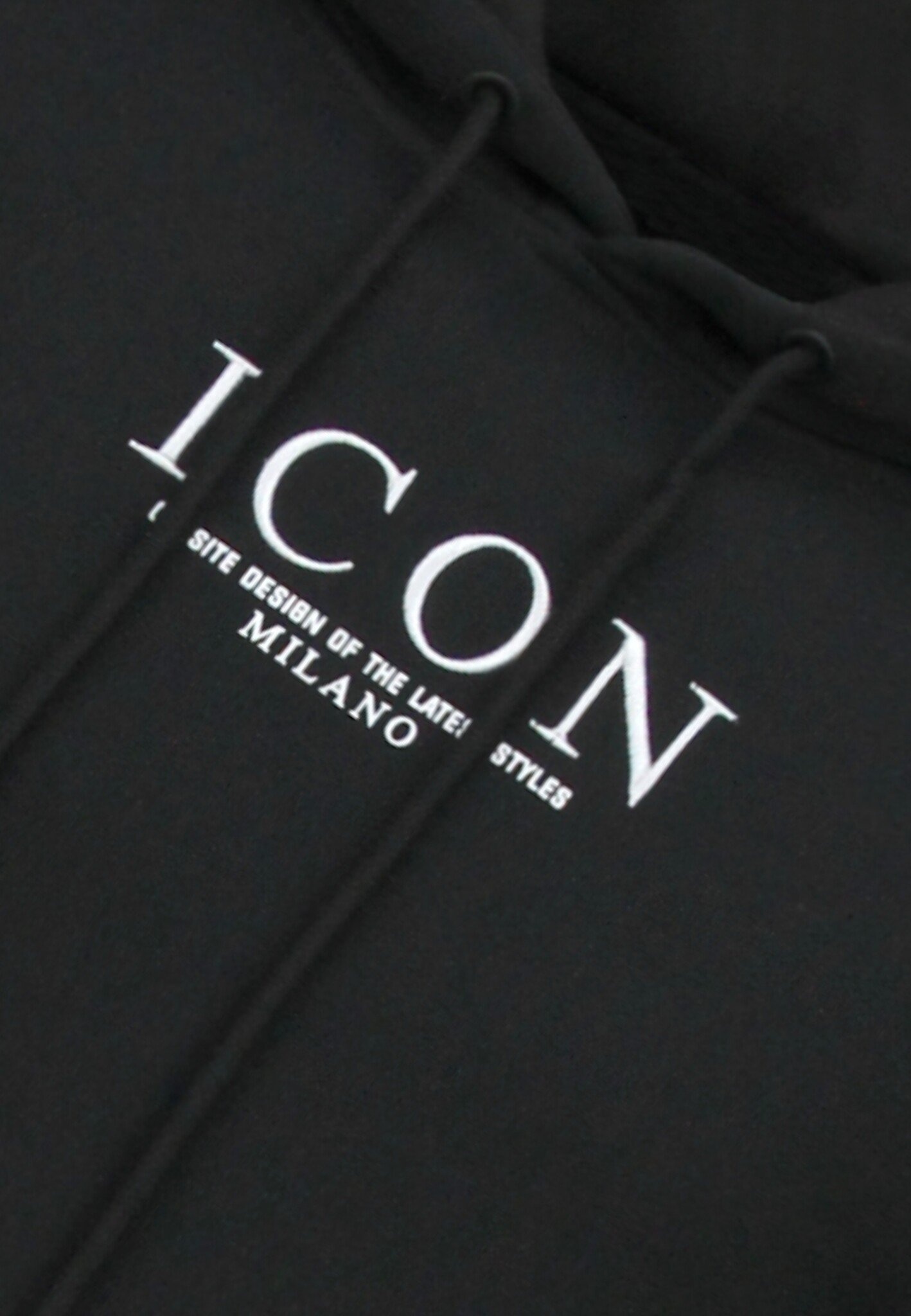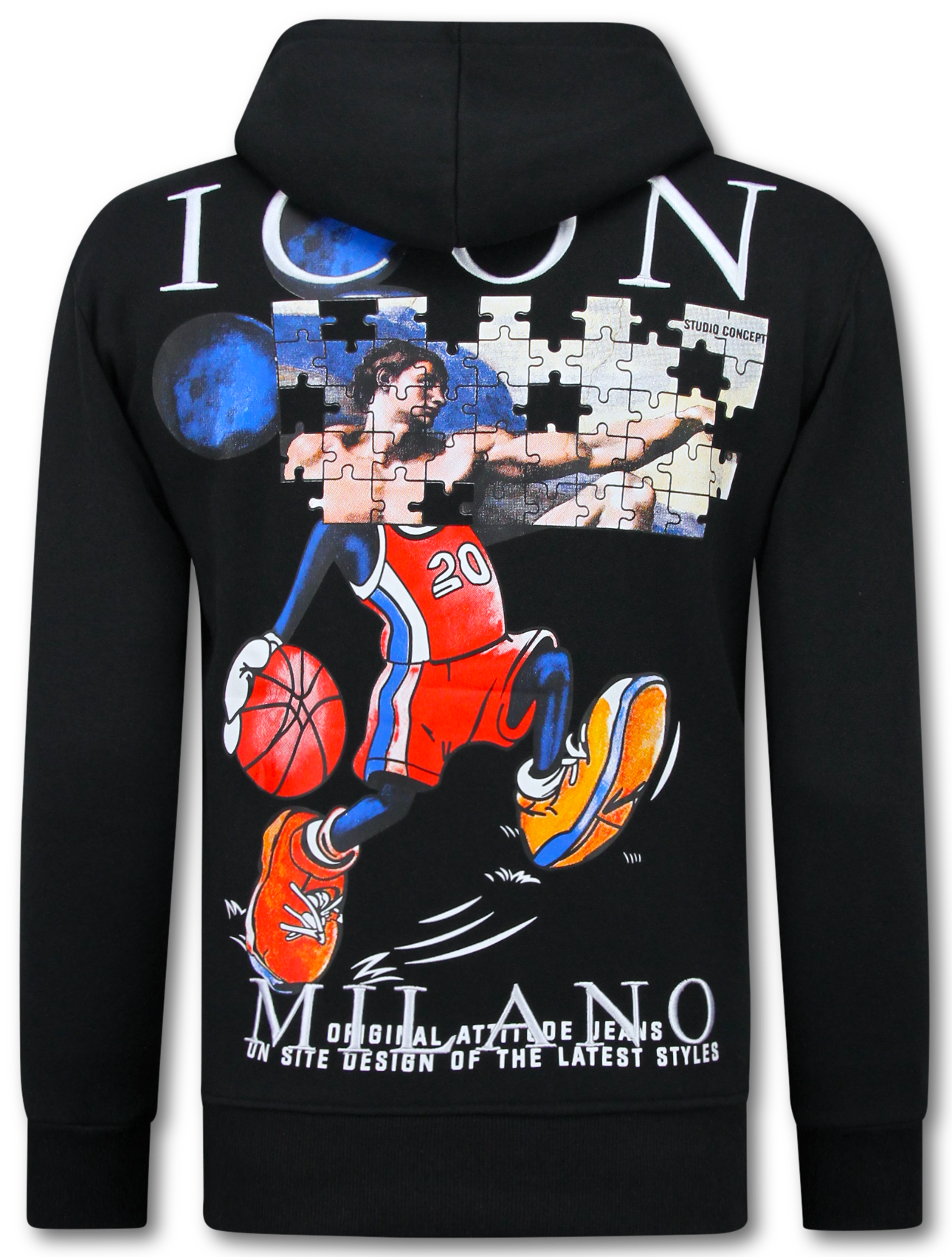 Överdimensionerad Hoodie Herr med Huva - ICON Puzzle Milano Print - Tjock Vävd - 5811 - Svart