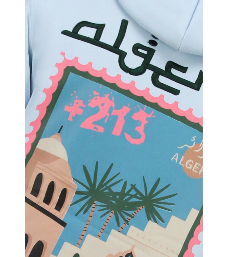 Överdimensionerad Hoodie Herr med Huva - Algeriet Mönster - Tjock Vävd - 5816 - Ljusblå