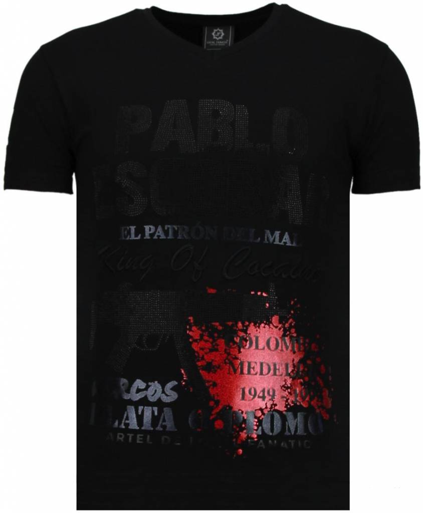Pablo Escobar Narcos Rhinestone - Man T Shirt - 5782Z - Svart