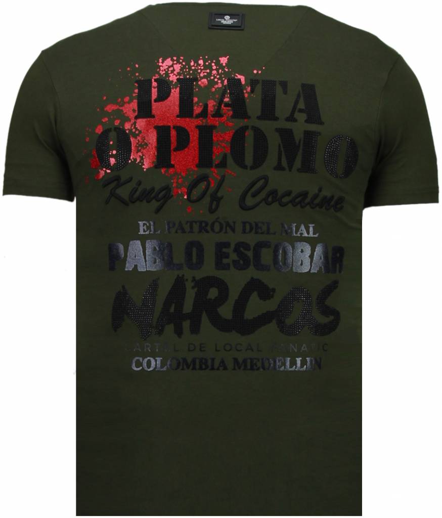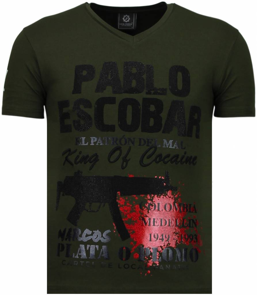 Pablo Escobar Narcos Rhinestone - T Shirt Herr - 5782G - Grön