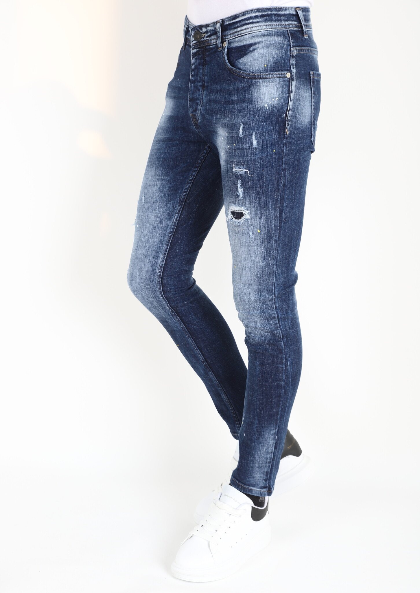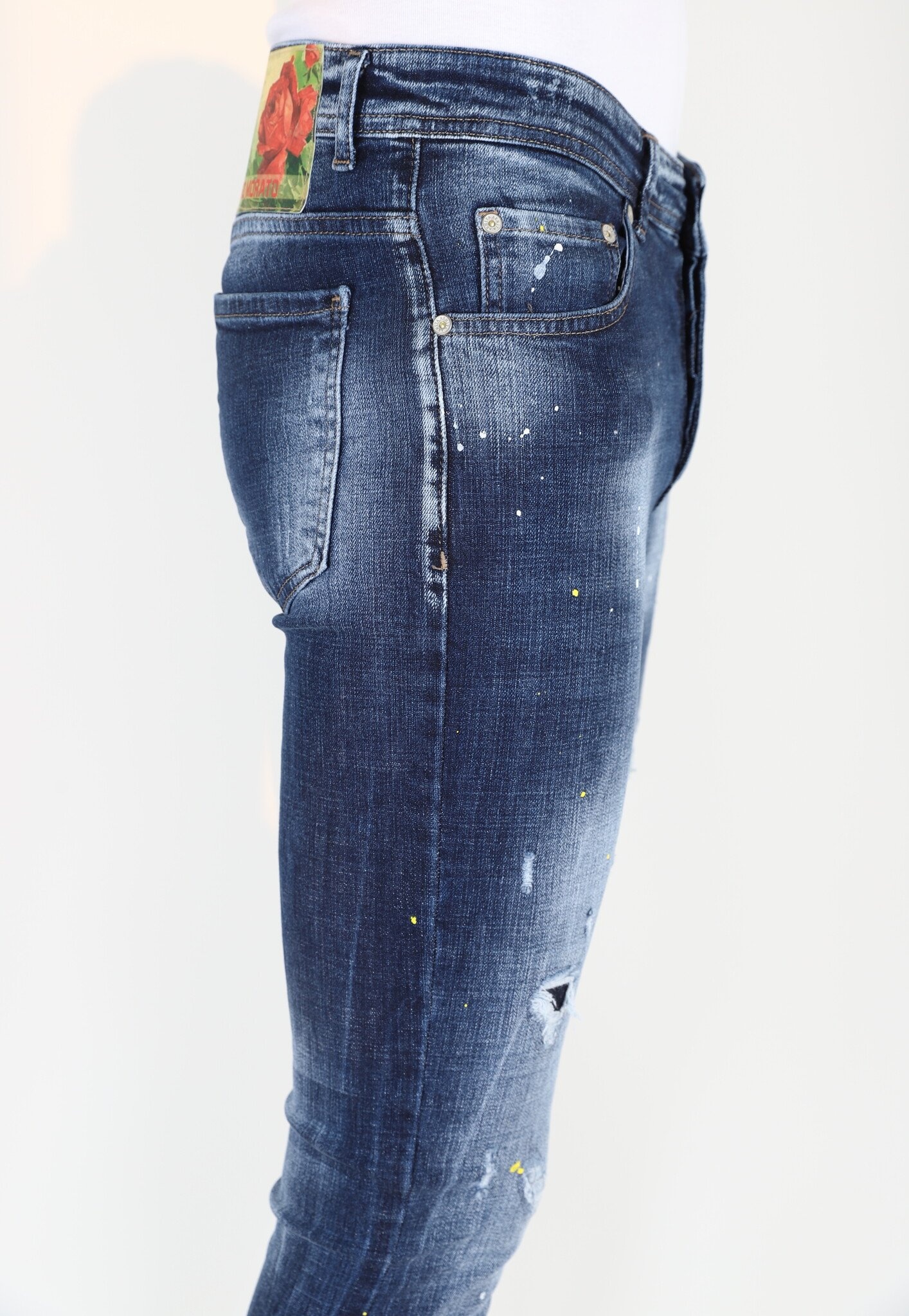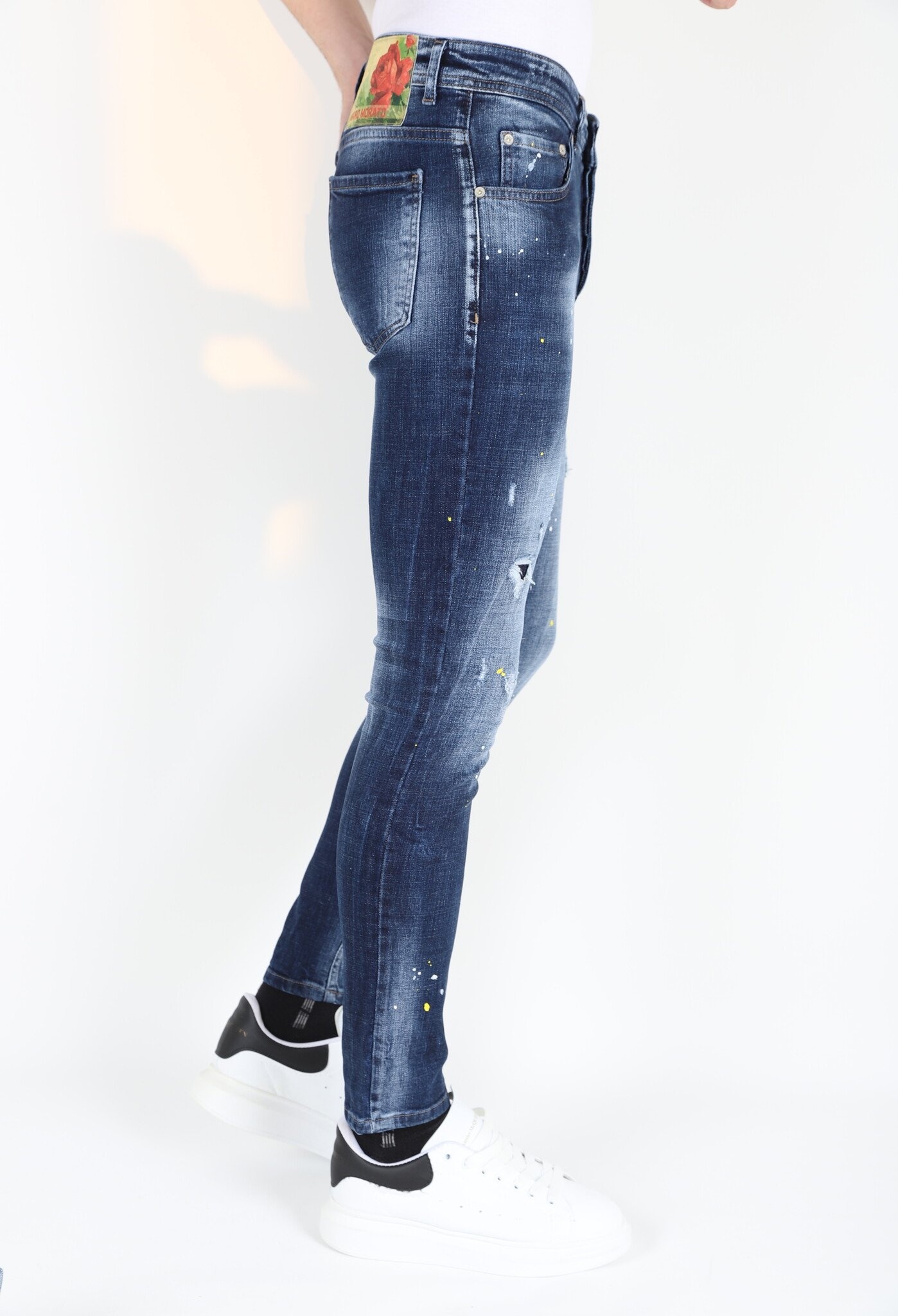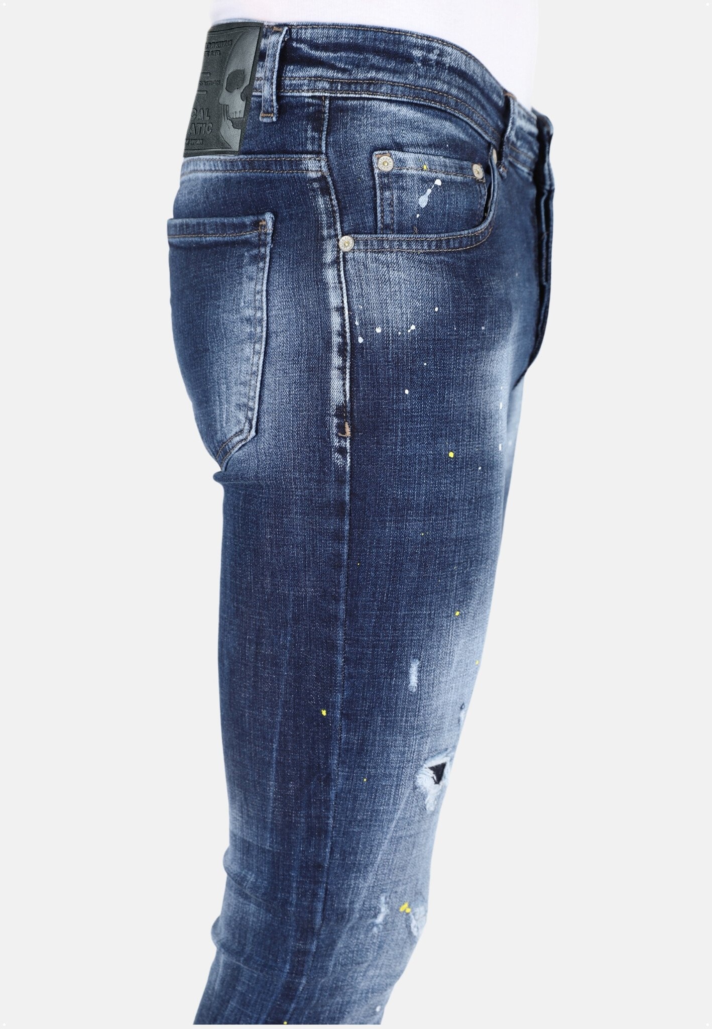 Paint Splatter Jeans Slim Fit med hål för män -MM116- Blå