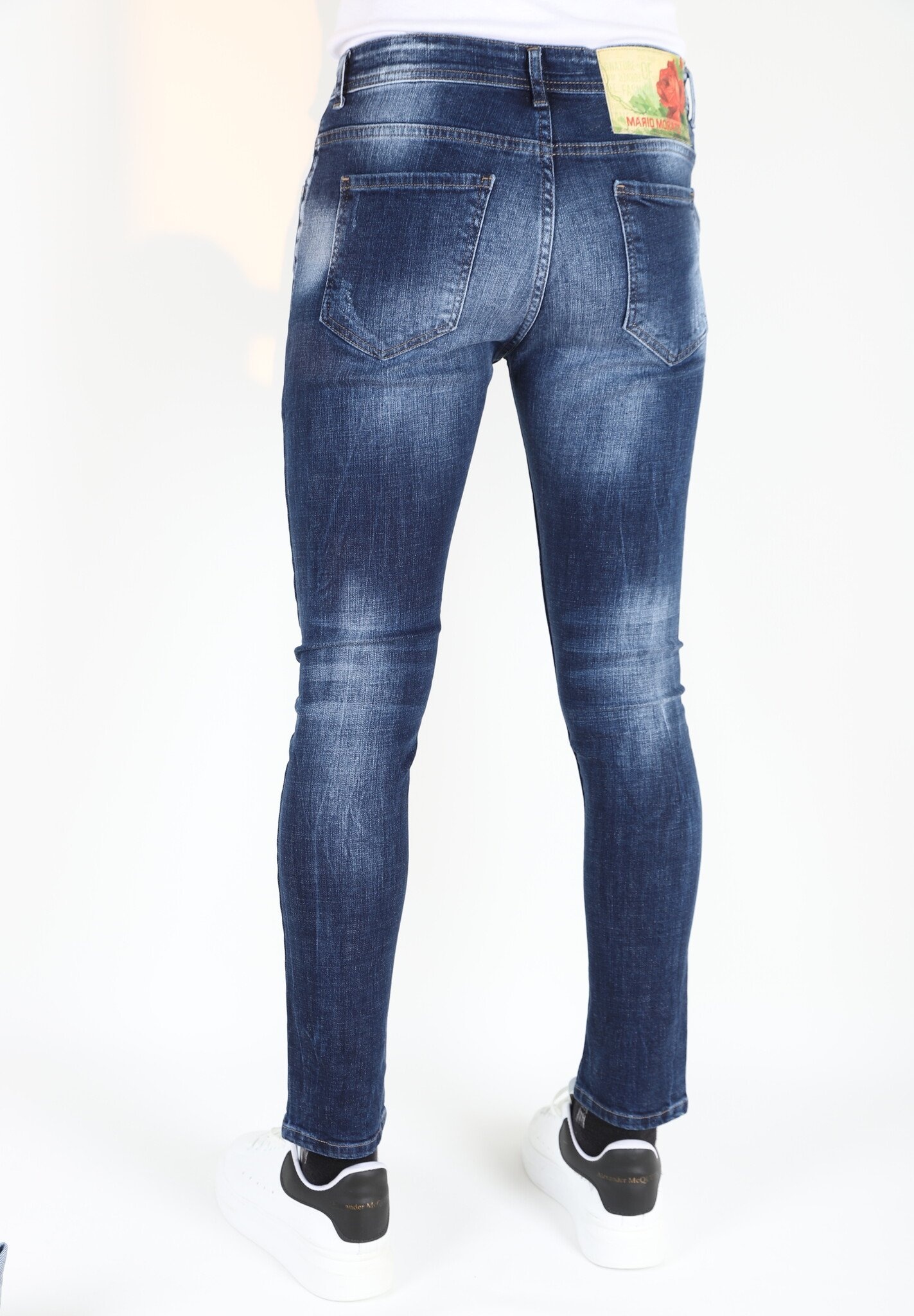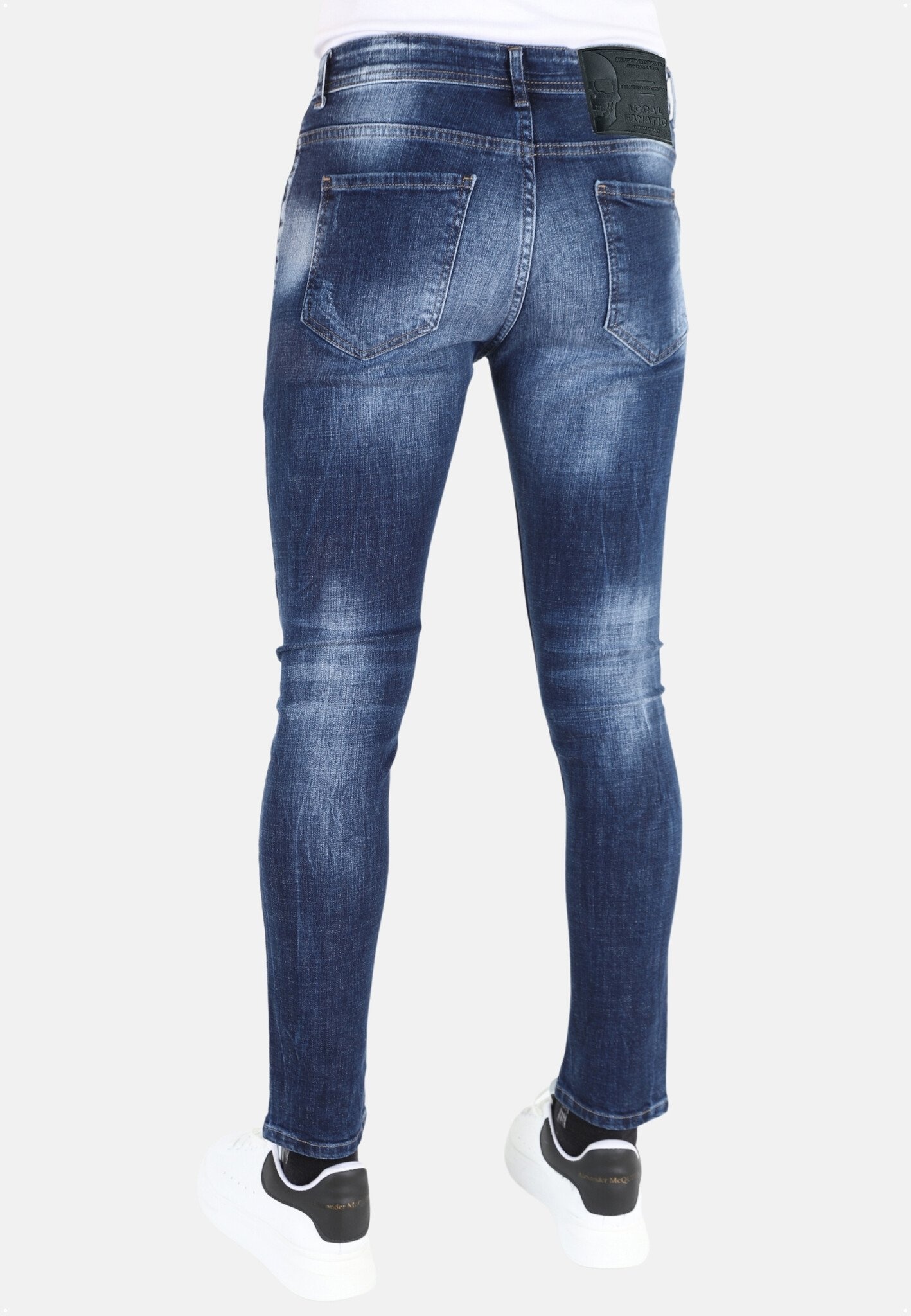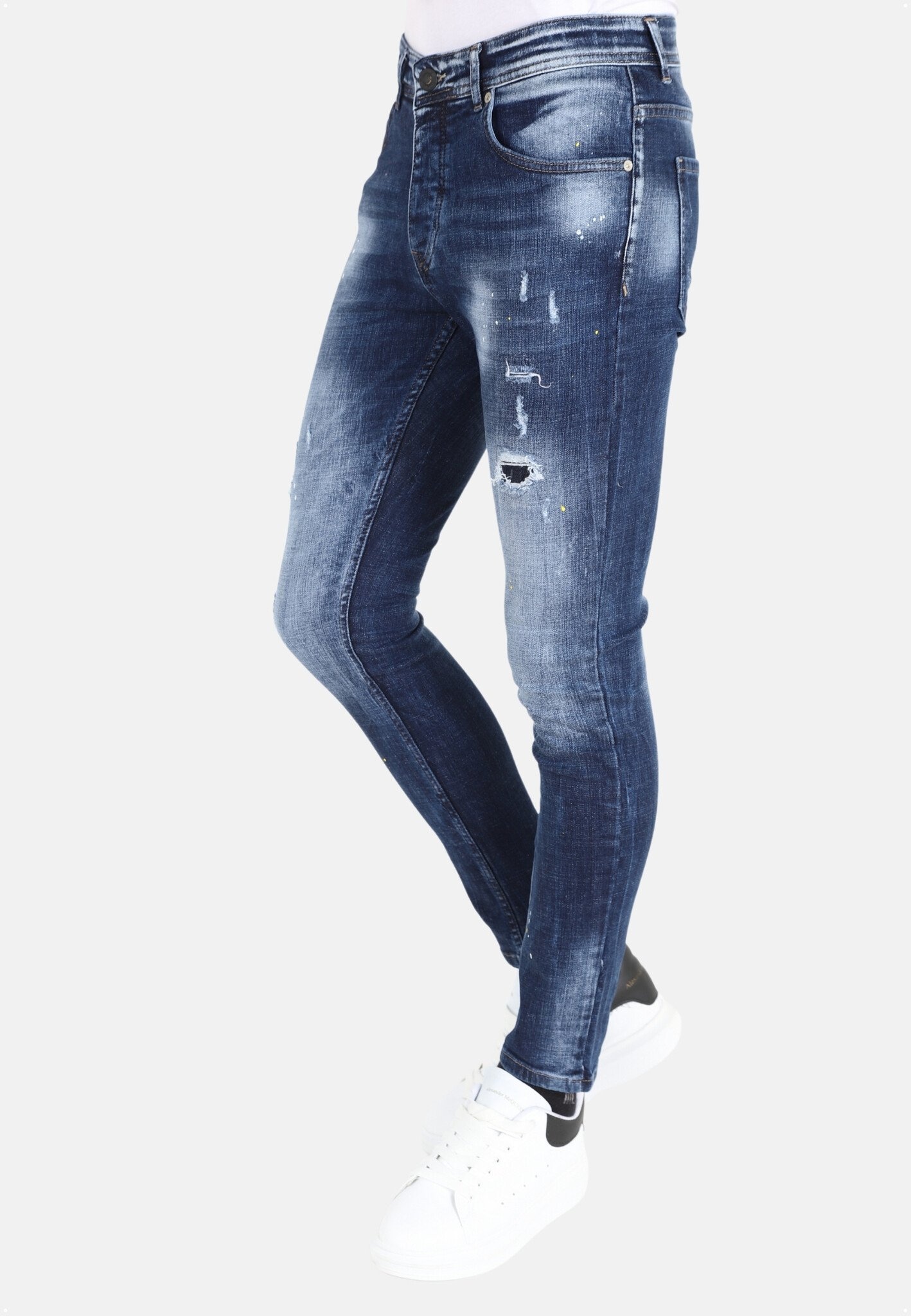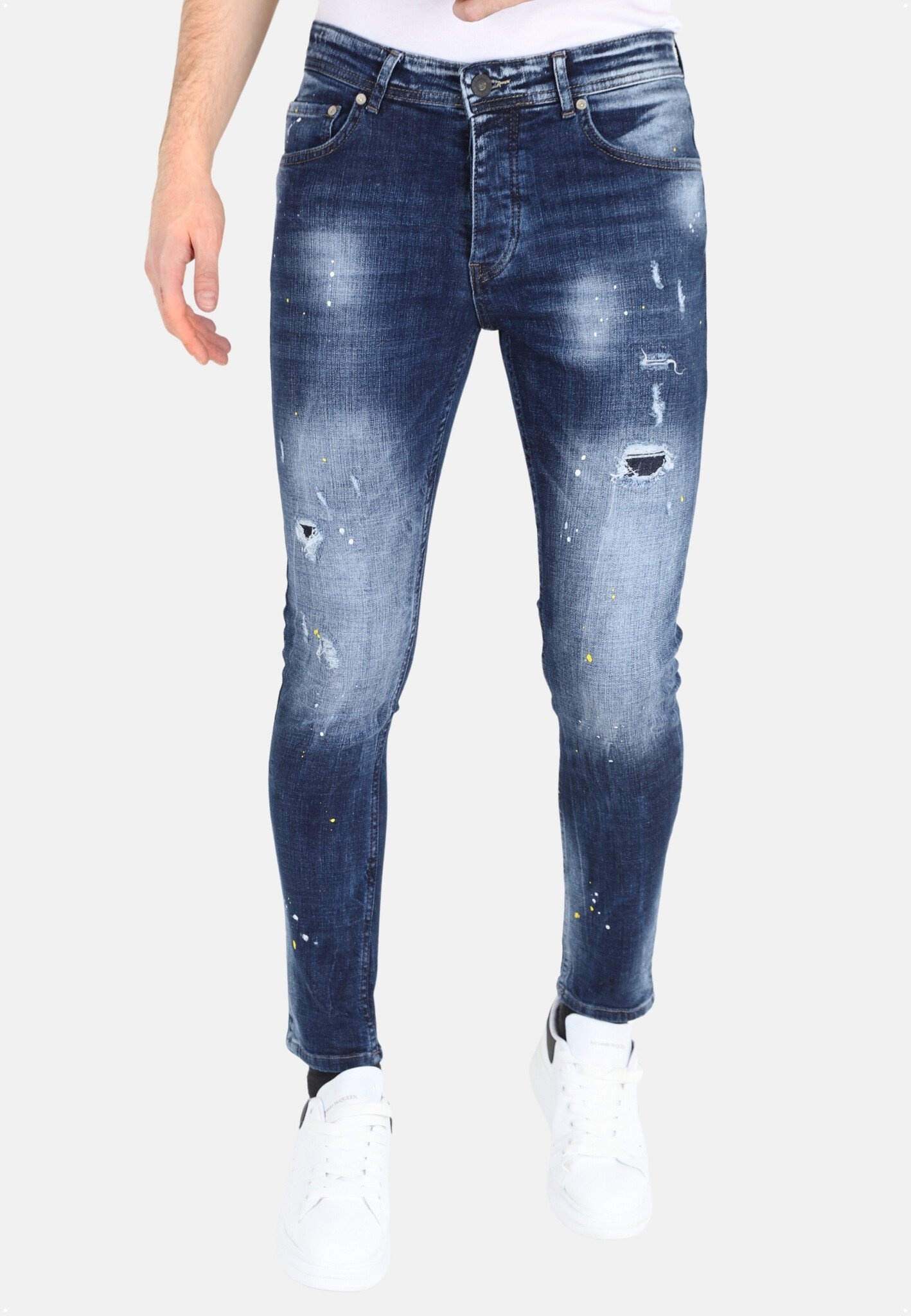 Paint Splatter Jeans Slim Fit med hål för män -MM116- Blå