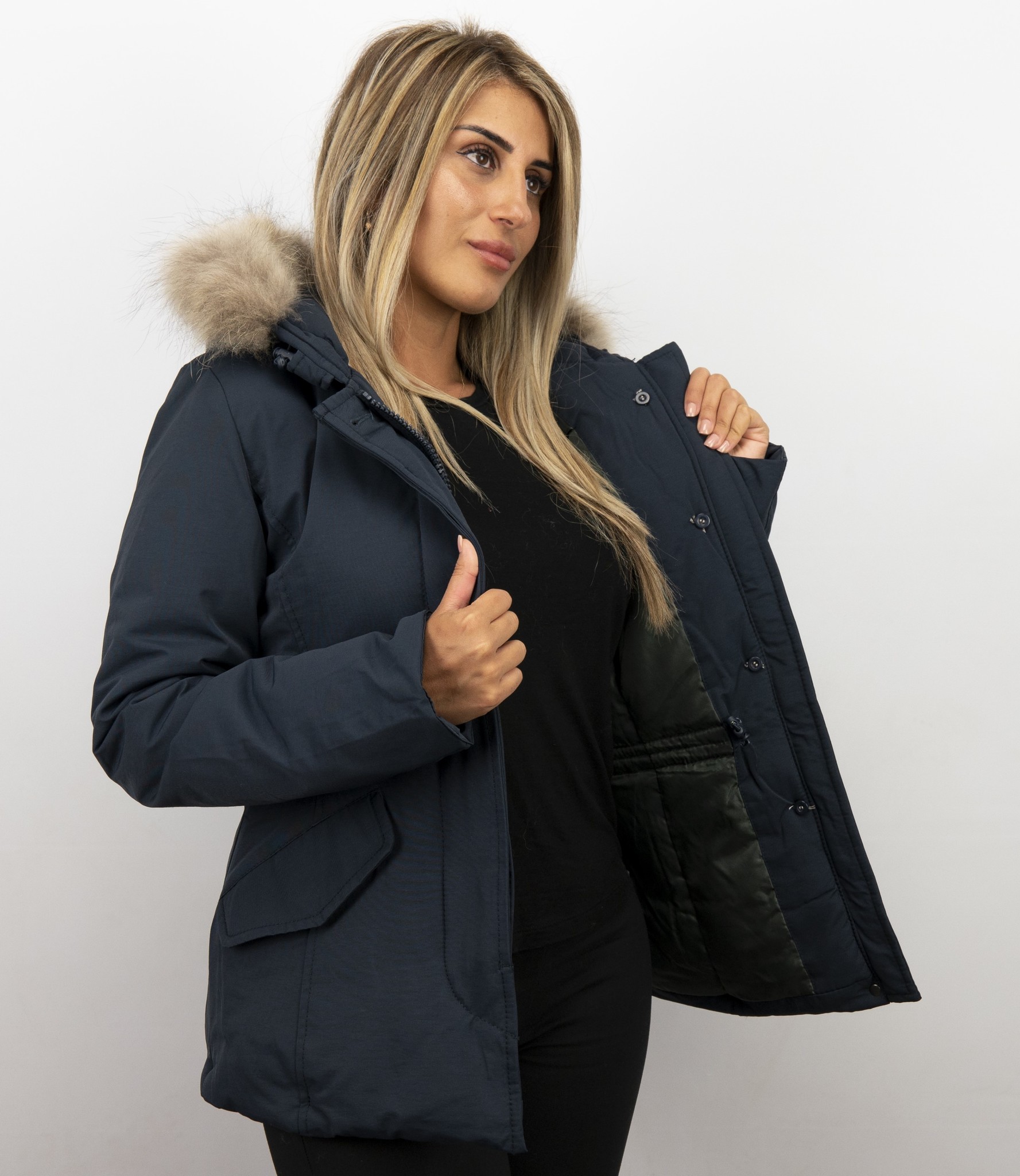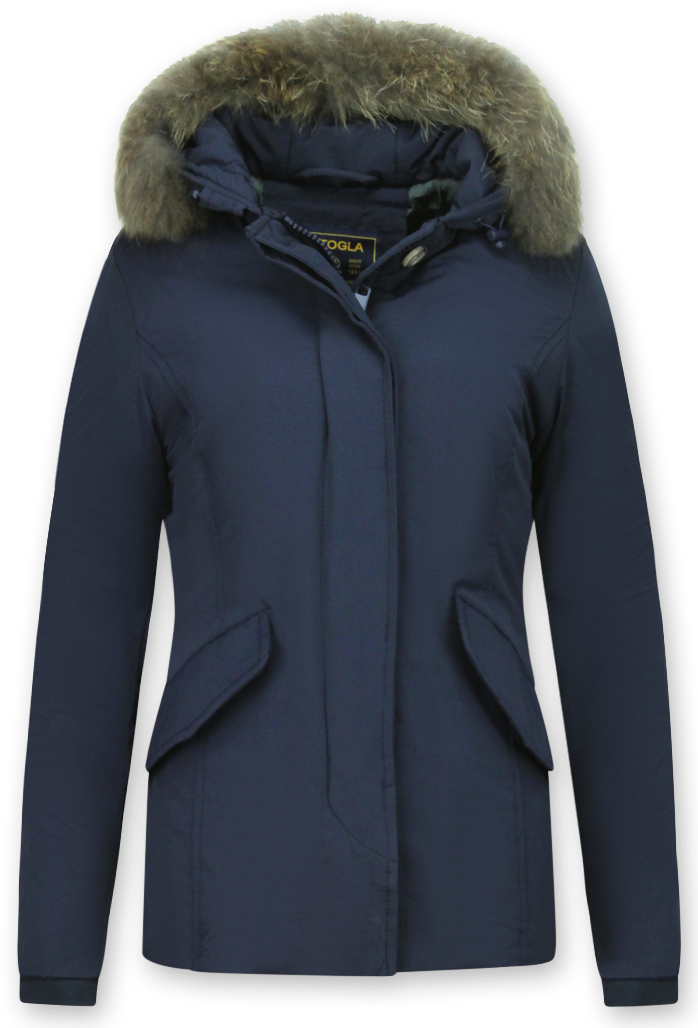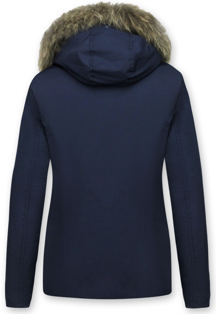 Pälsrock Med Liten Pälskrage - Damer Wooly Jacka Kort - 5898B - Blå