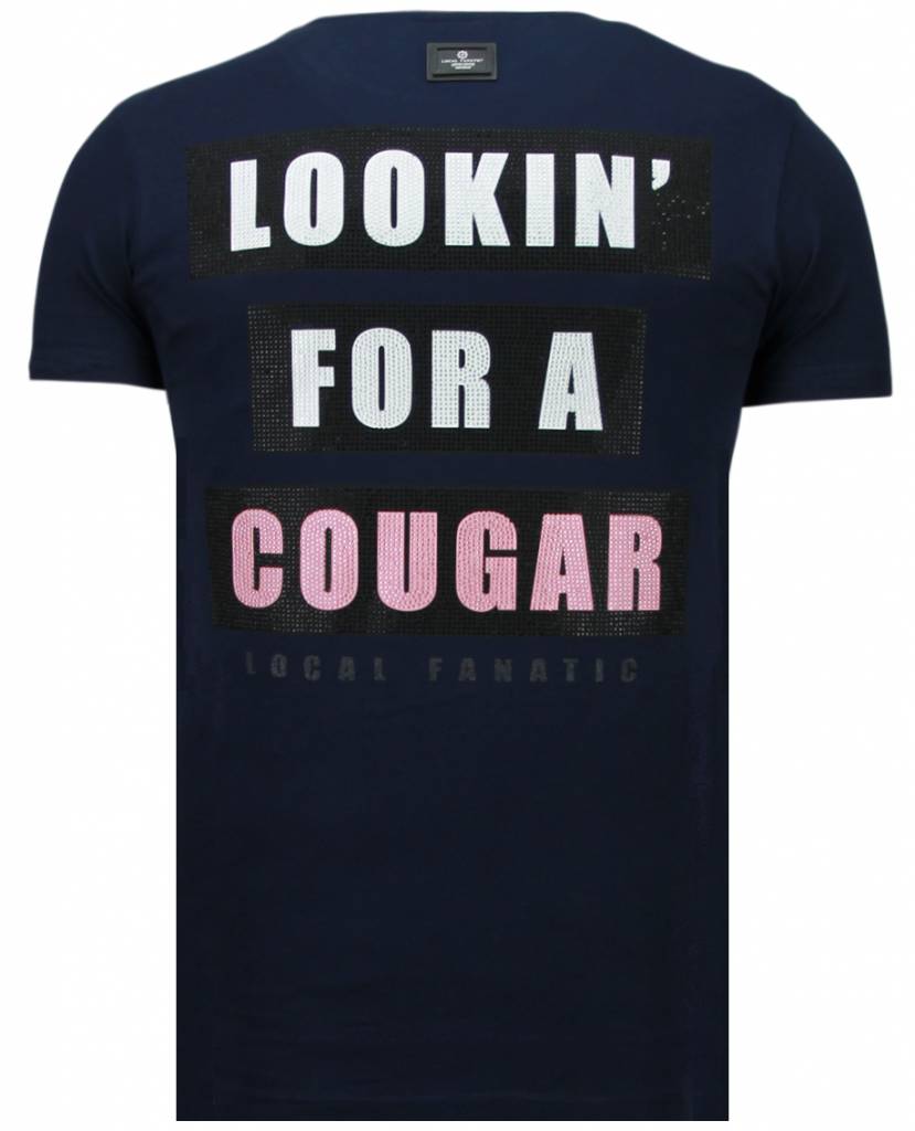 Panther For A Cougar Rhinestone - Man T shirt - 5780B - Blå