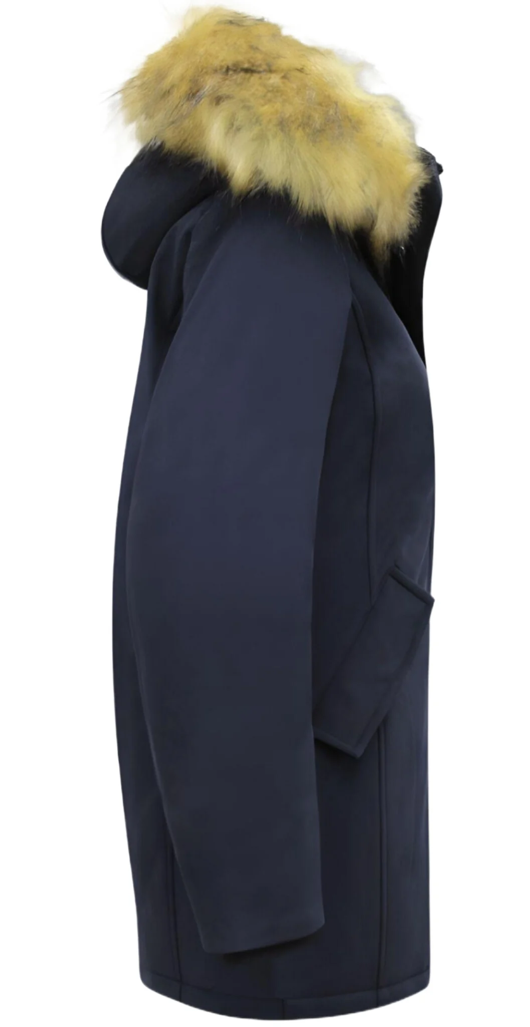 Parka Damer - äkta Pälskrage - Slim Fit - Blå