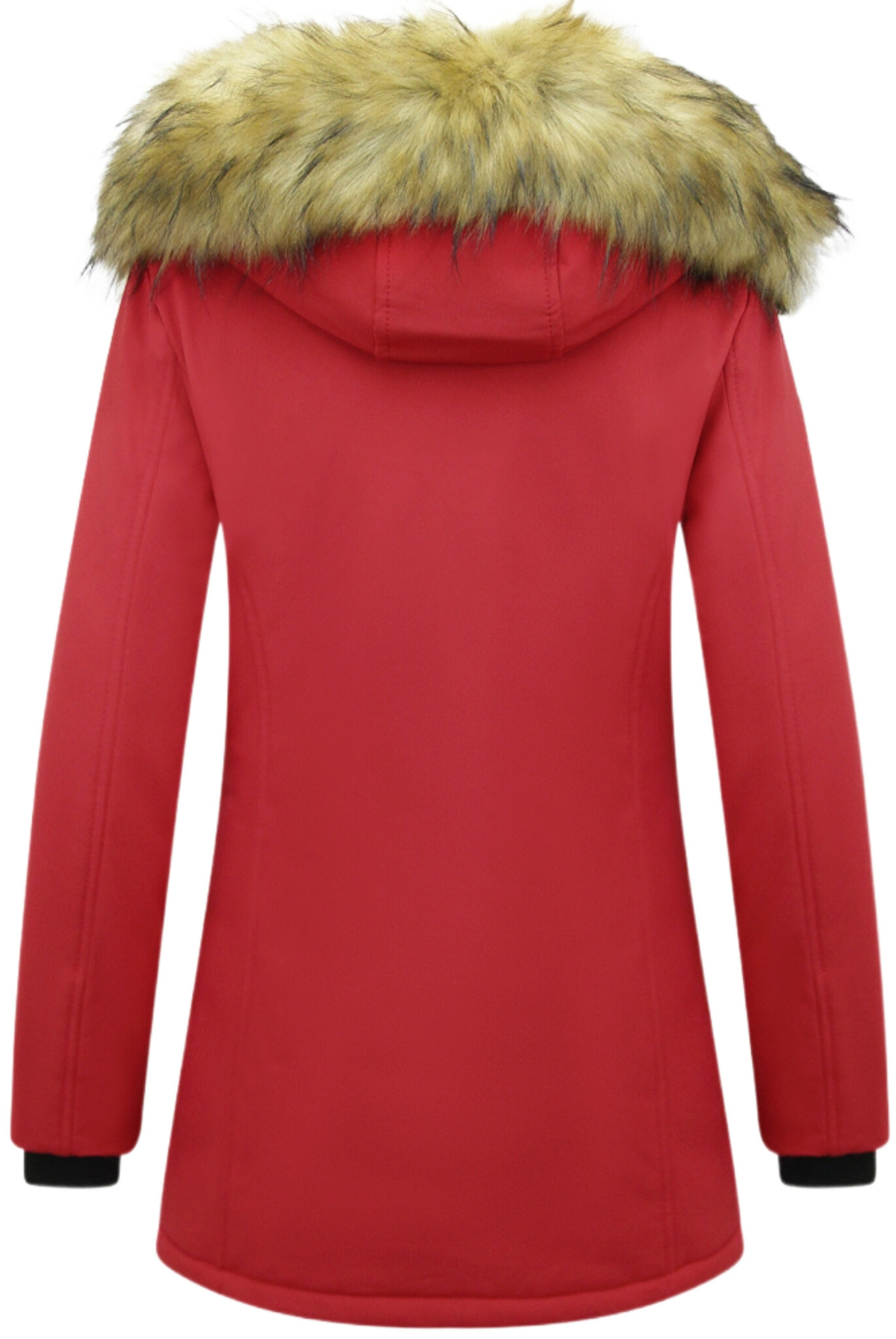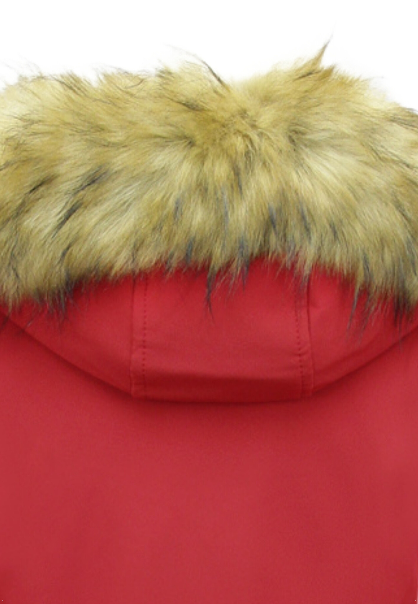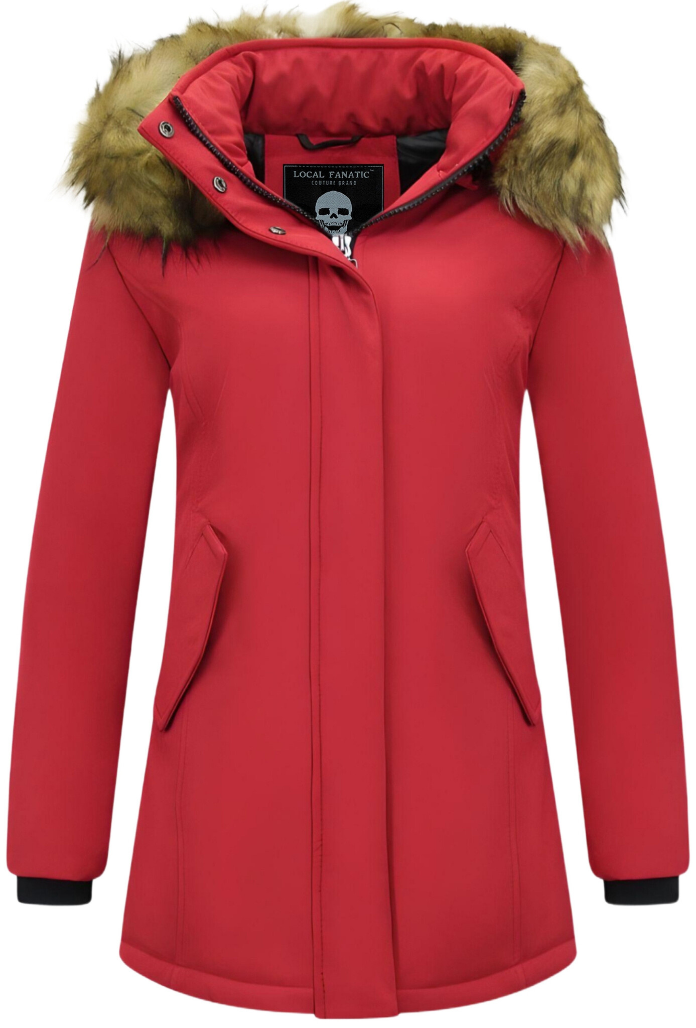 Parka Damer - äkta Pälskrage - Slim Fit - Röd