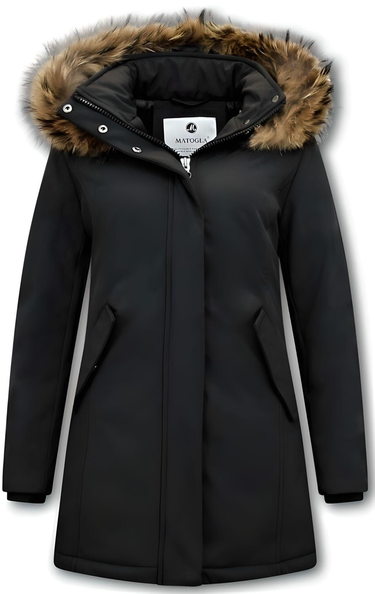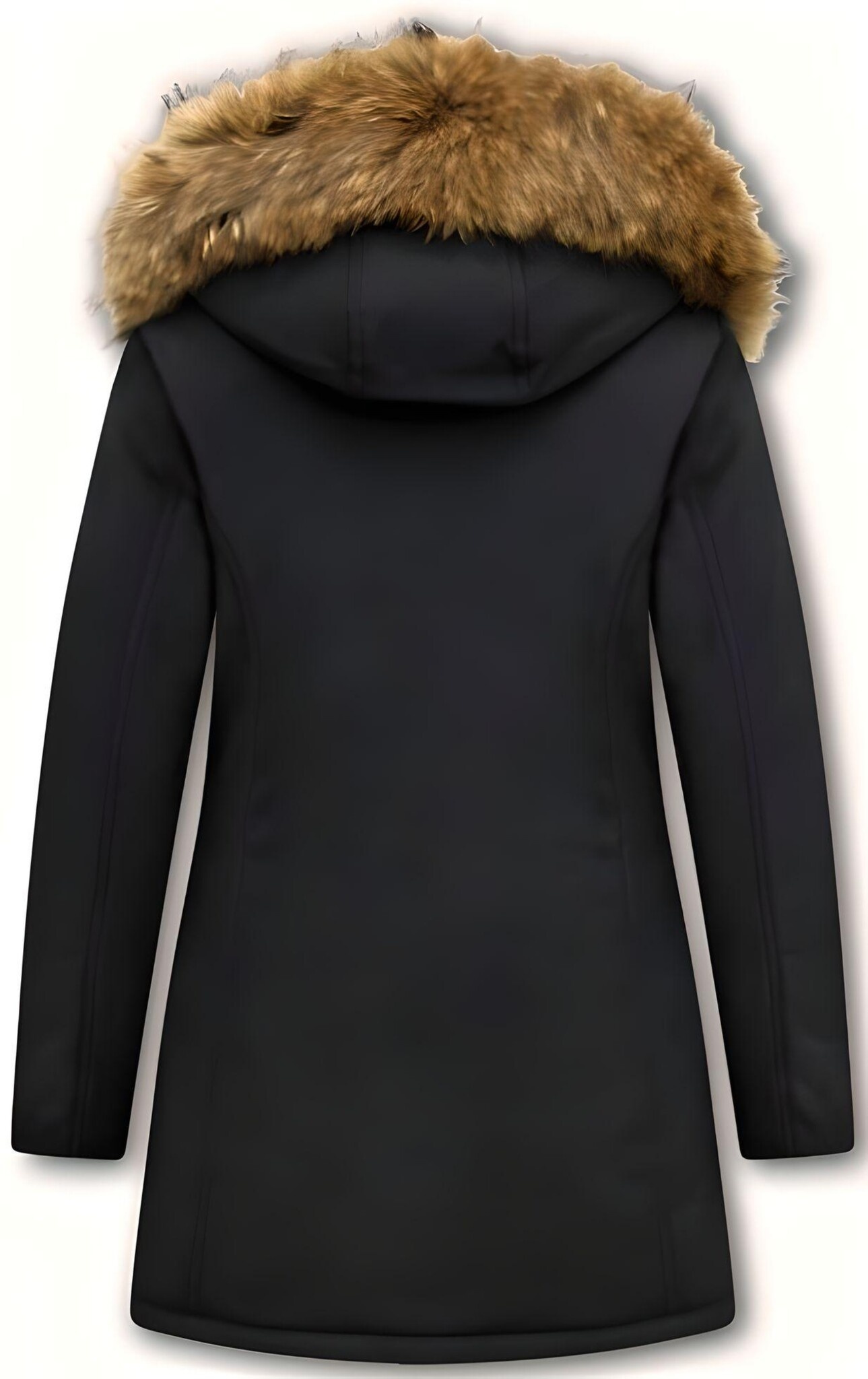 Parka Damer - äkta Pälskrage - Slim Fit - Svart
