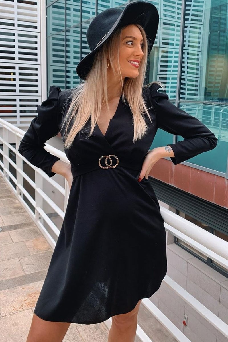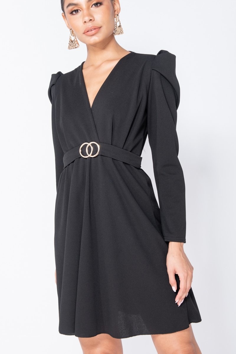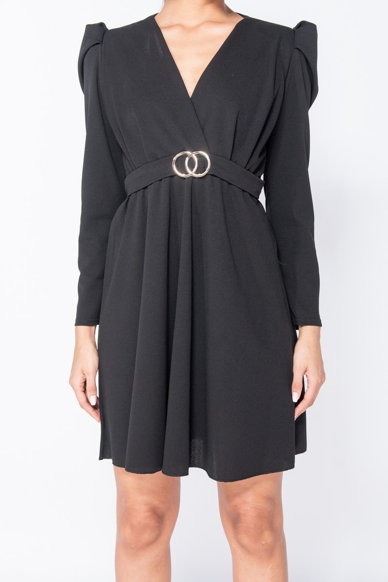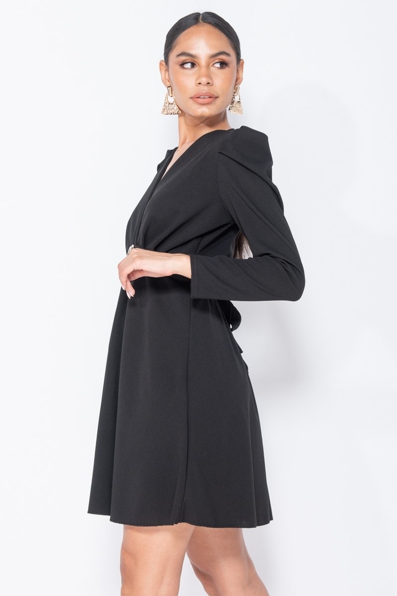 Axelvadd Wrap Front Klänning - kvinnor - Svart