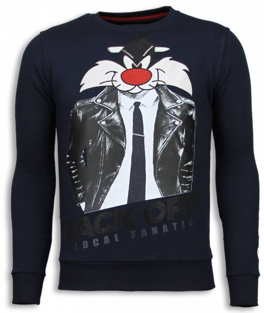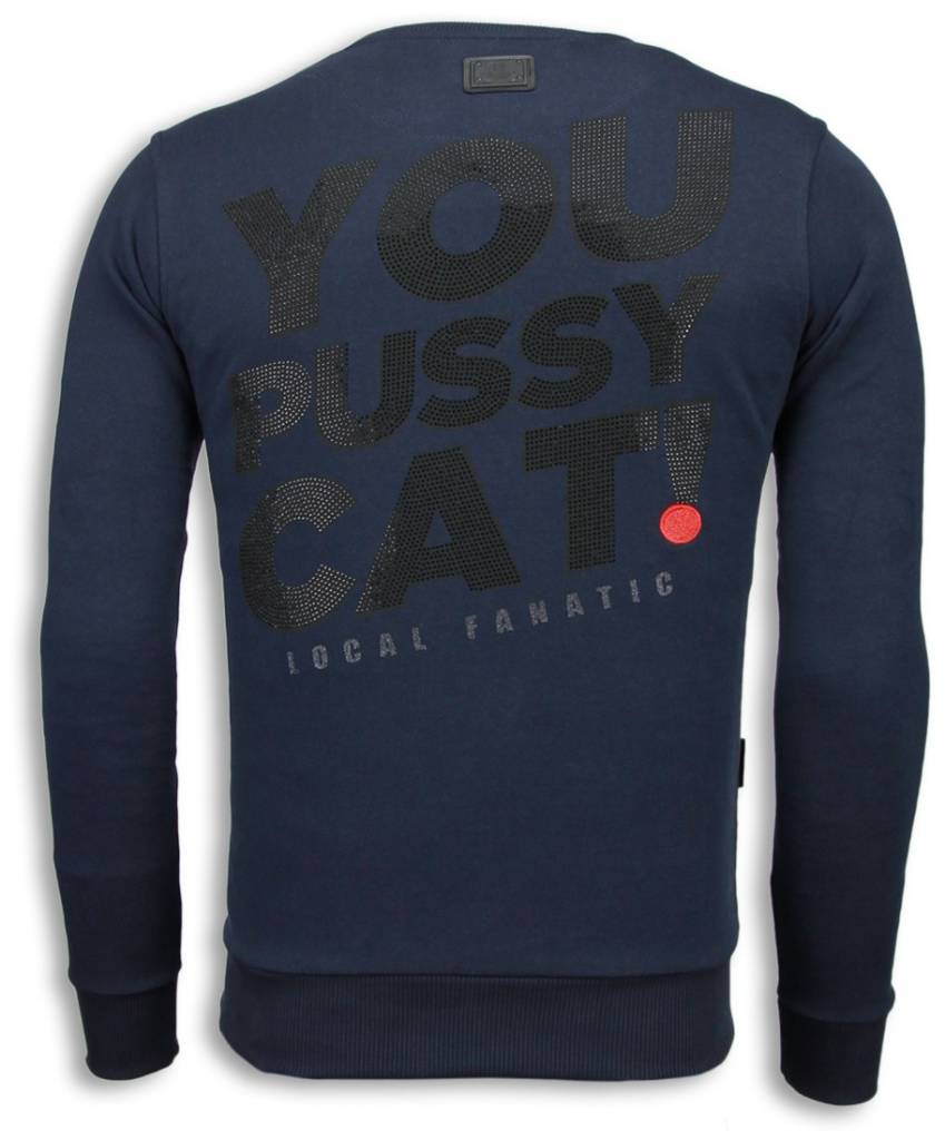 Pussy Cat Rhinestone Sweater - Tröjor Män - 5914B - Blå
