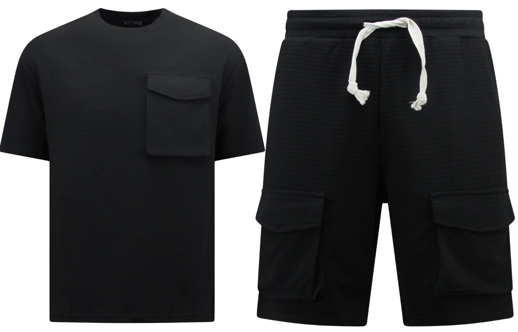 Ribbad överdimensionerad T-shirt - Joggingbyxor för män - SET - Svart