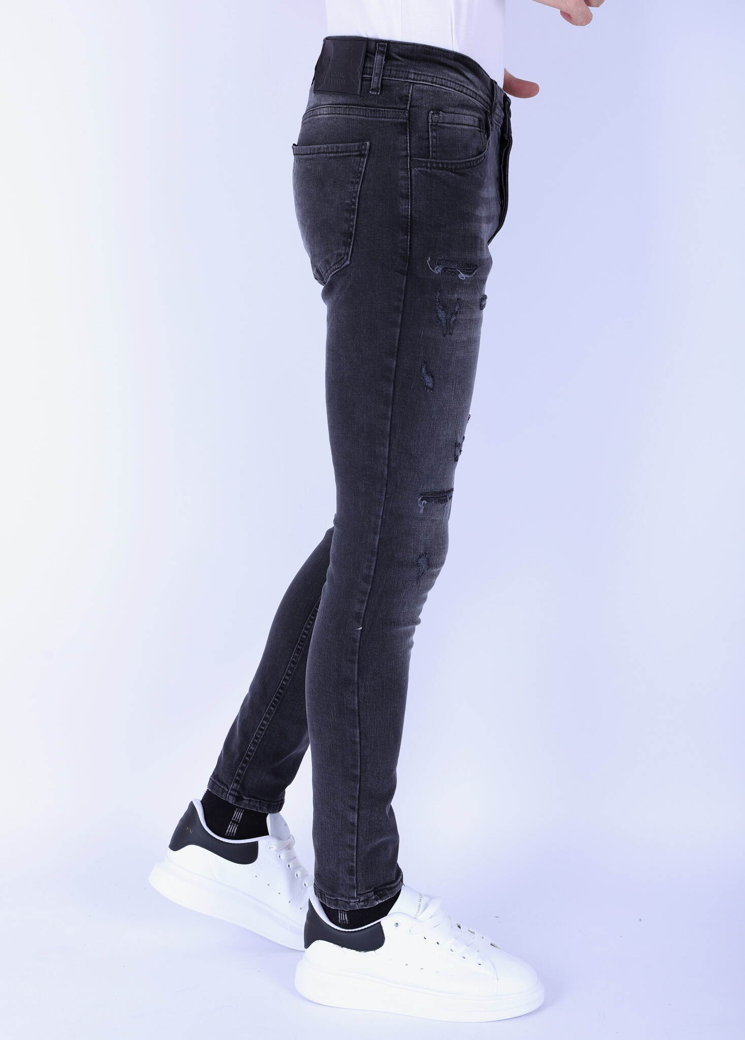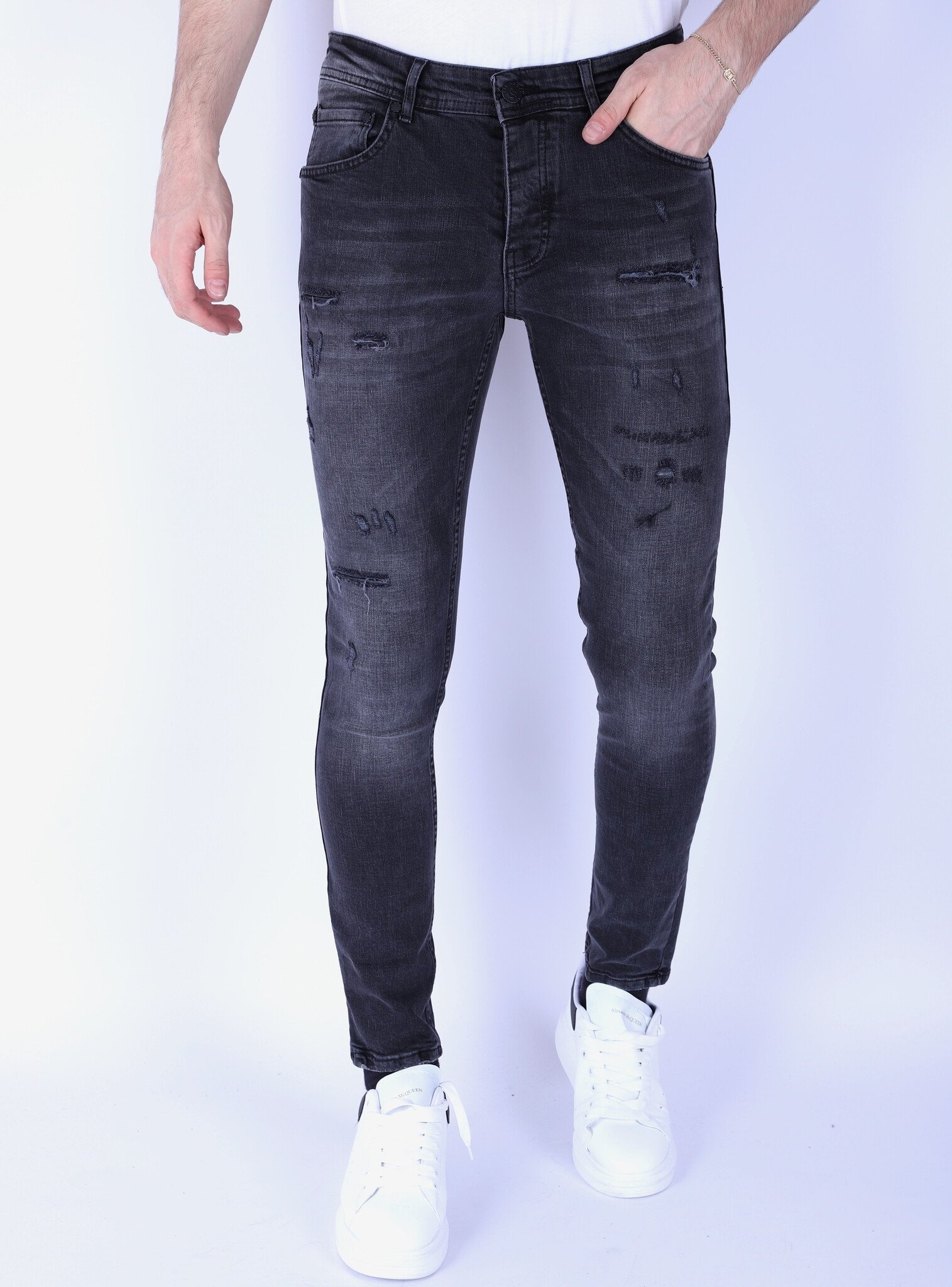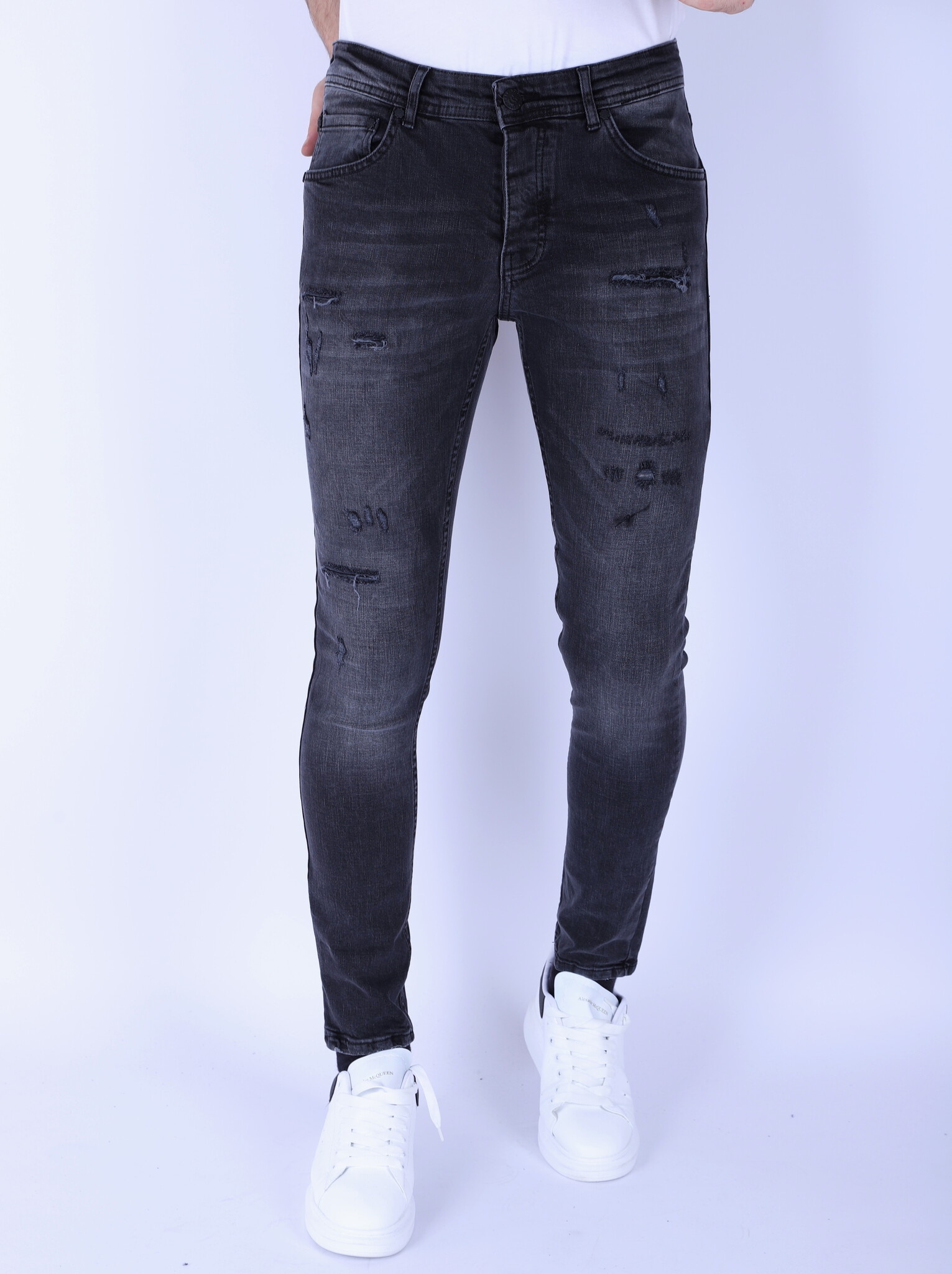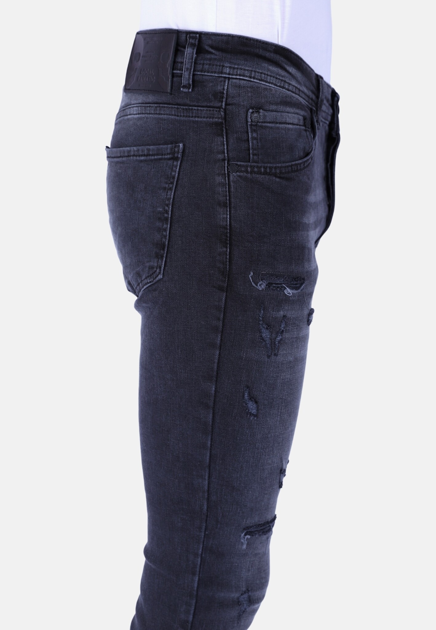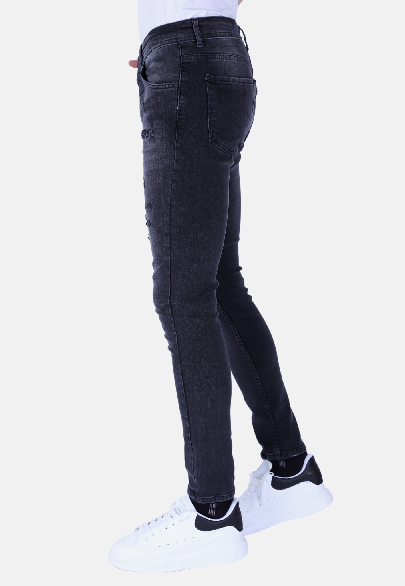 Rippade Jeans För Män Slim Fit Med Stretch - Svart