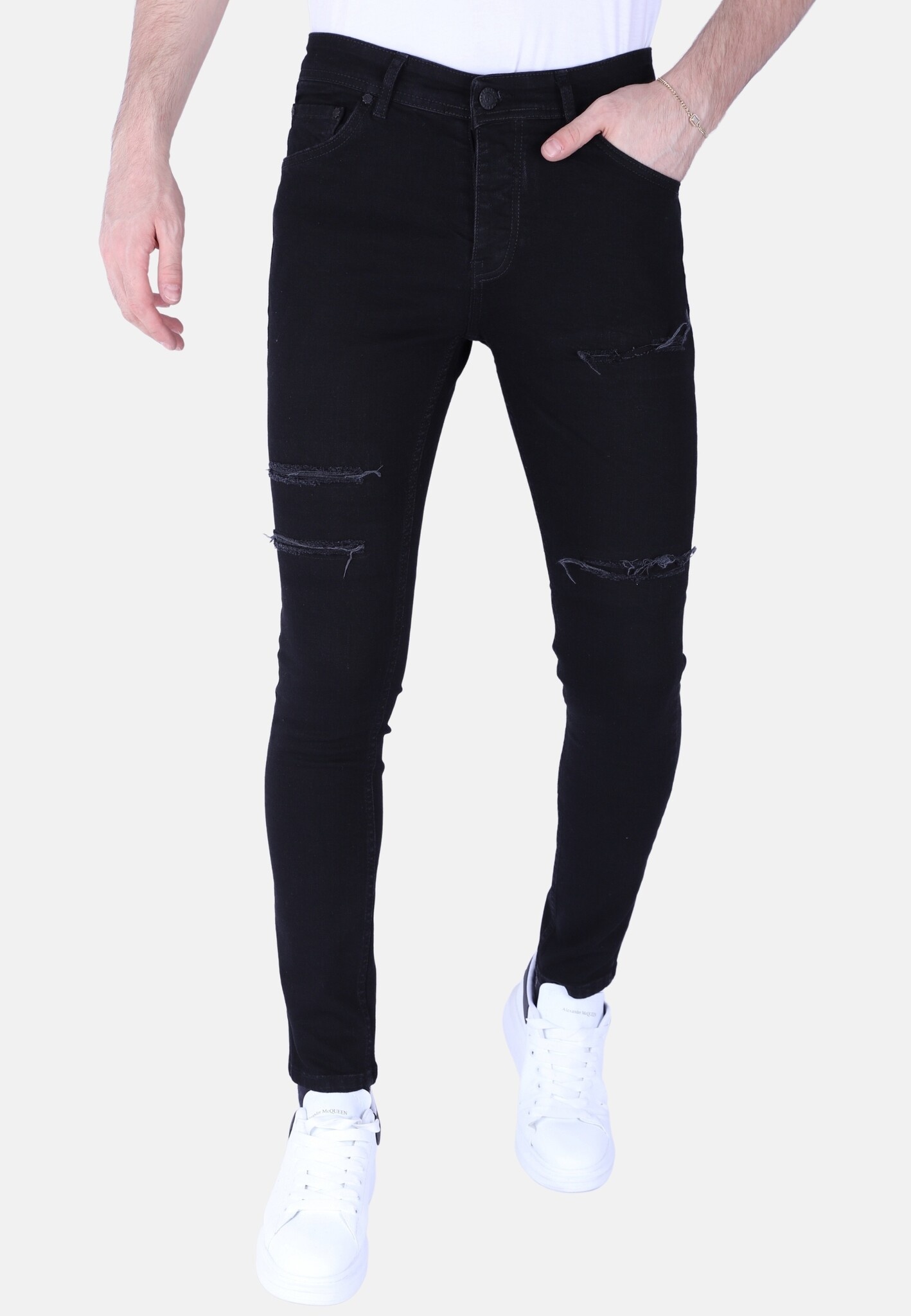 Ripped Torn Jeans Herr - Slim Fit -1092- Svart