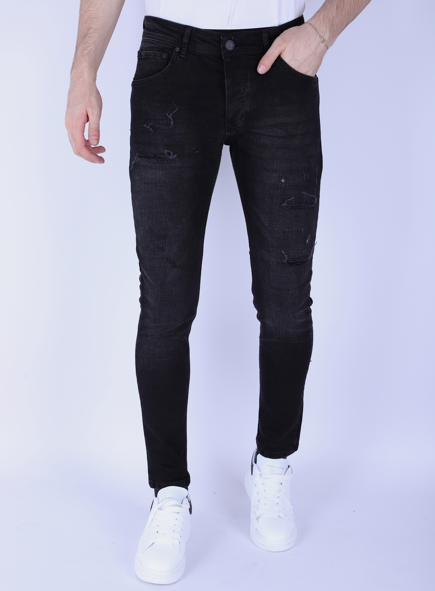 Slim-Fit hHrrjeans Med Stretch Med Hål - XXA - Svart