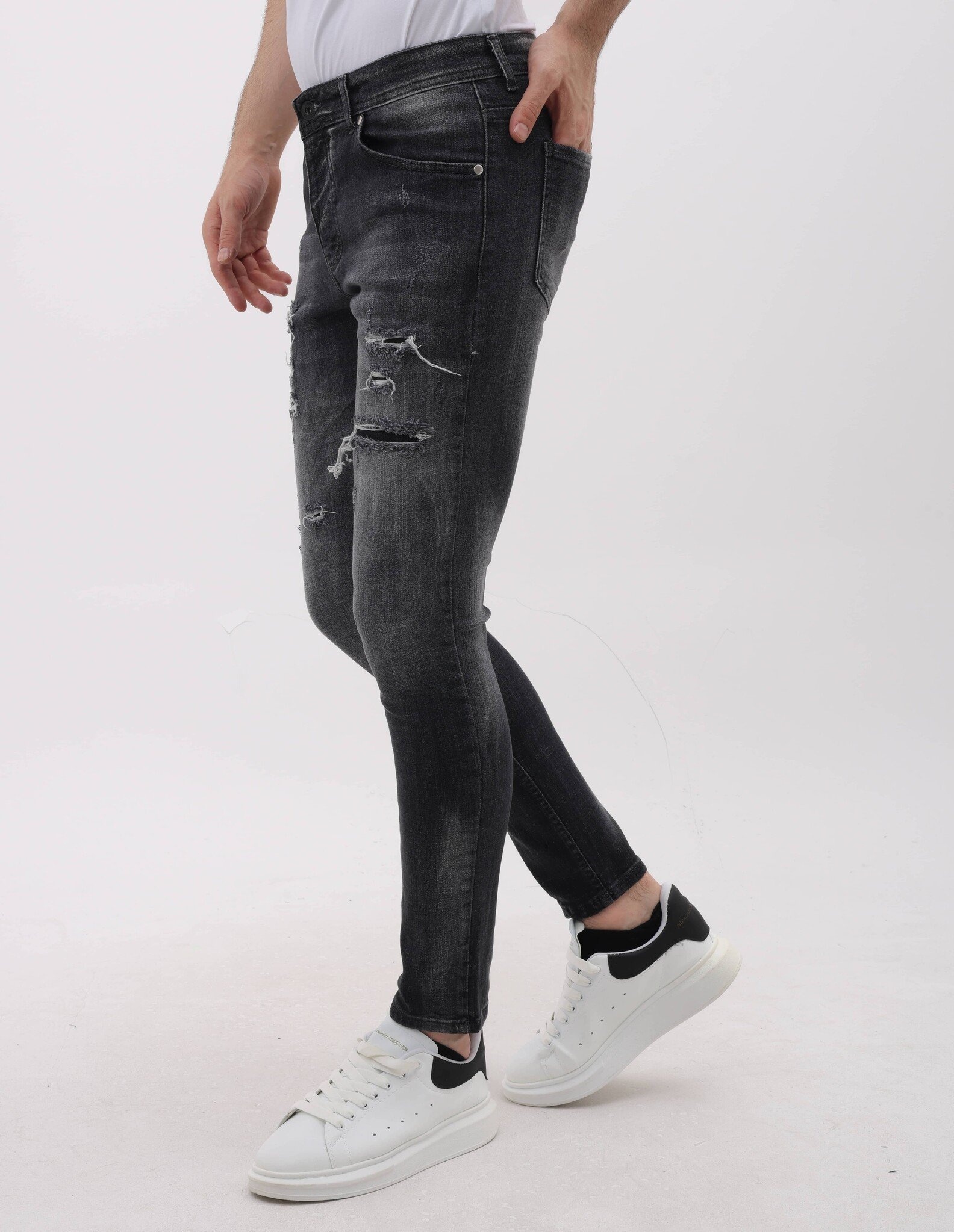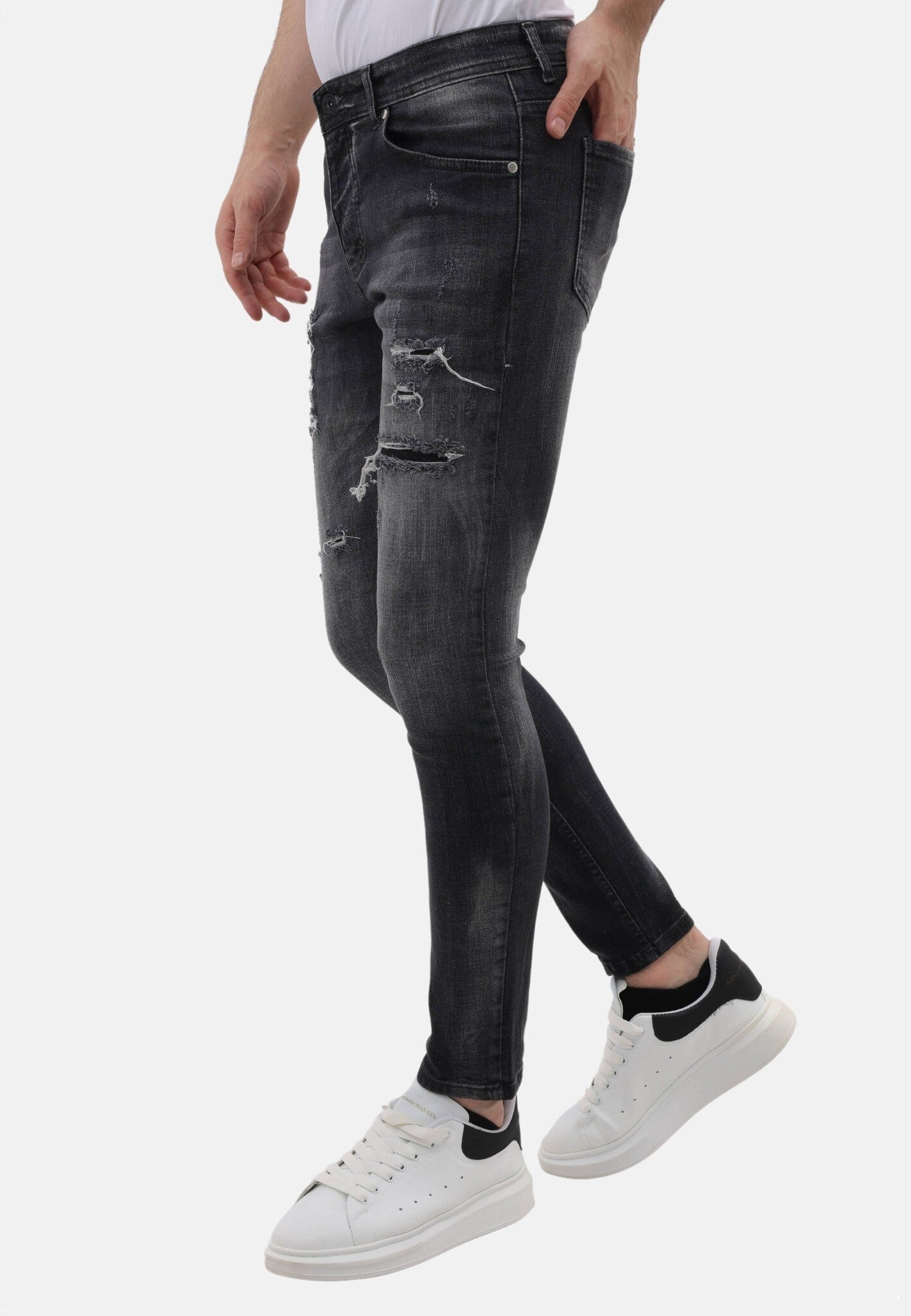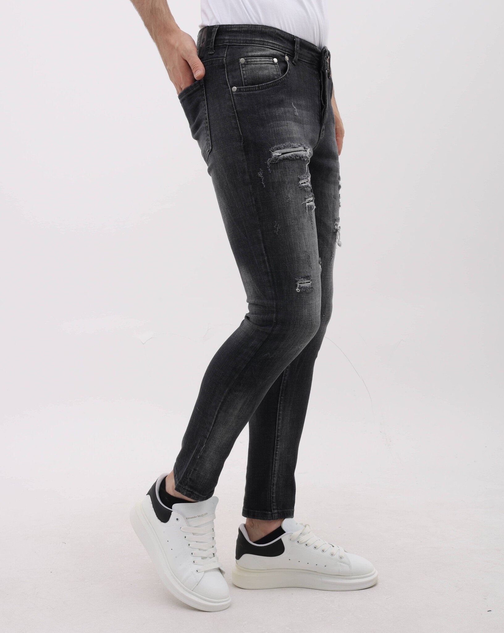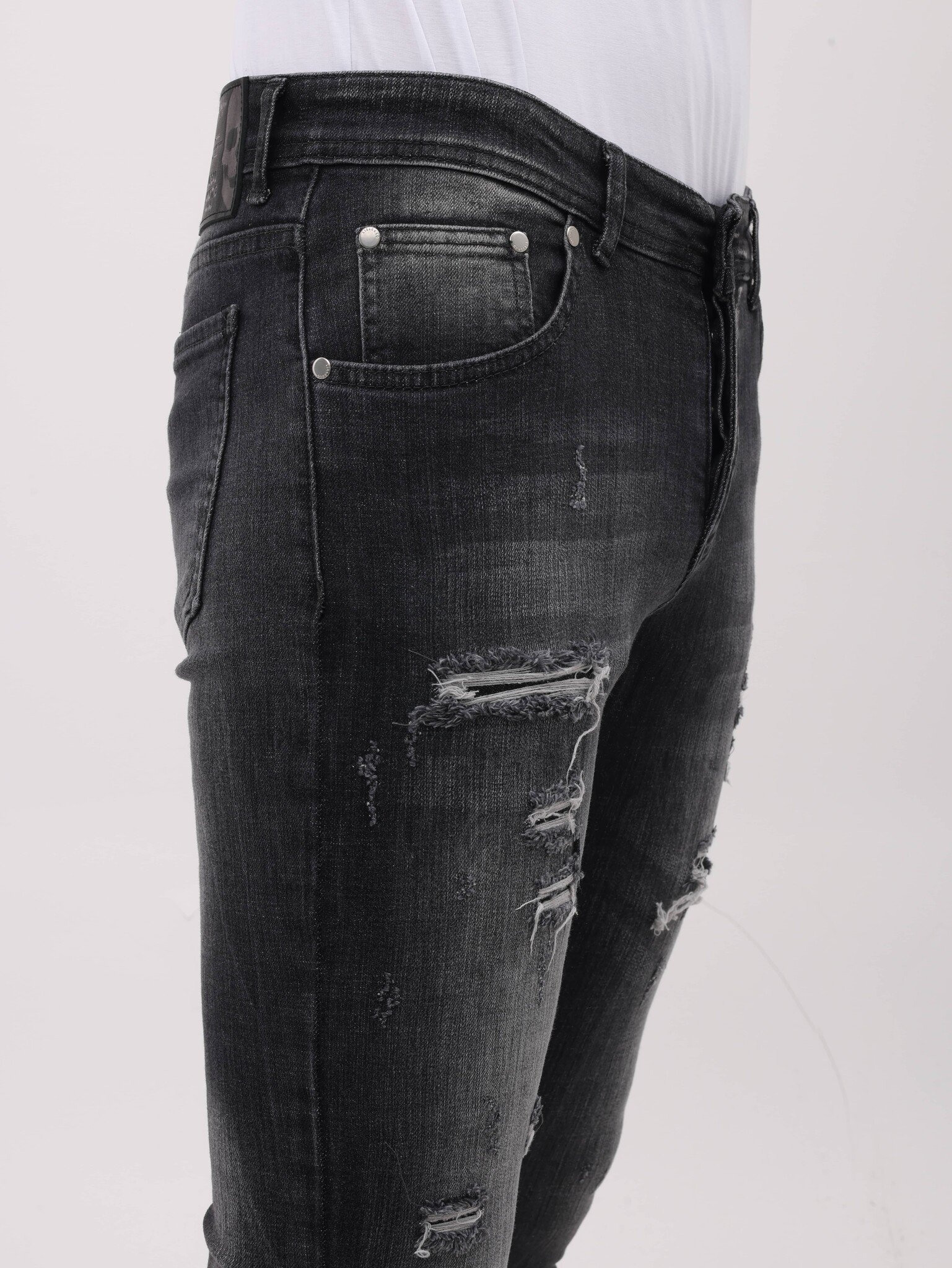 Slim Fit Stretch Jeans med Rips Herr - MM-S-110 - Grå