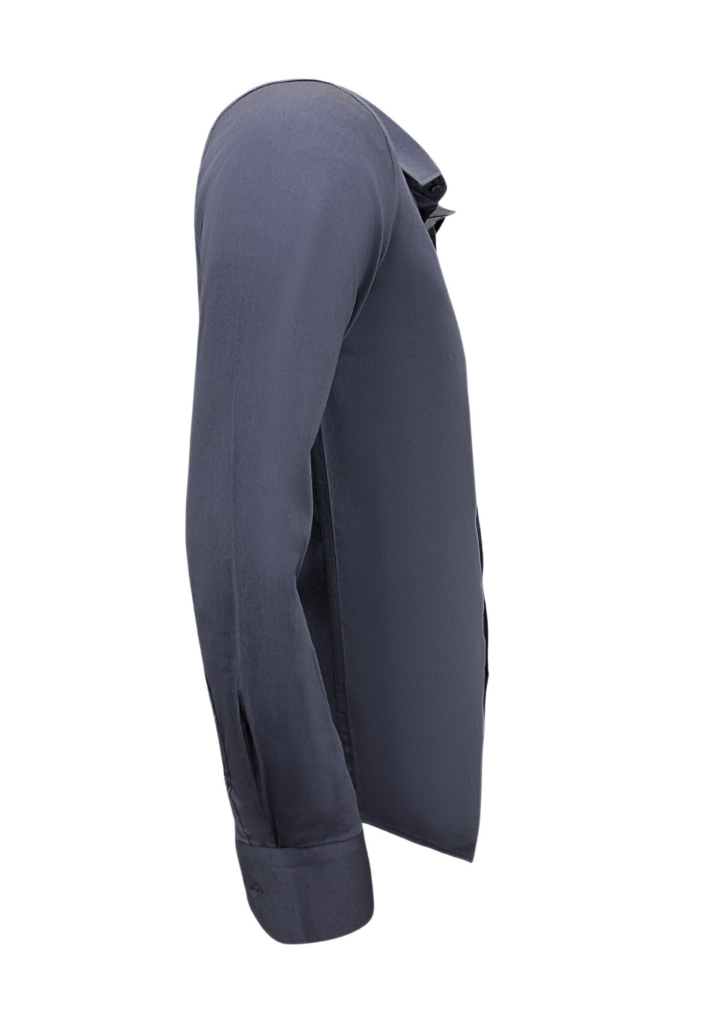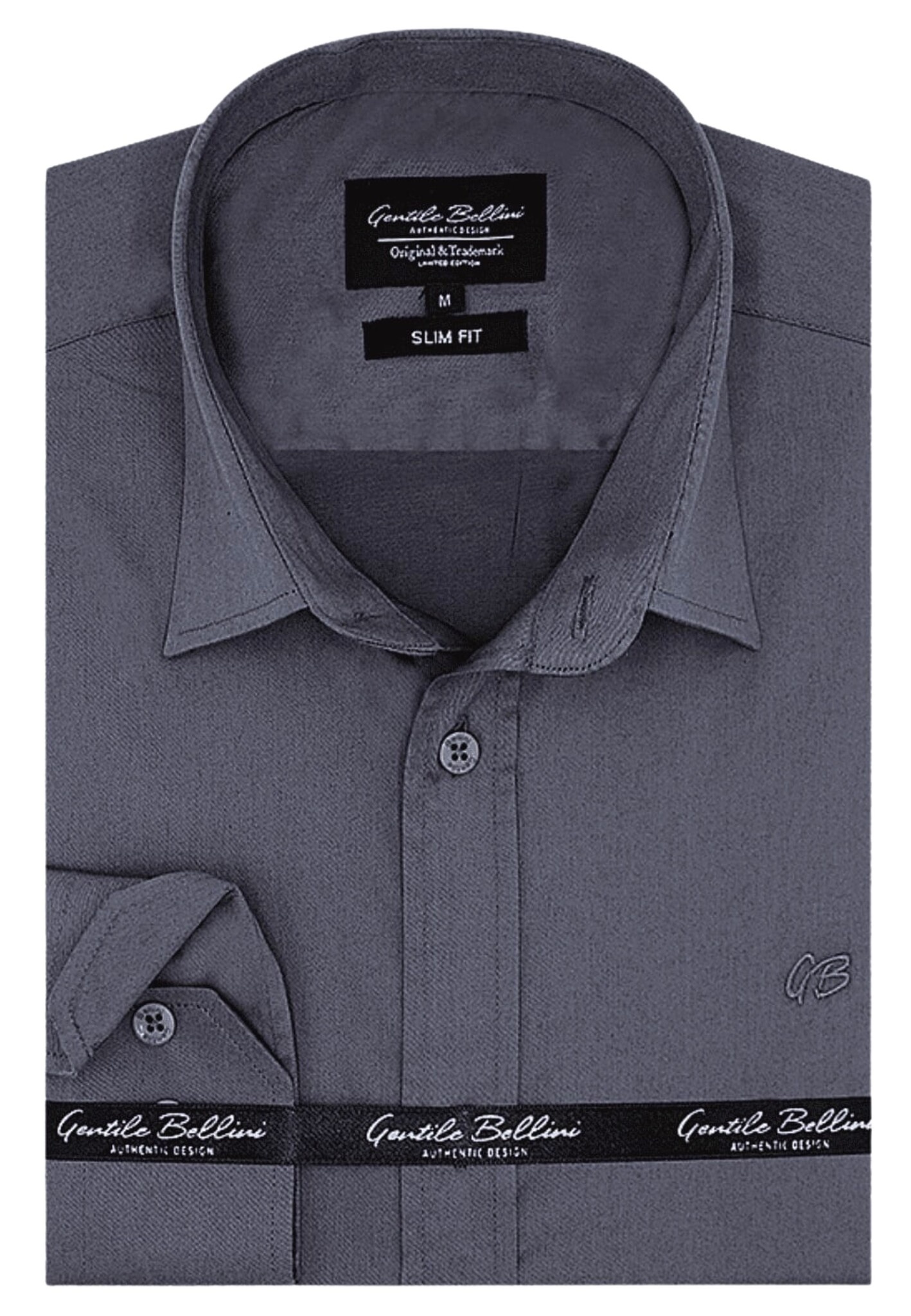 Snygg Enfärgad Herrblus Med Långa Armar Slim Fit - Grå