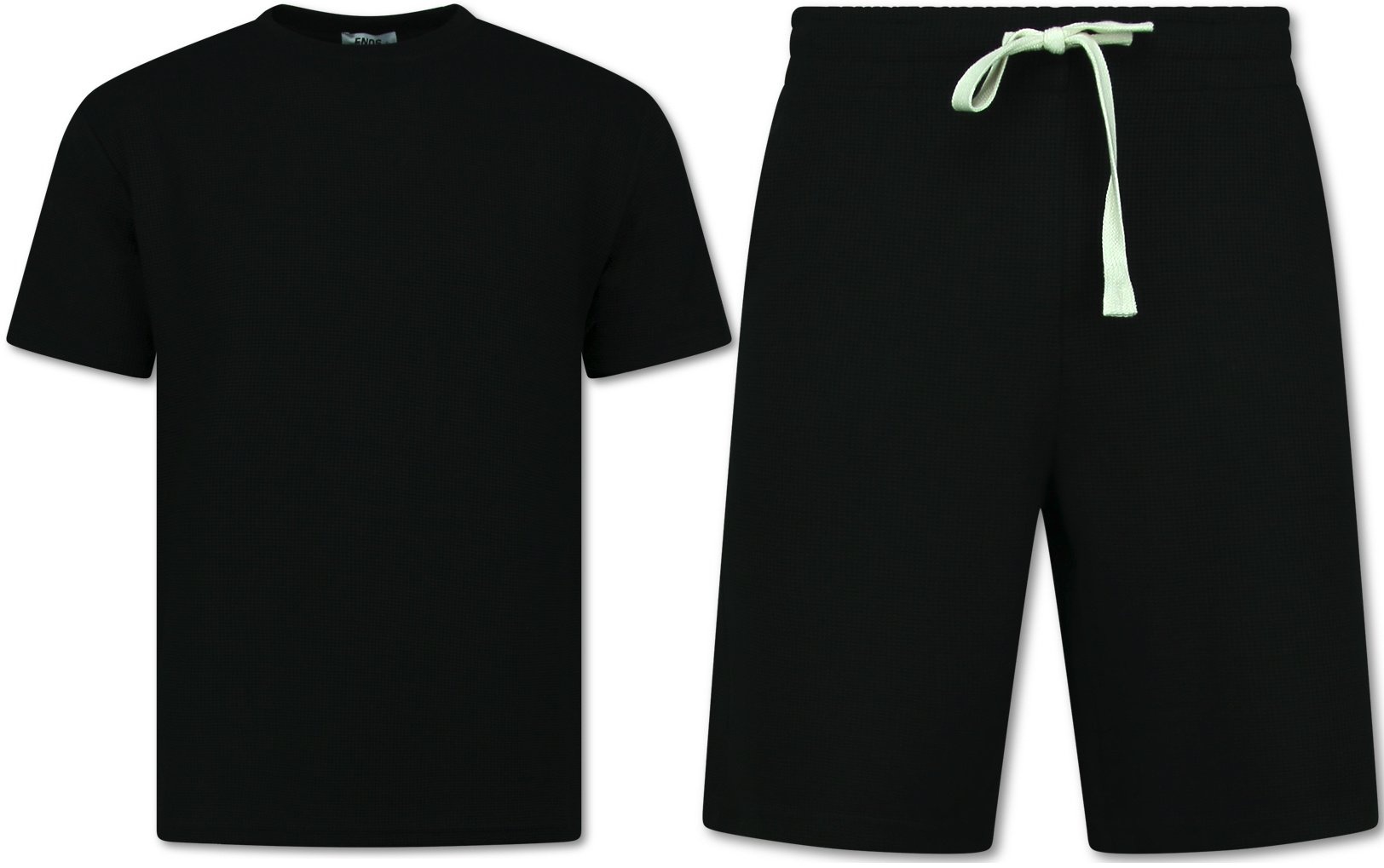 Herr Sommarset - Ribbad Oversized - Tvådelat Set - Twinset - Kombinationsset - F-918 - Svart
