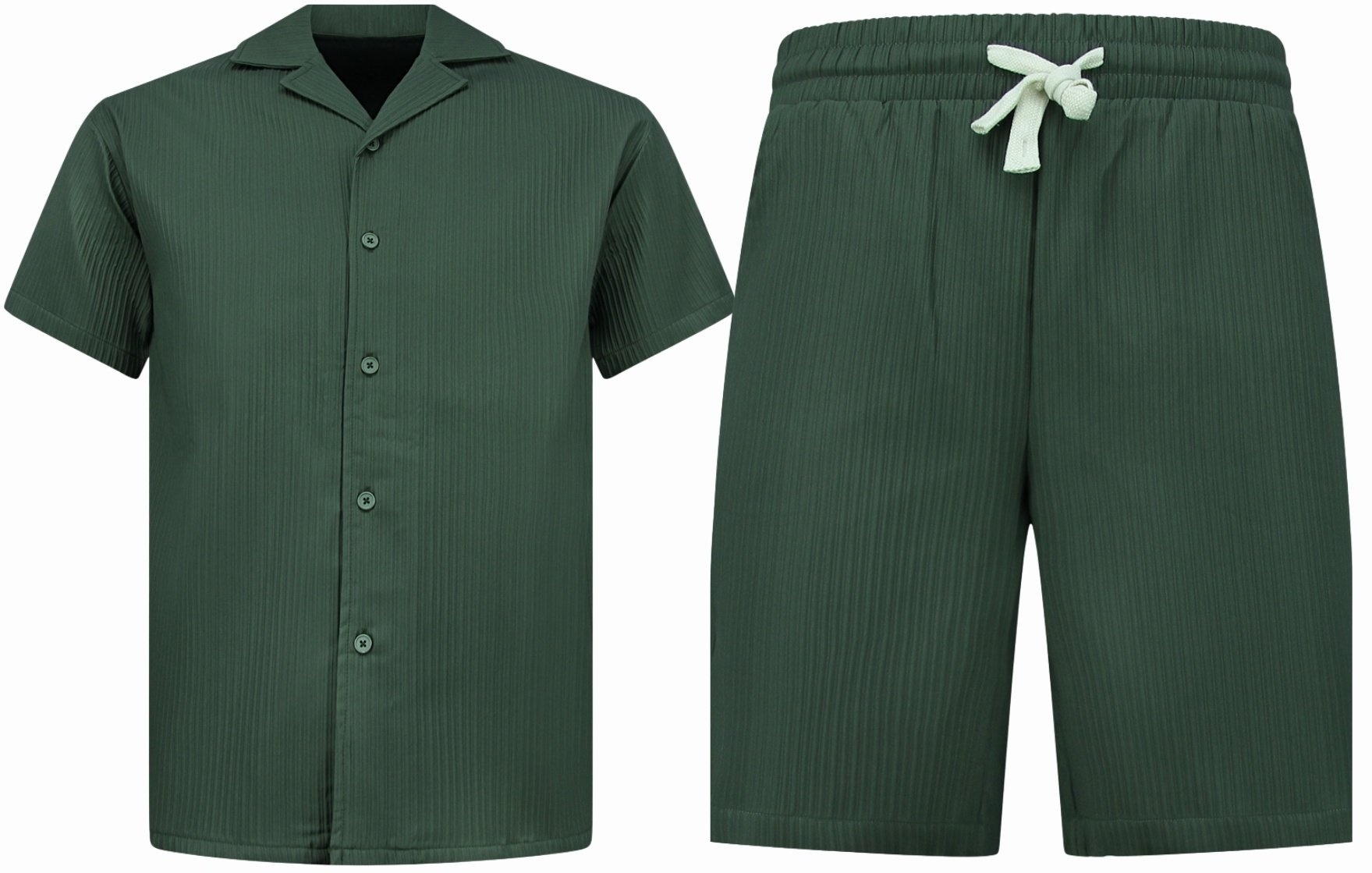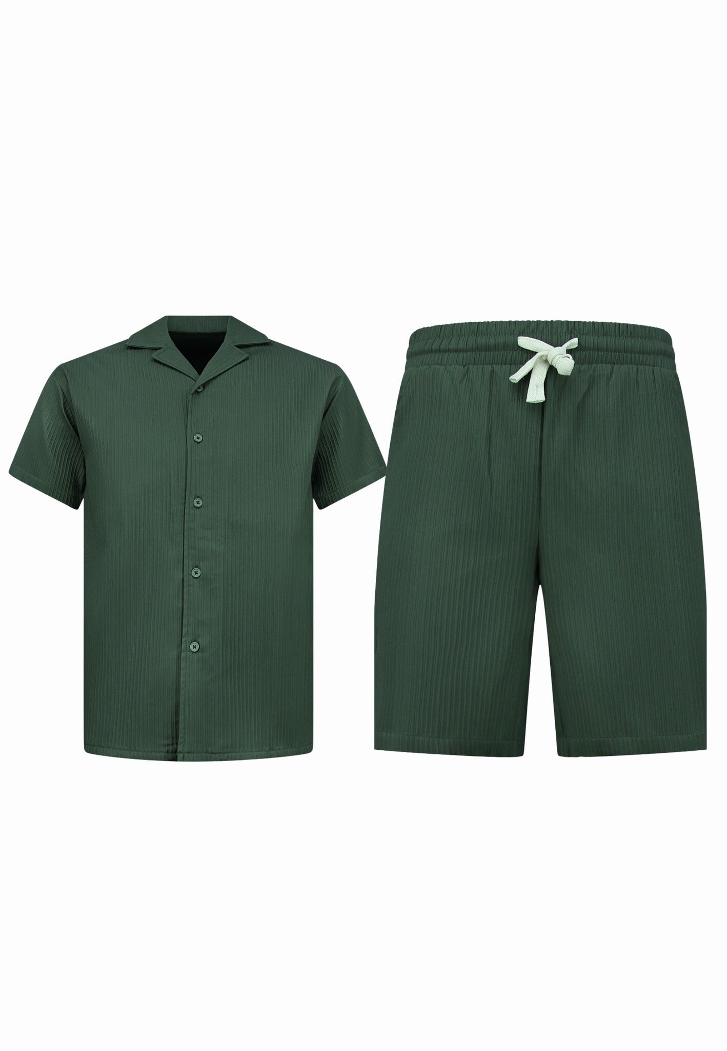 Herrsommarset - Ribbad överdimensionerad skjorta - Herrshorts / Herröverdimensionerad t-shirt - Twinset - F-919 - Grön