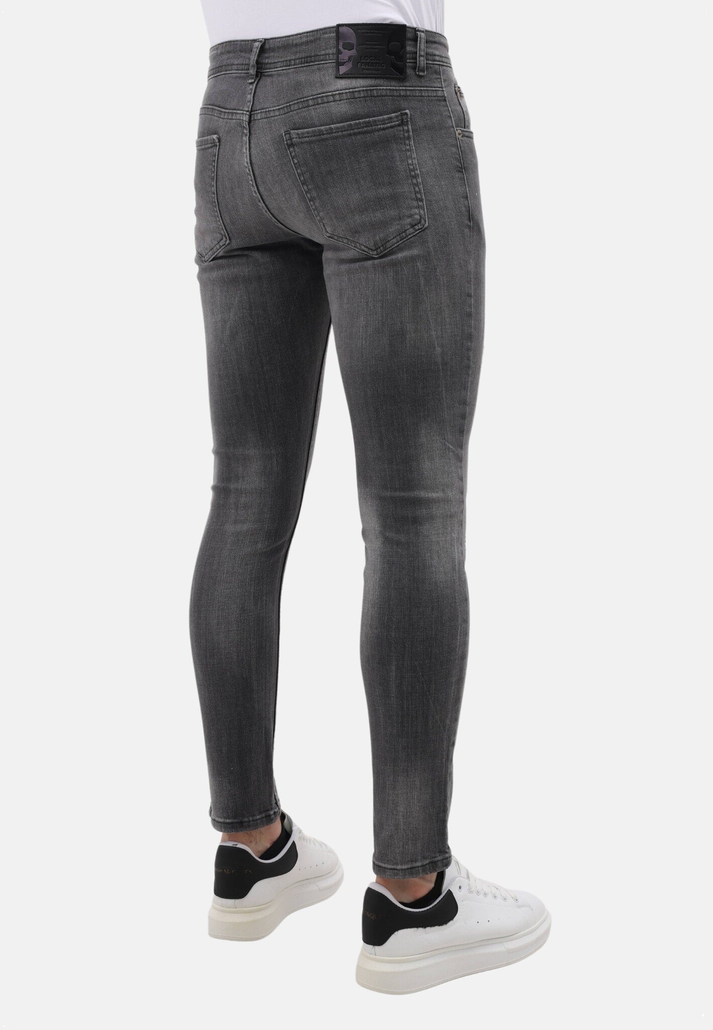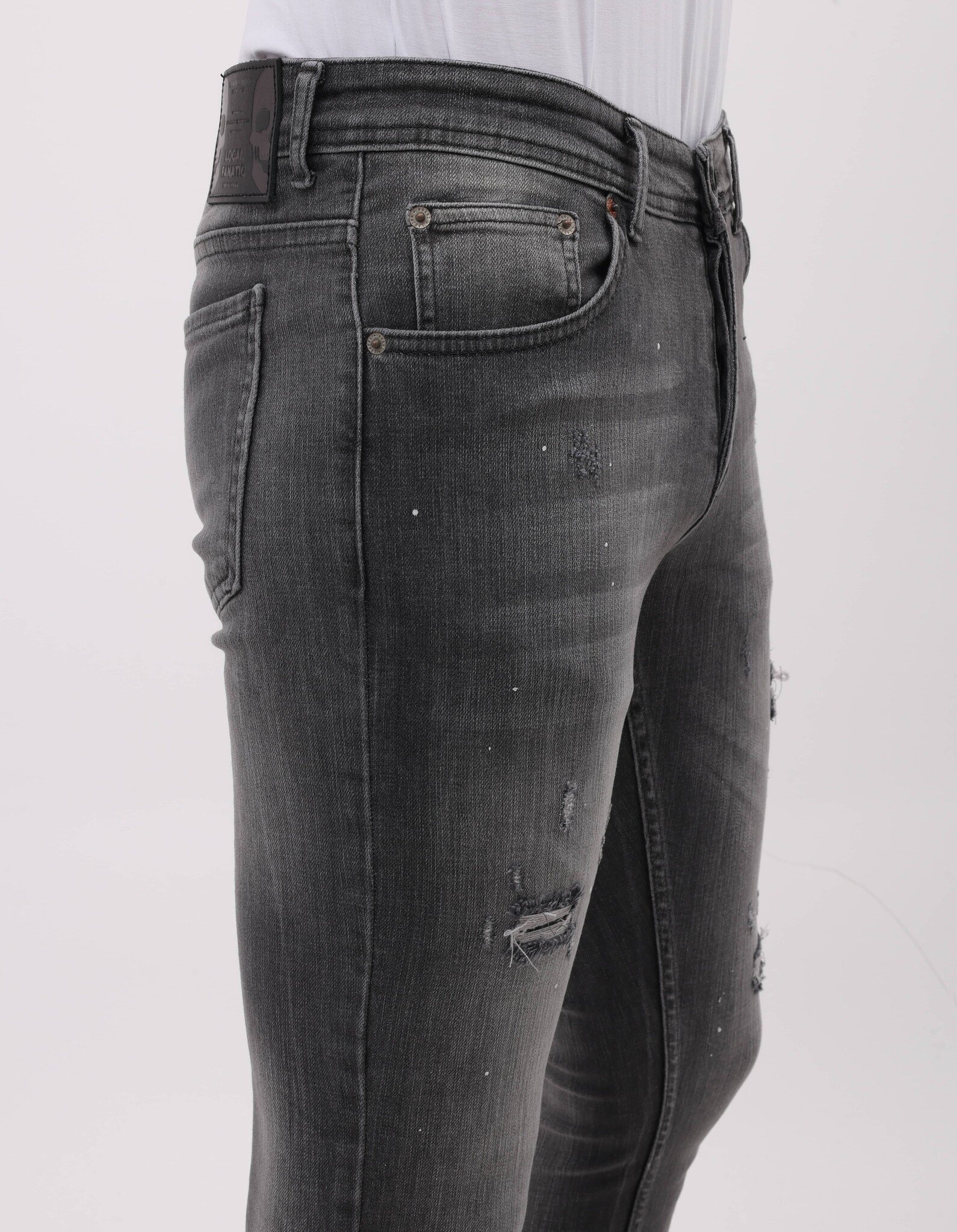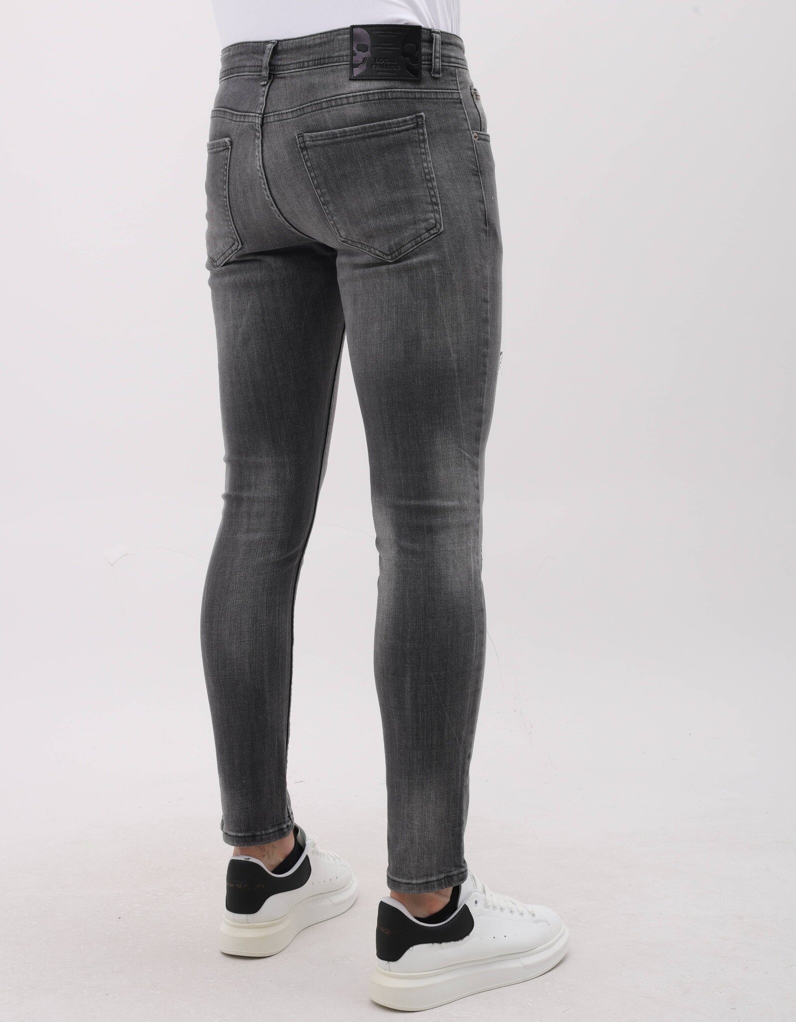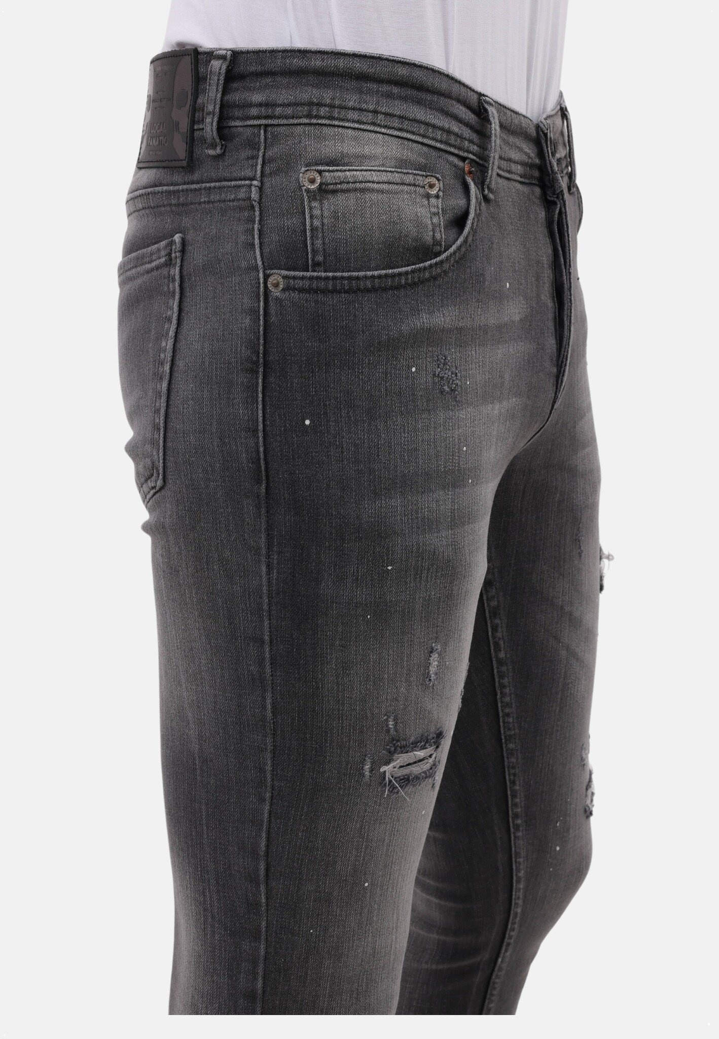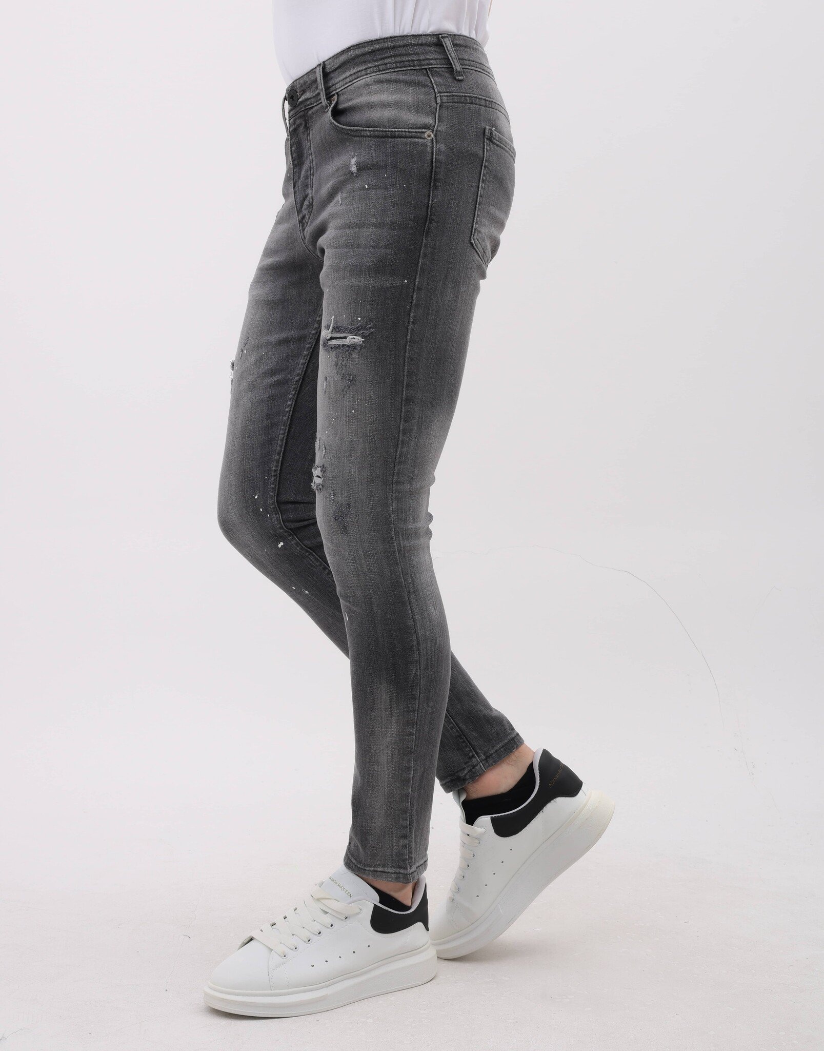 Stonewashed Slim Fit Jeans med Rips Herr - MM-S-115 - Grå