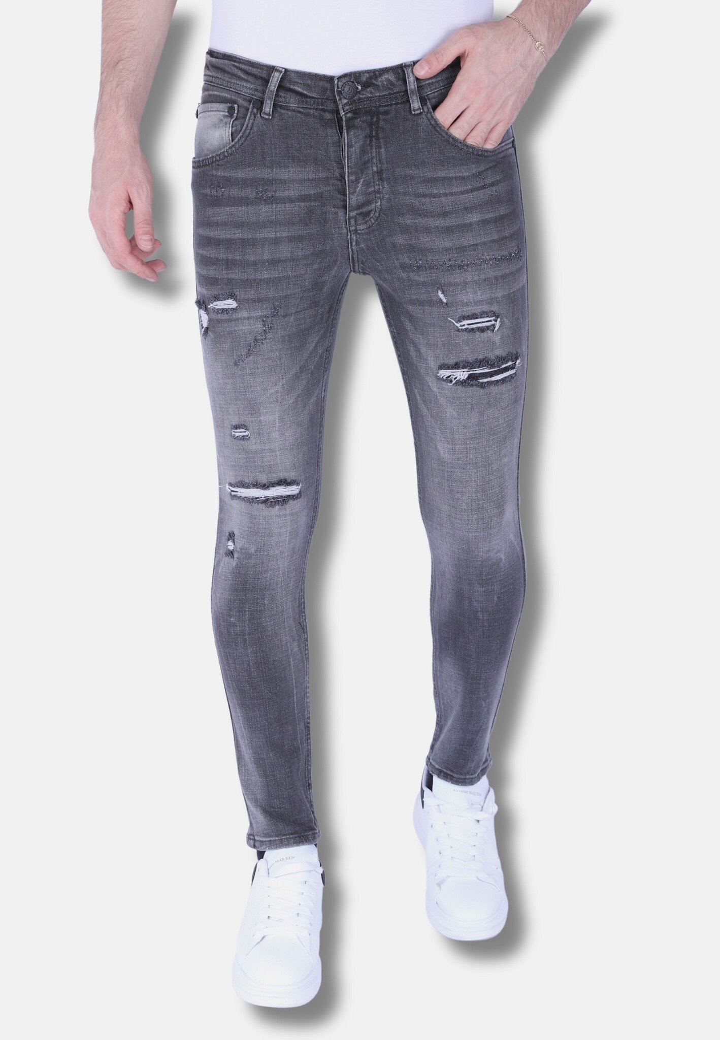 Stentvättade Slim-Fit Herrjeans Med Stretch - 1093 - Grå
