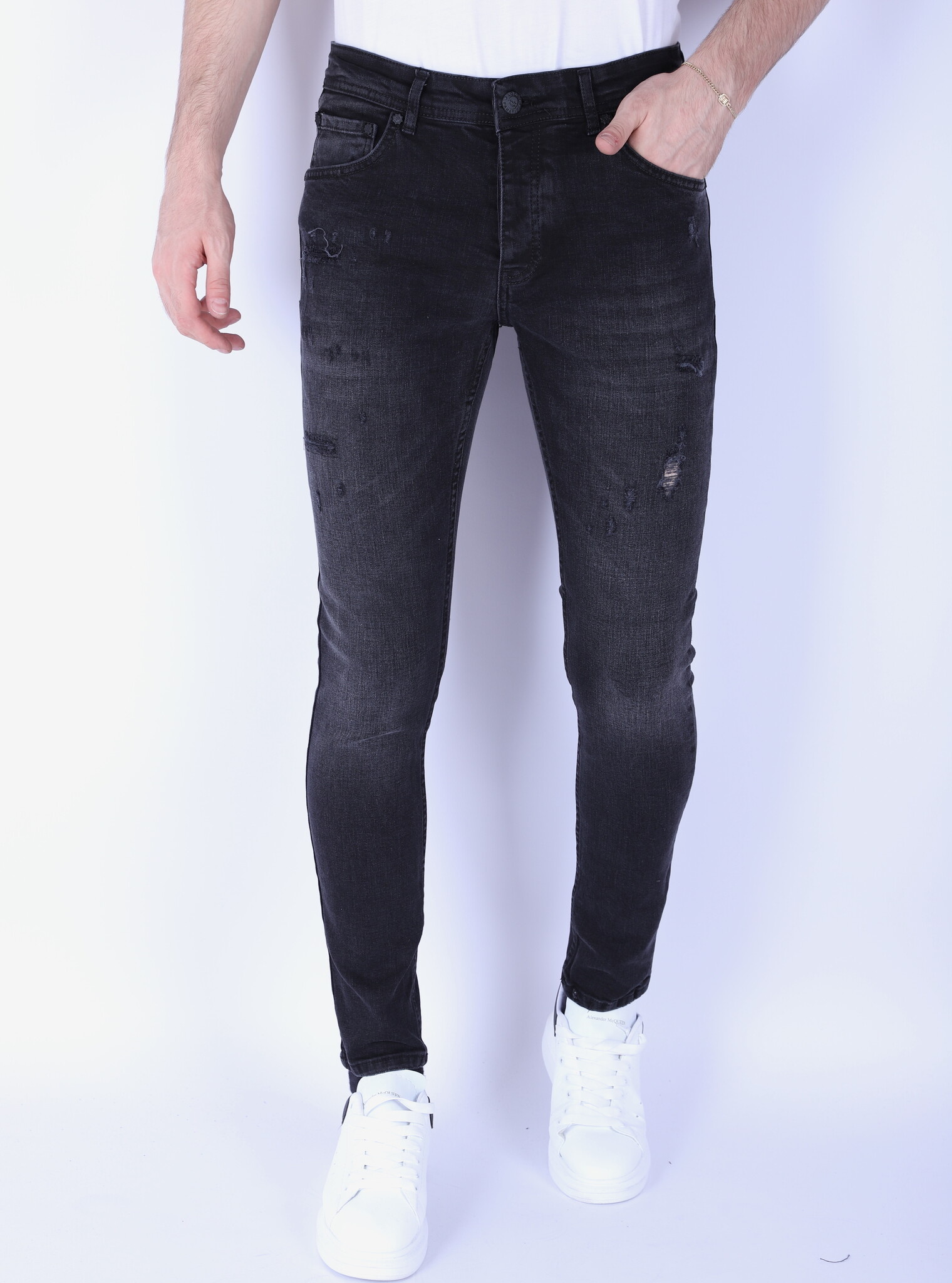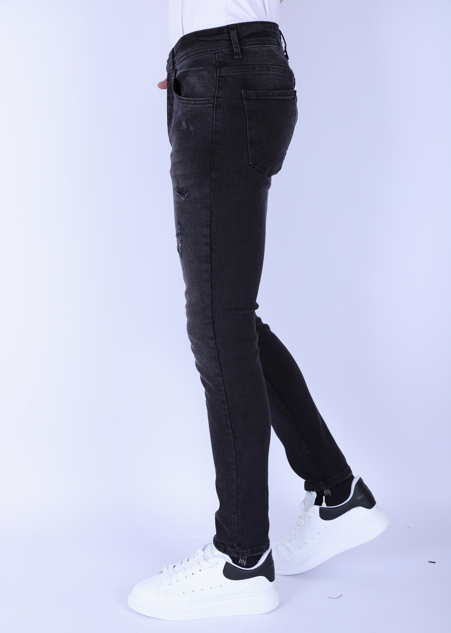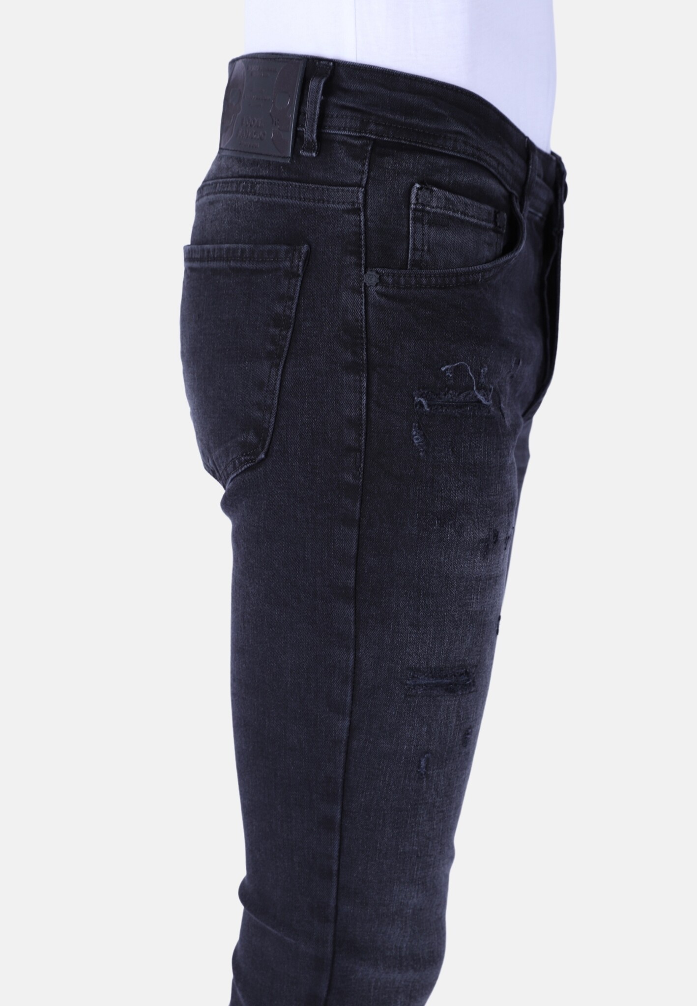 Stone Washing Men Slim Fit Jeans med Stretch - Svart