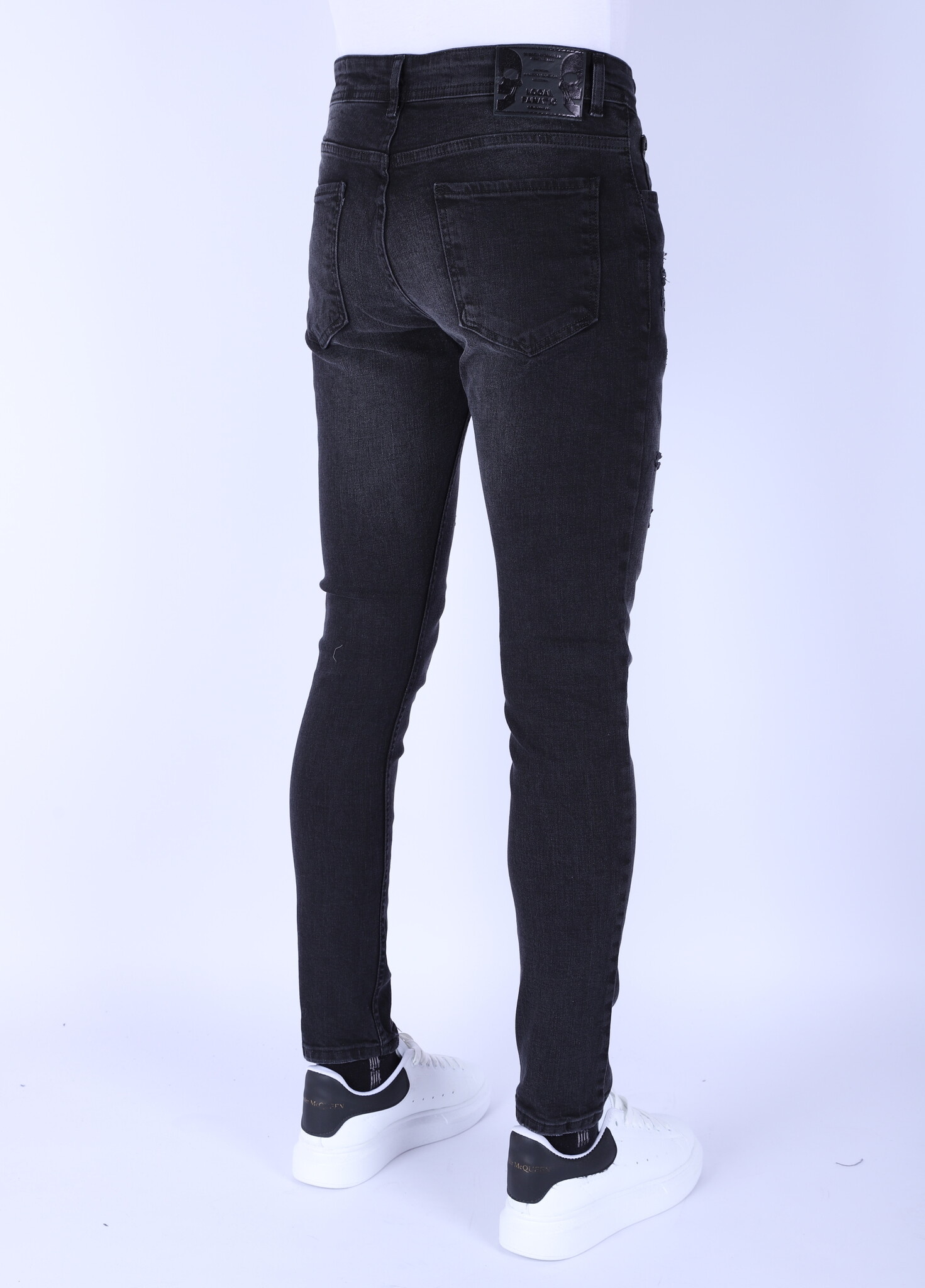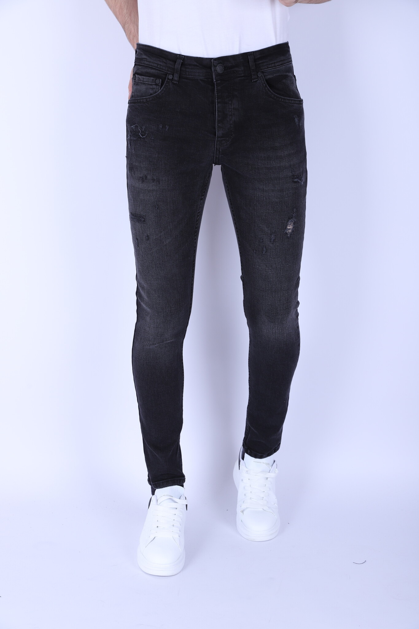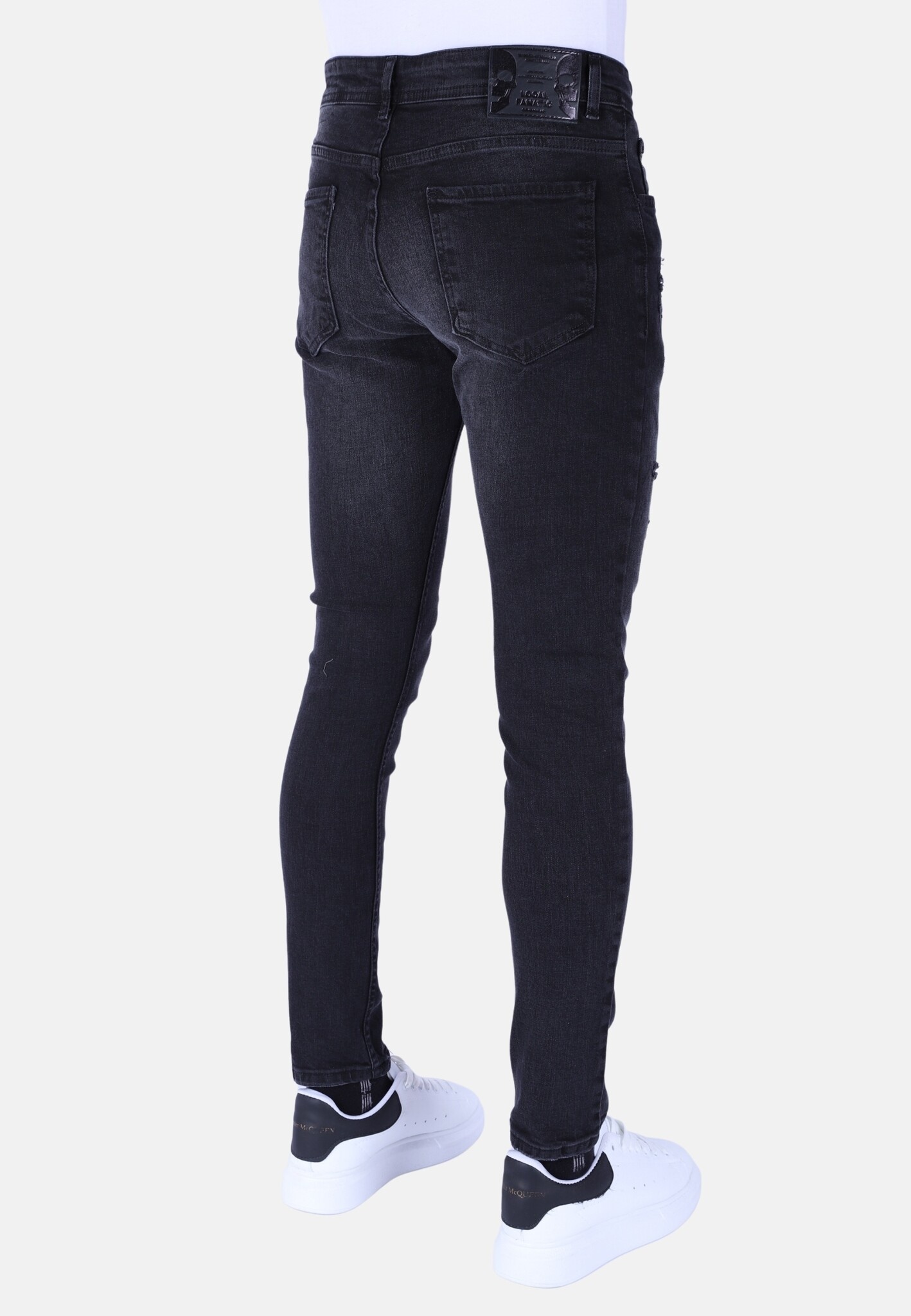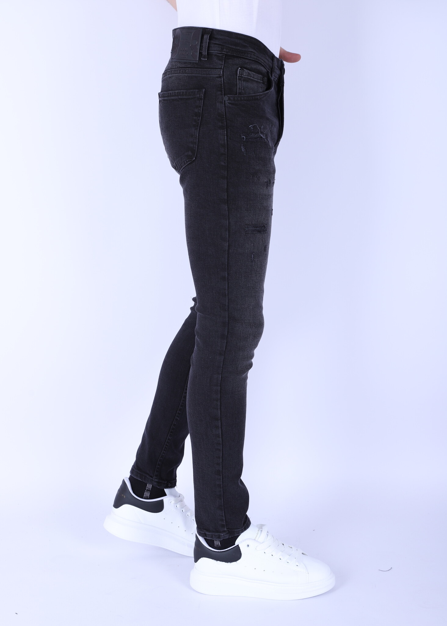 Stone Washing Men Slim Fit Jeans med Stretch - Svart