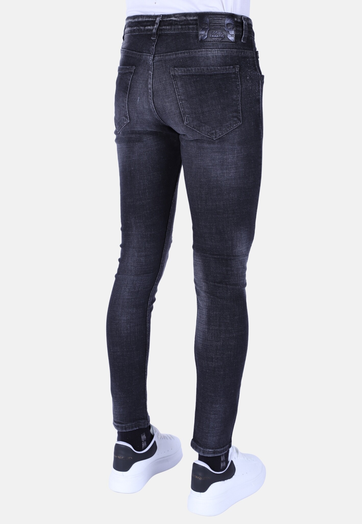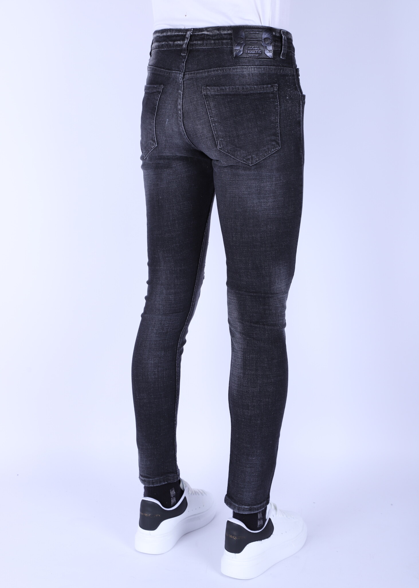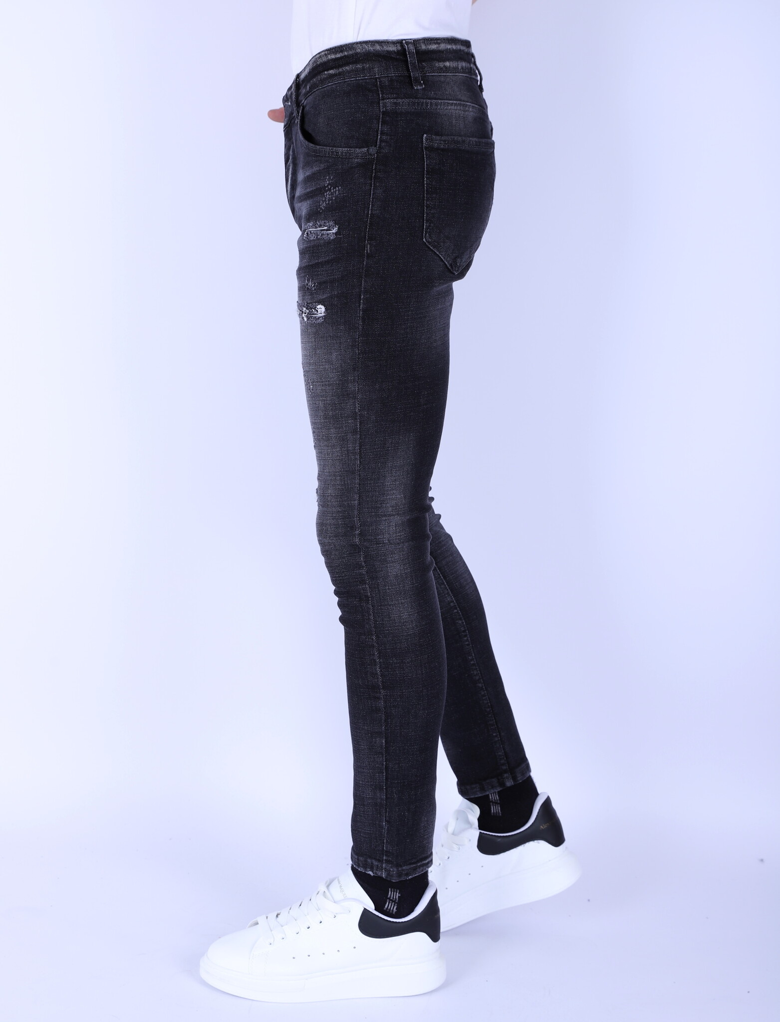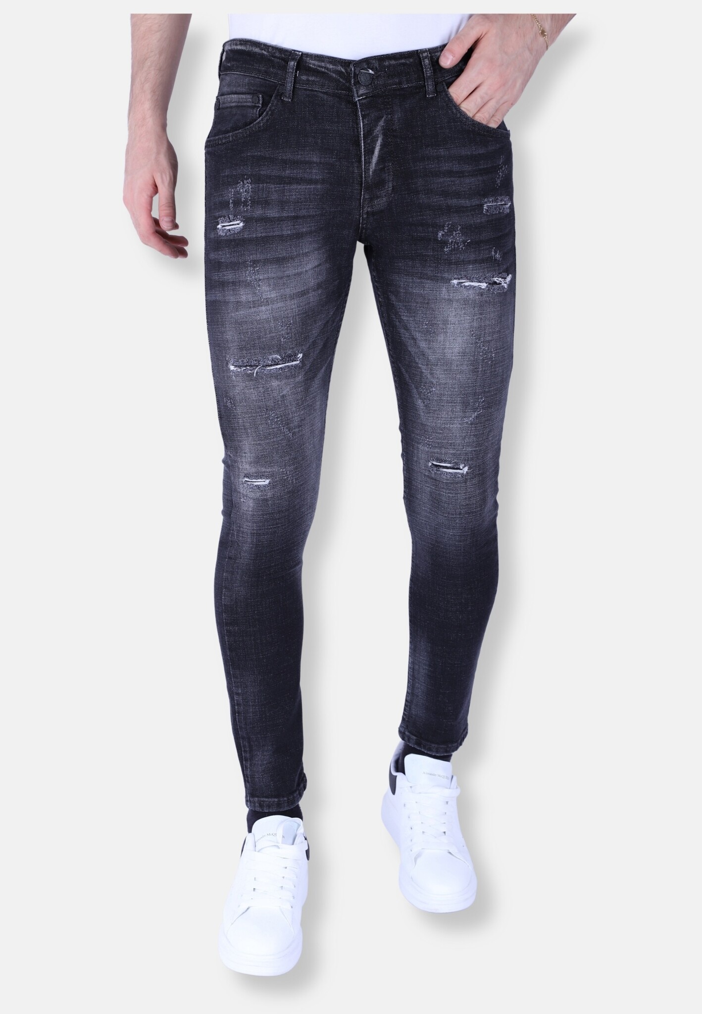 Stonewash Jeans Slim Fit För Män Med Revor - 1096 - Grå