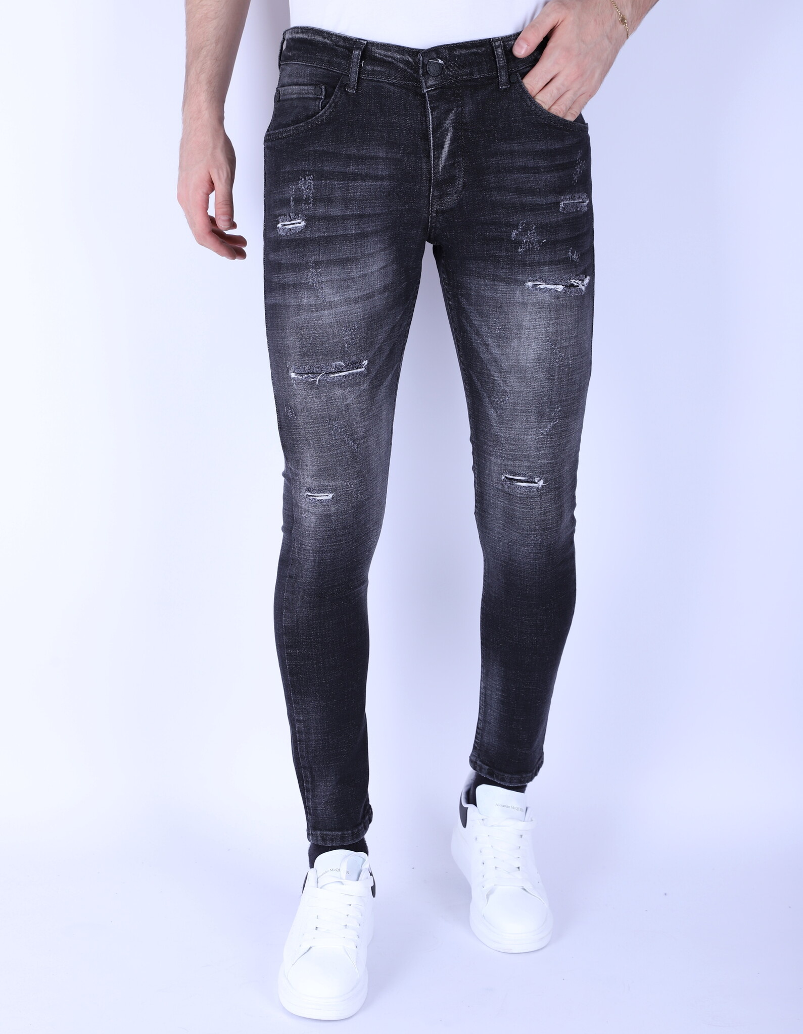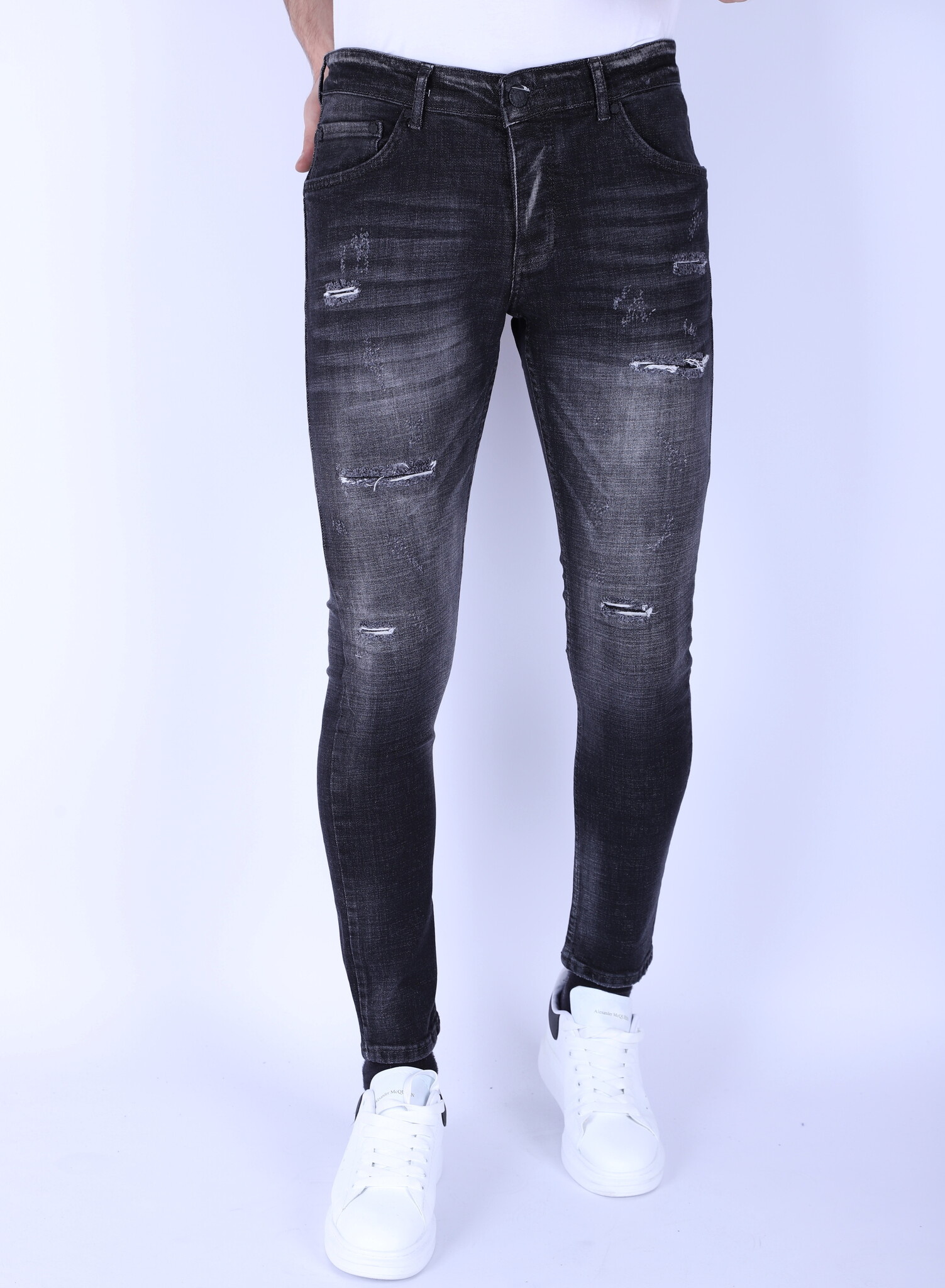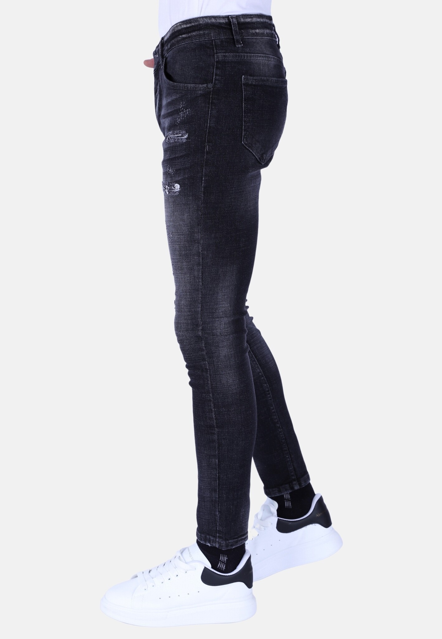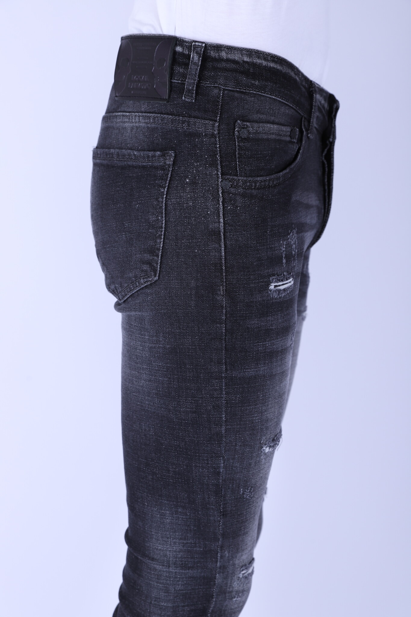 Stonewash Jeans Slim Fit För Män Med Revor - 1096 - Grå