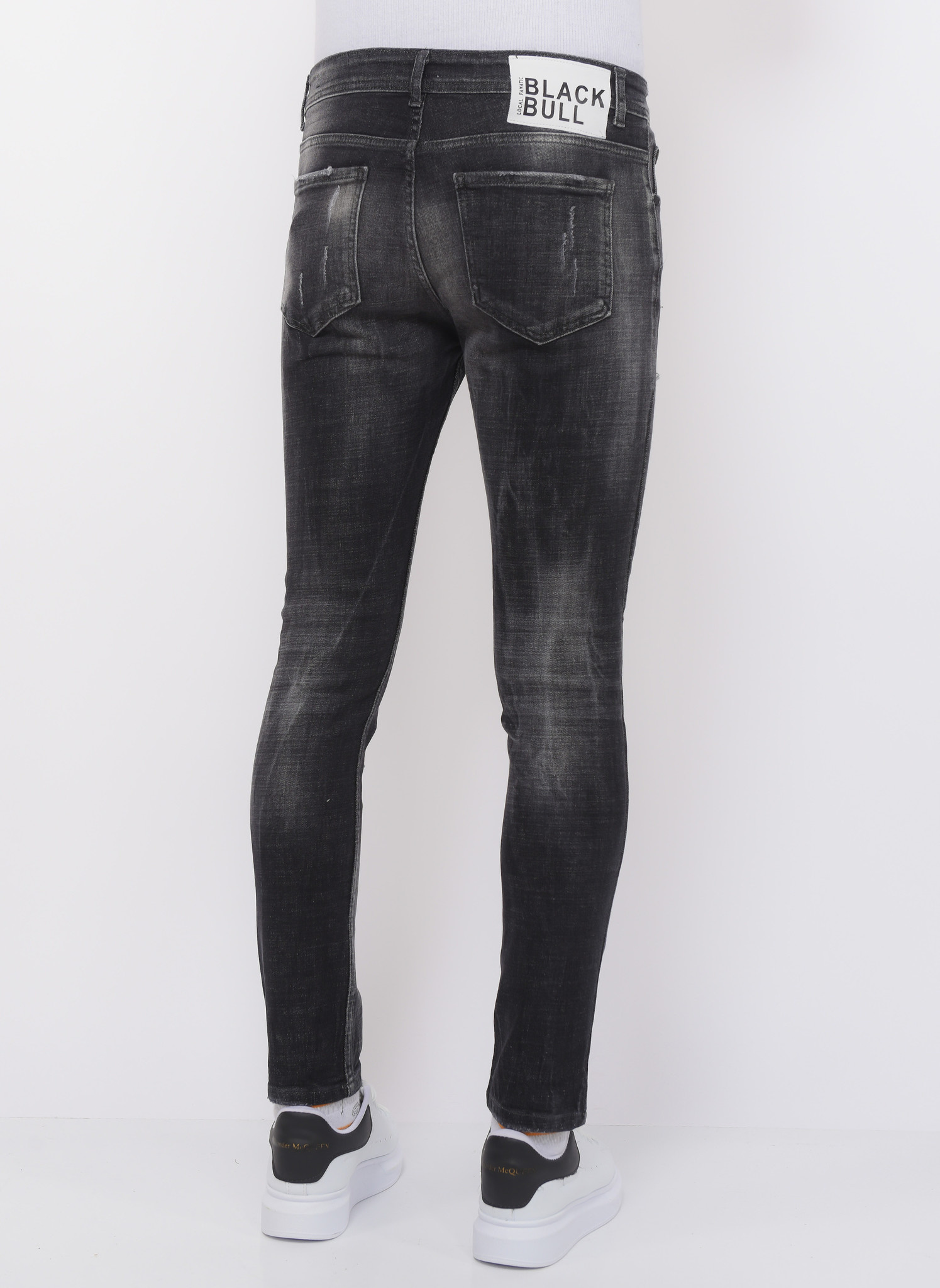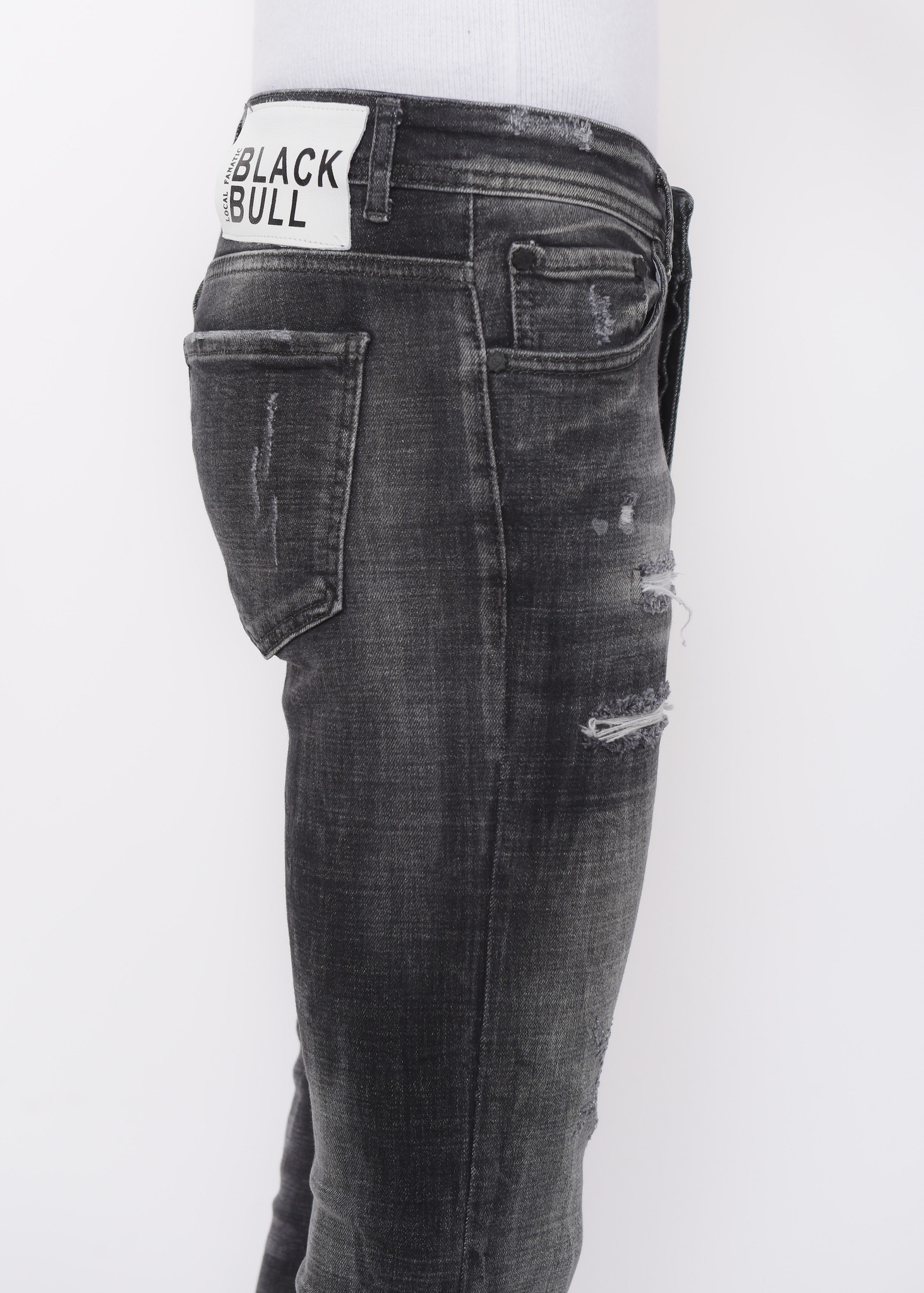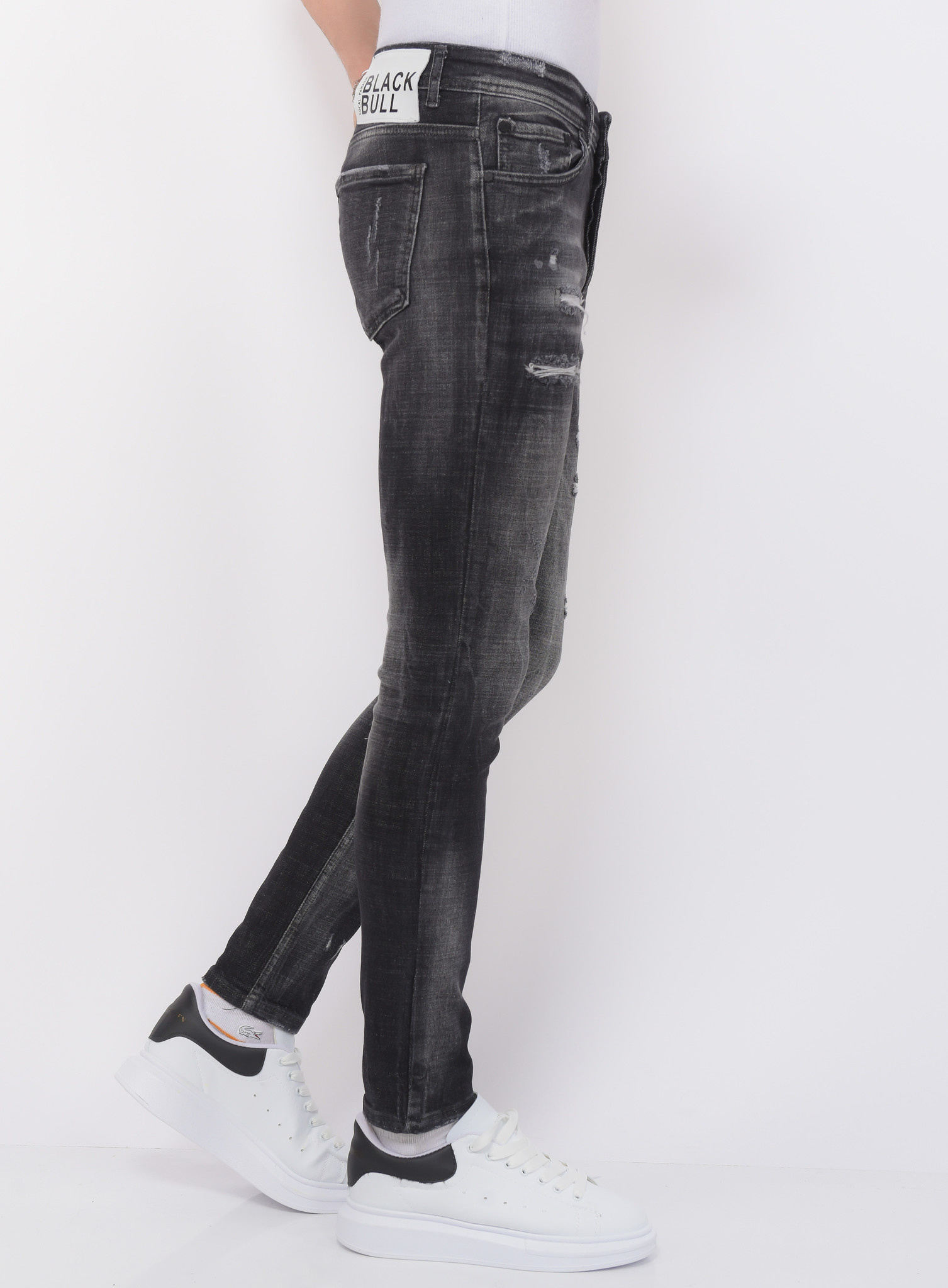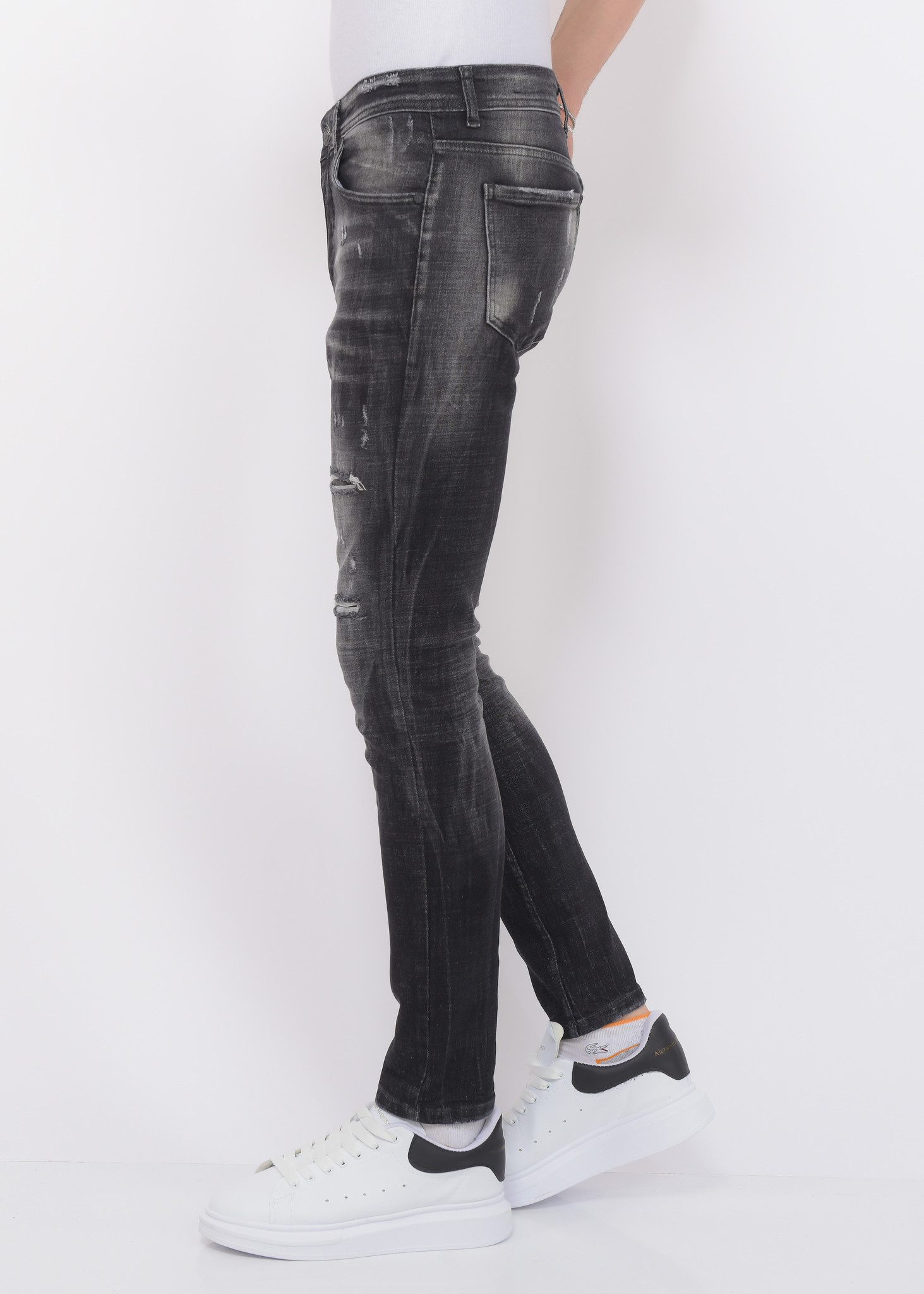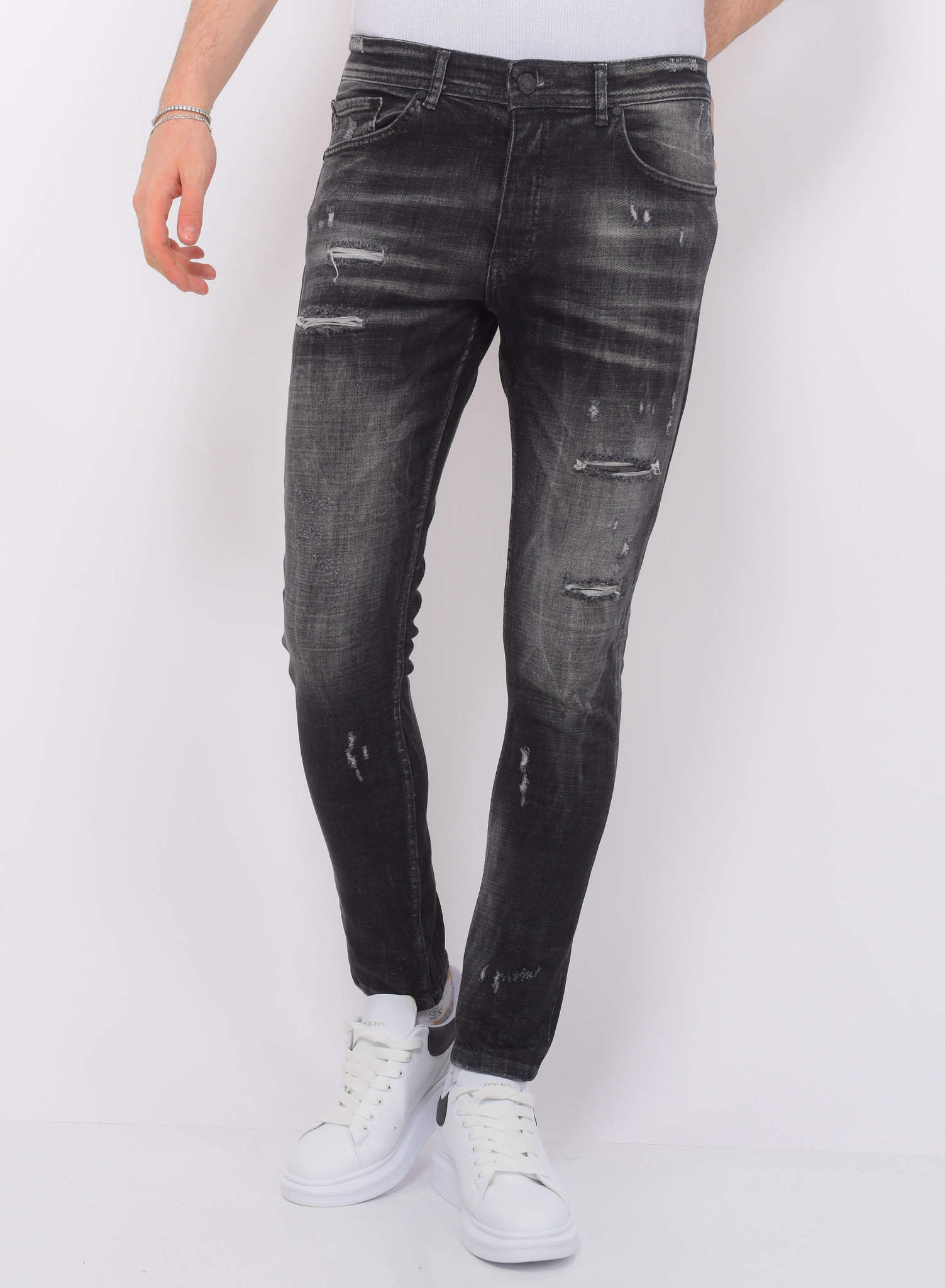 Stonewashed Ripped Män Jeans Slim Fit -1085 -Svart