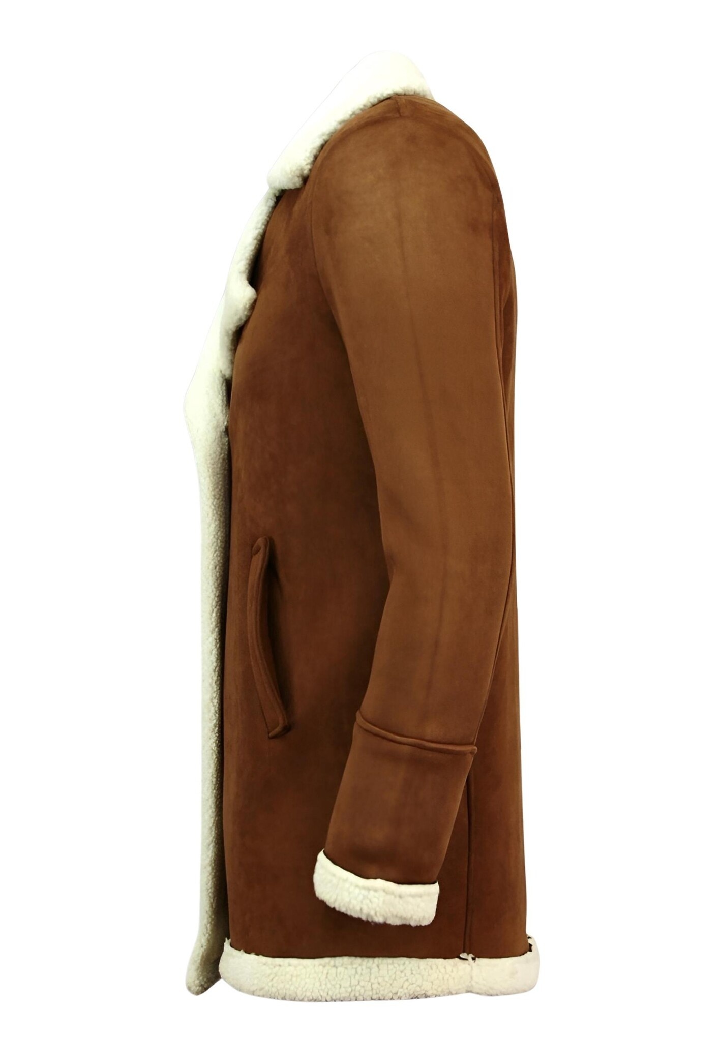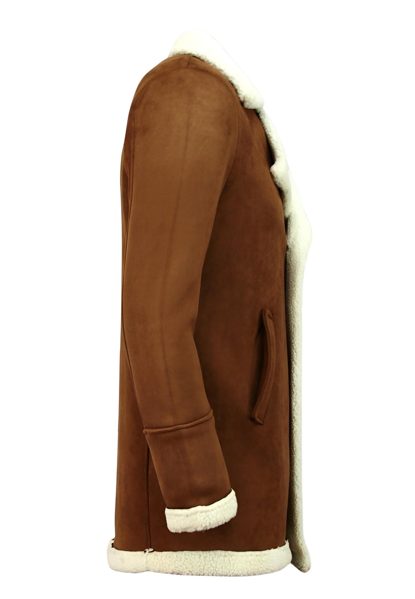 - Suede Shearling Coat Camel
