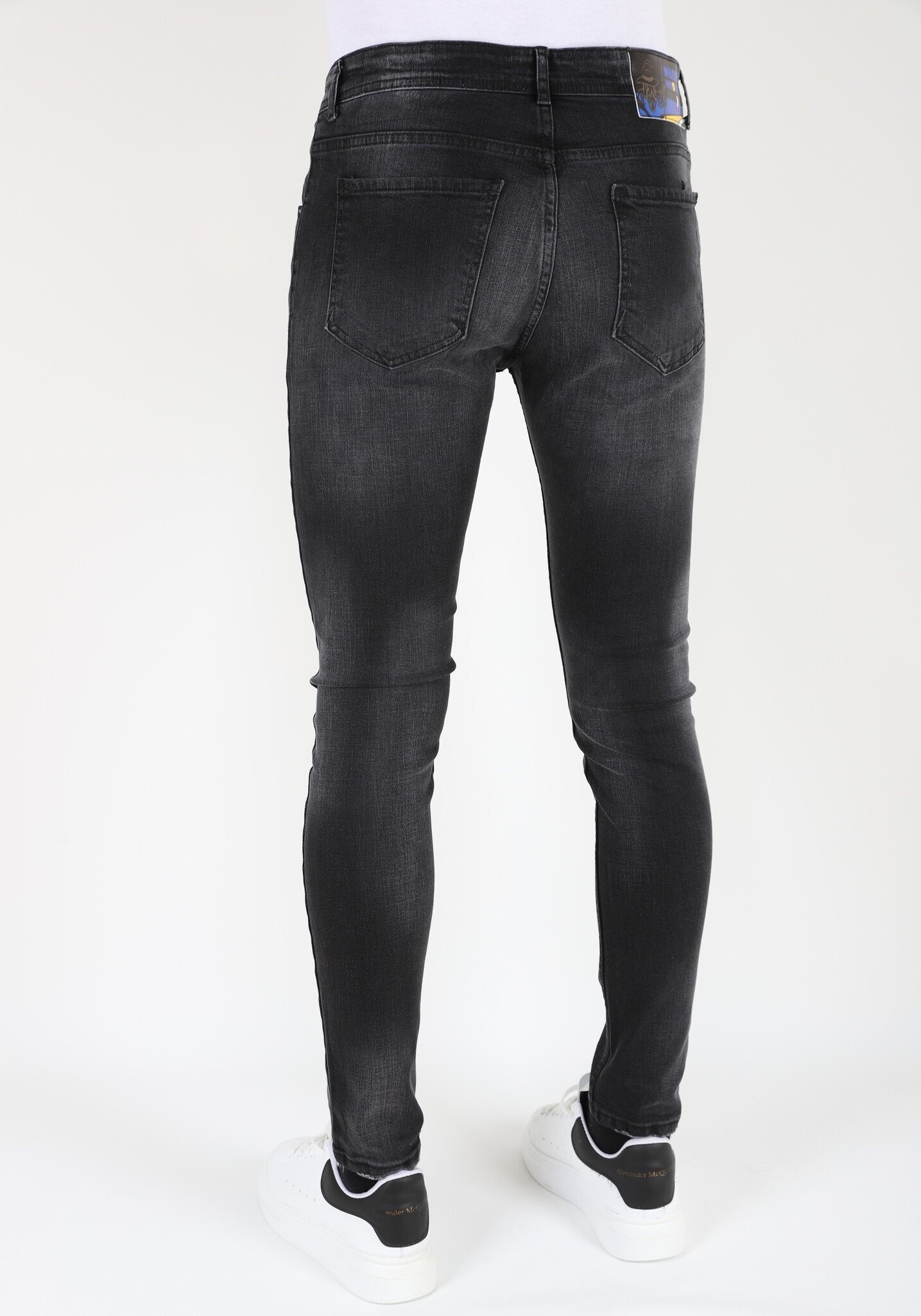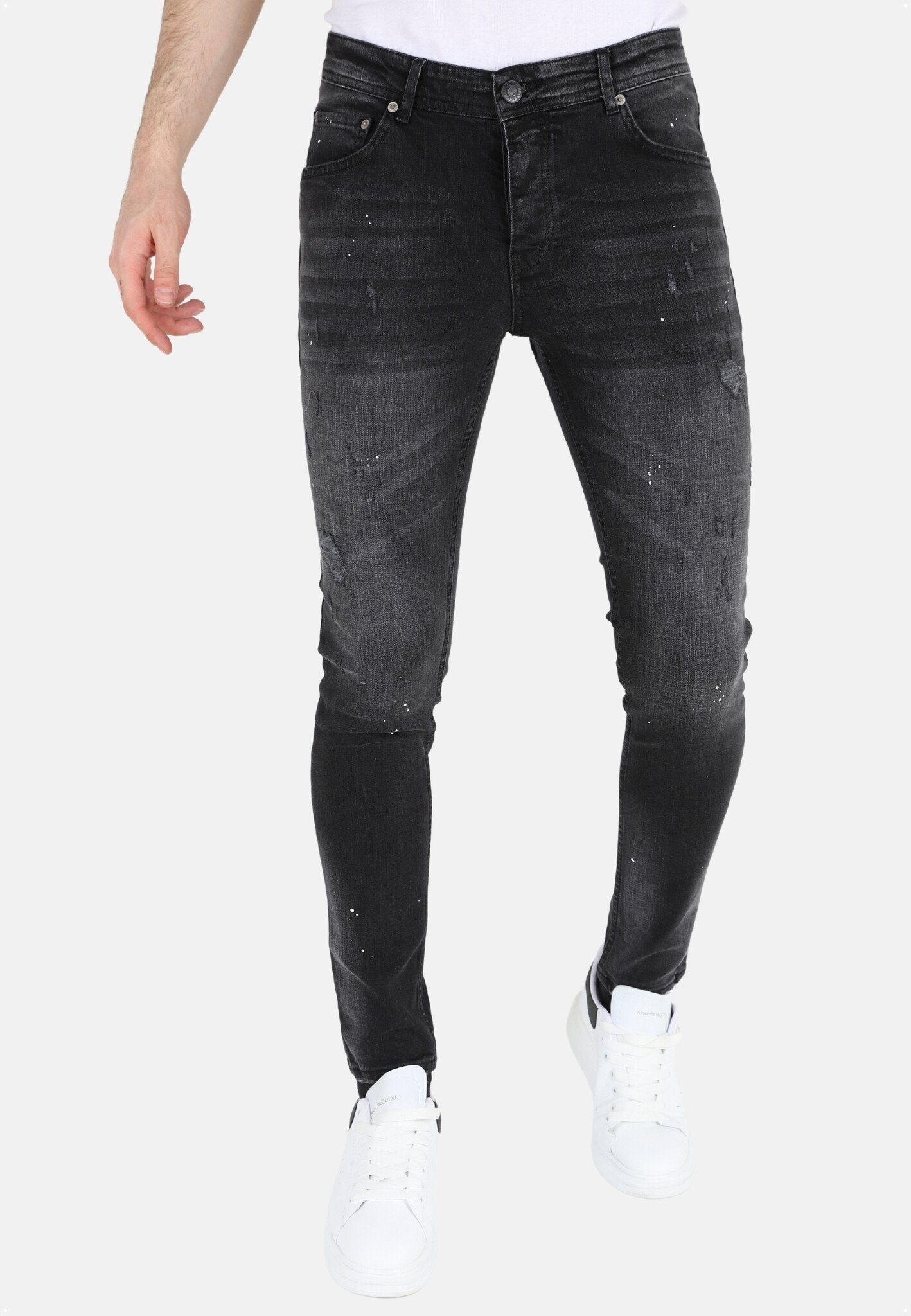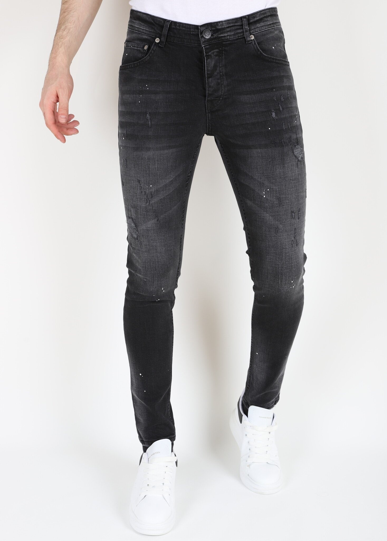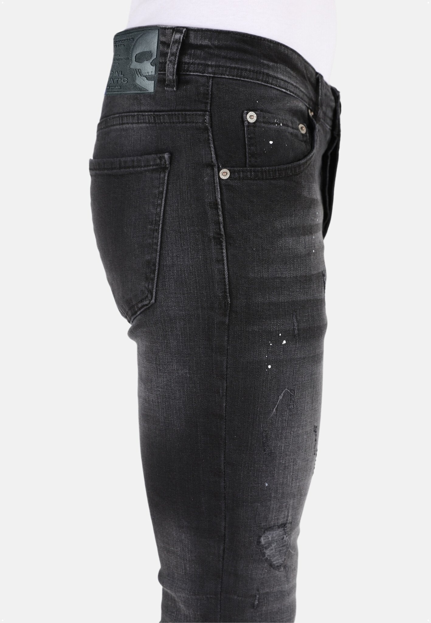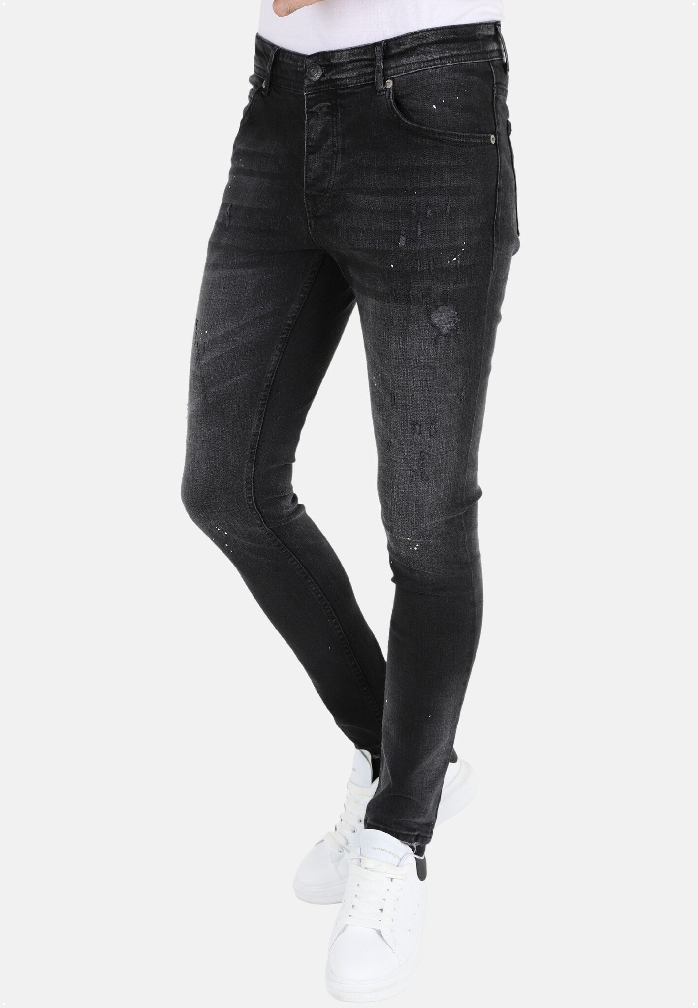 Svarta Slim Fit Stretchjeans med hål för män - MM113