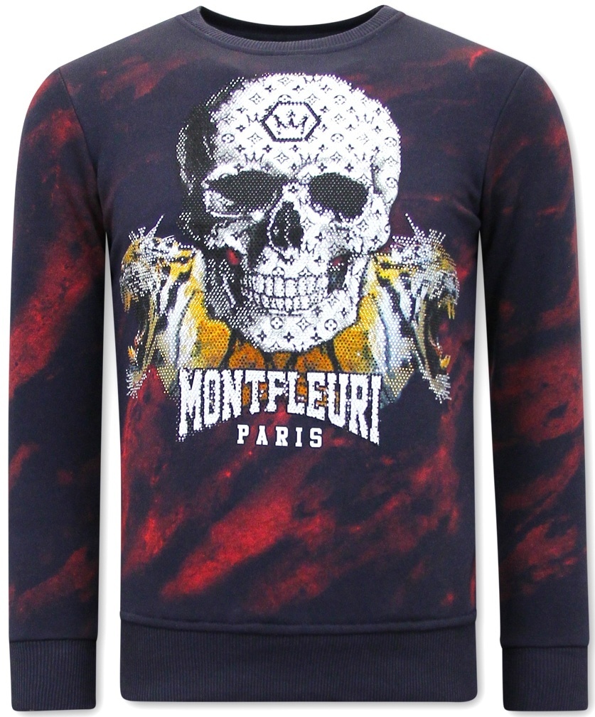 Sweatshirt Herr Skull Tiger - 3680 - Röd