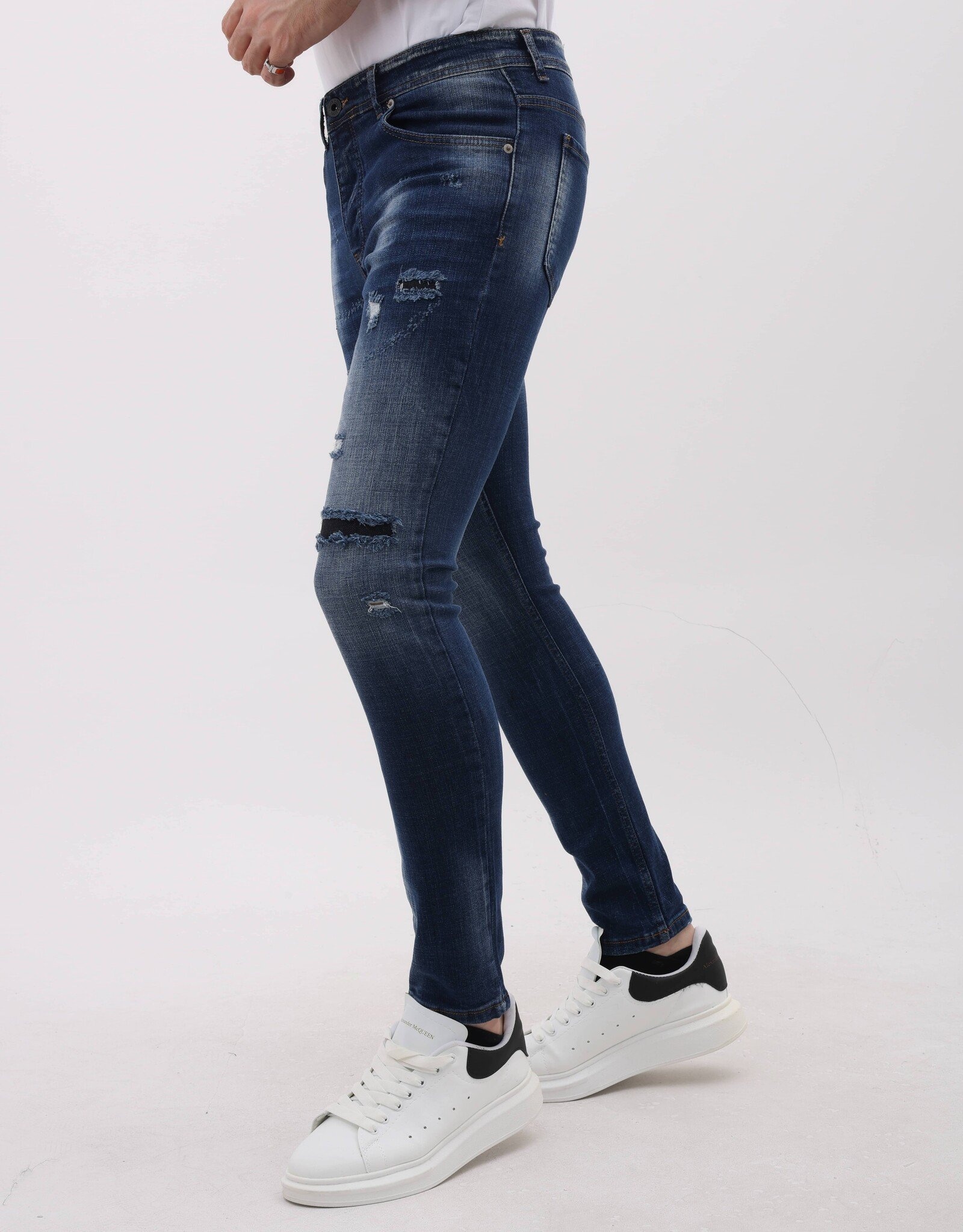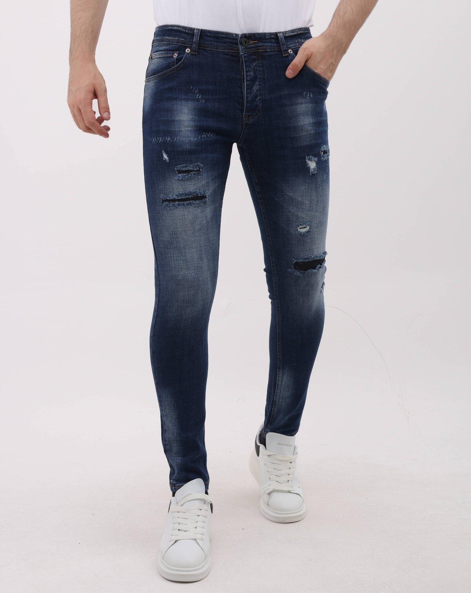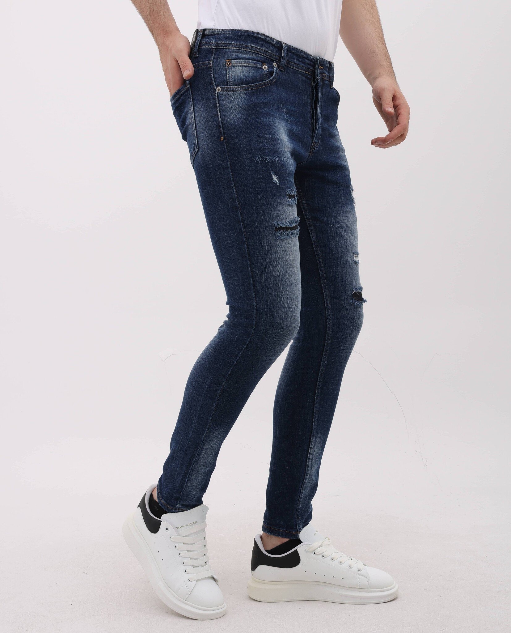 Tighta jeans Slim Fit-jeans för män med revor - MM-S-100 - Blå