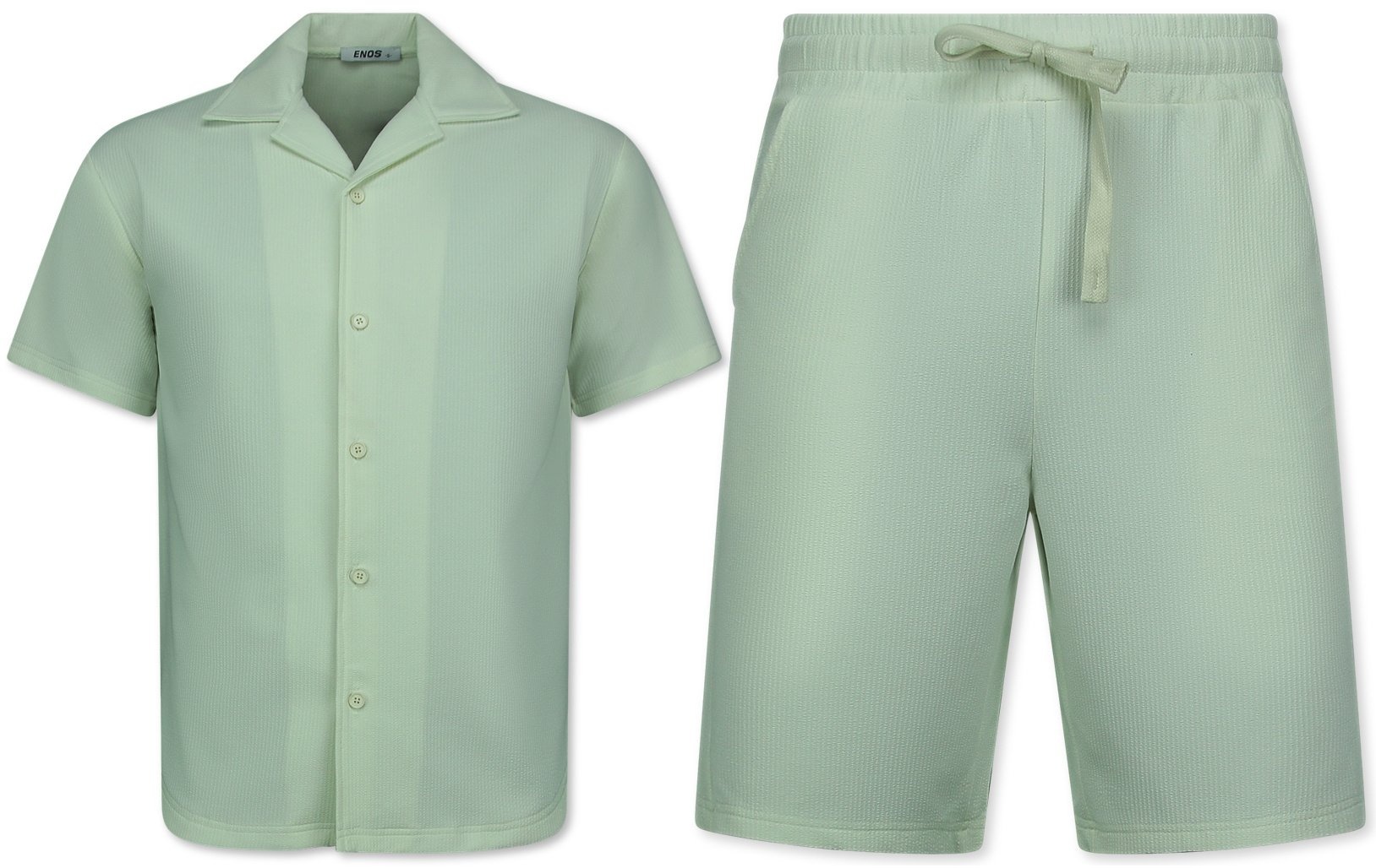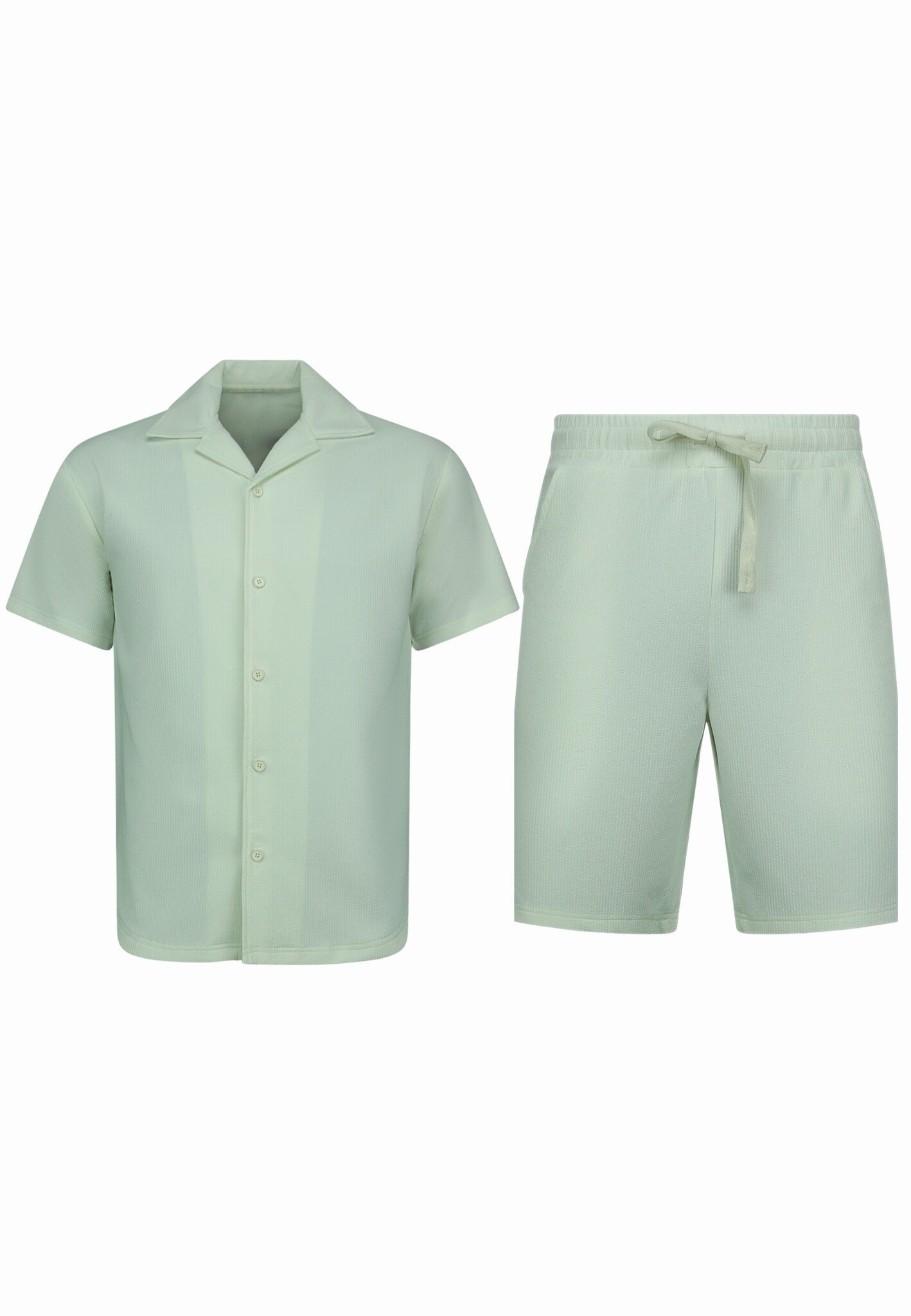 Twinset - Ribbad överdimensionerad skjorta - Sommarset Herr - Tvådelat set - Set med dragkedja - F-915 - Beige