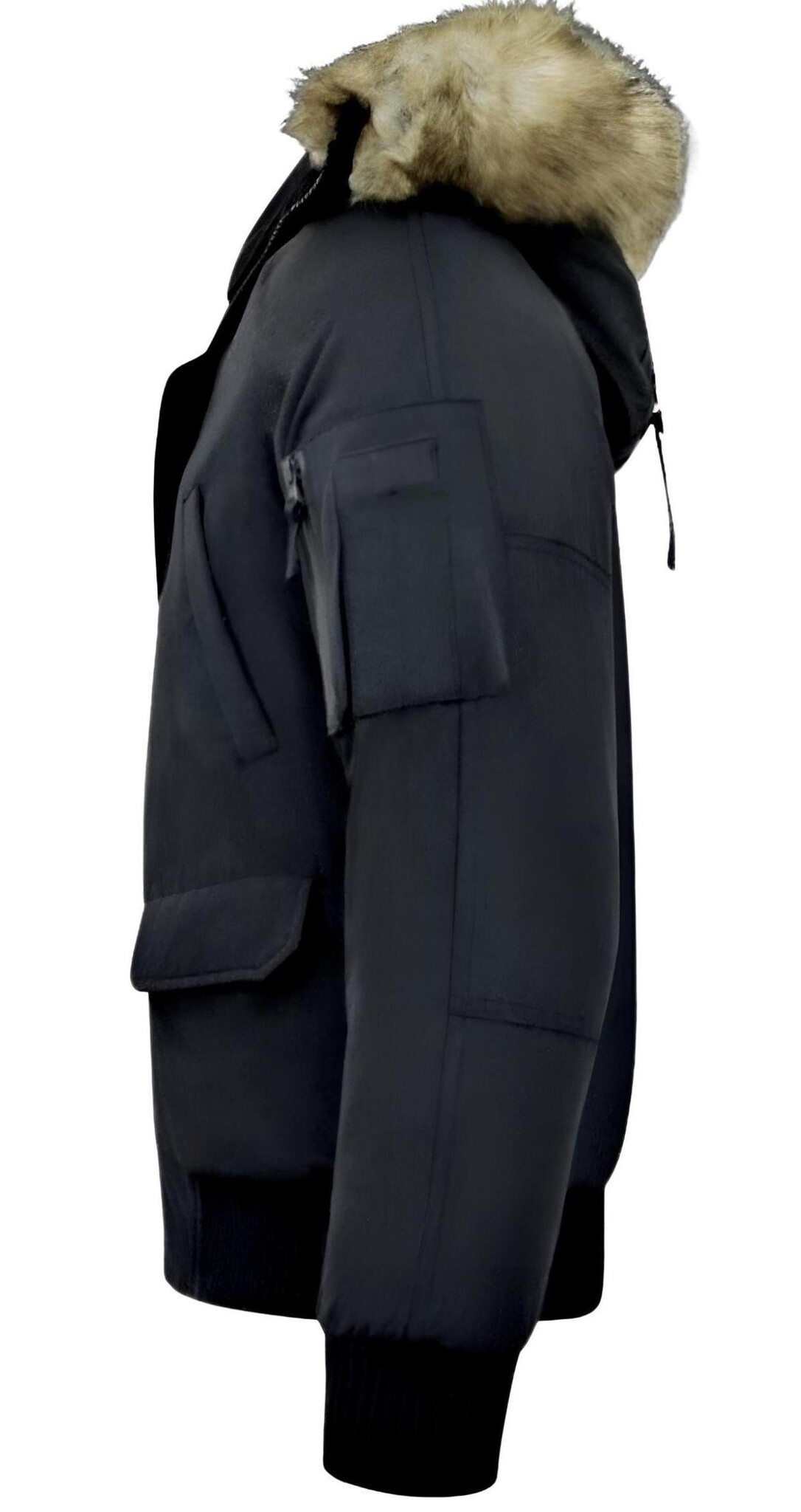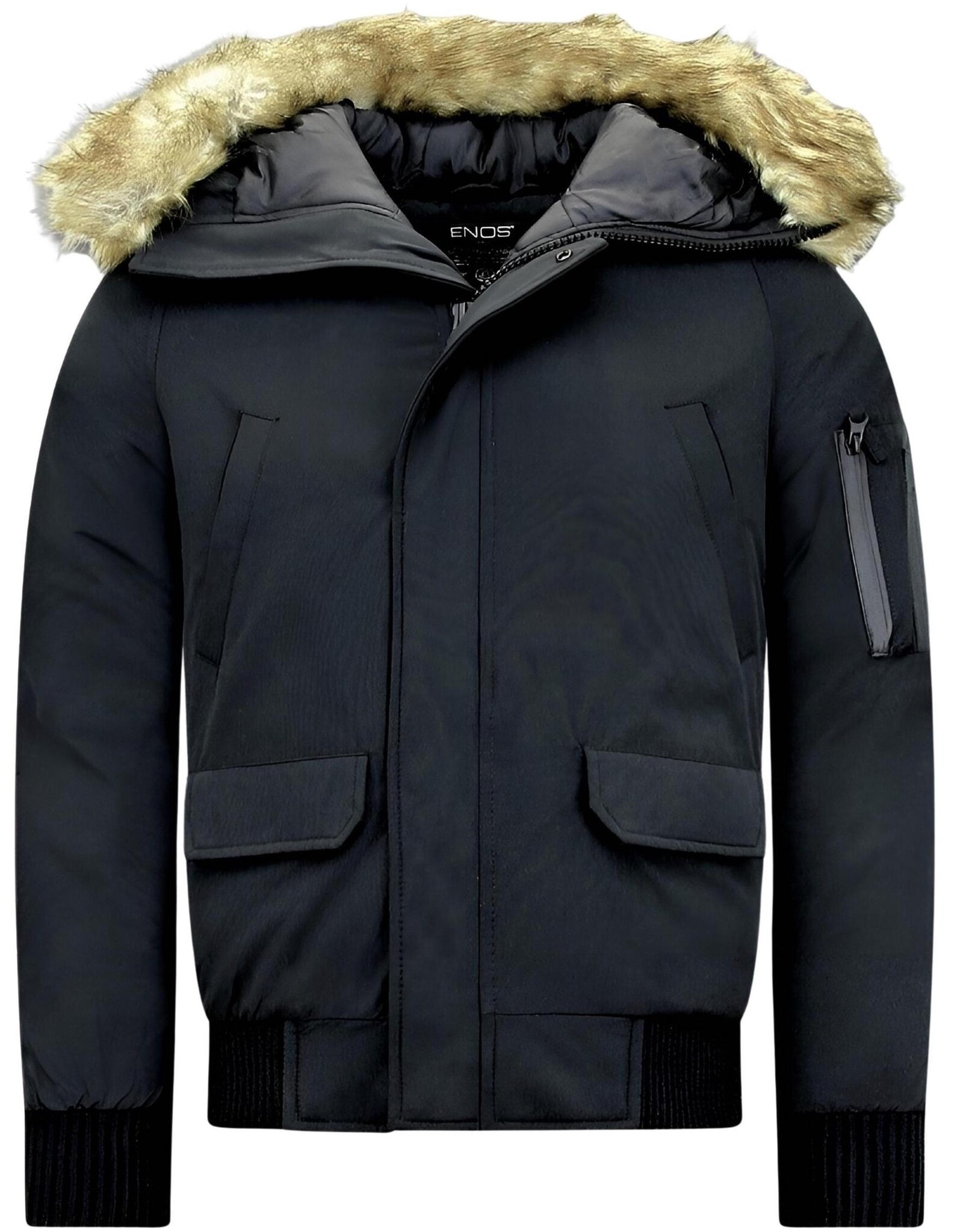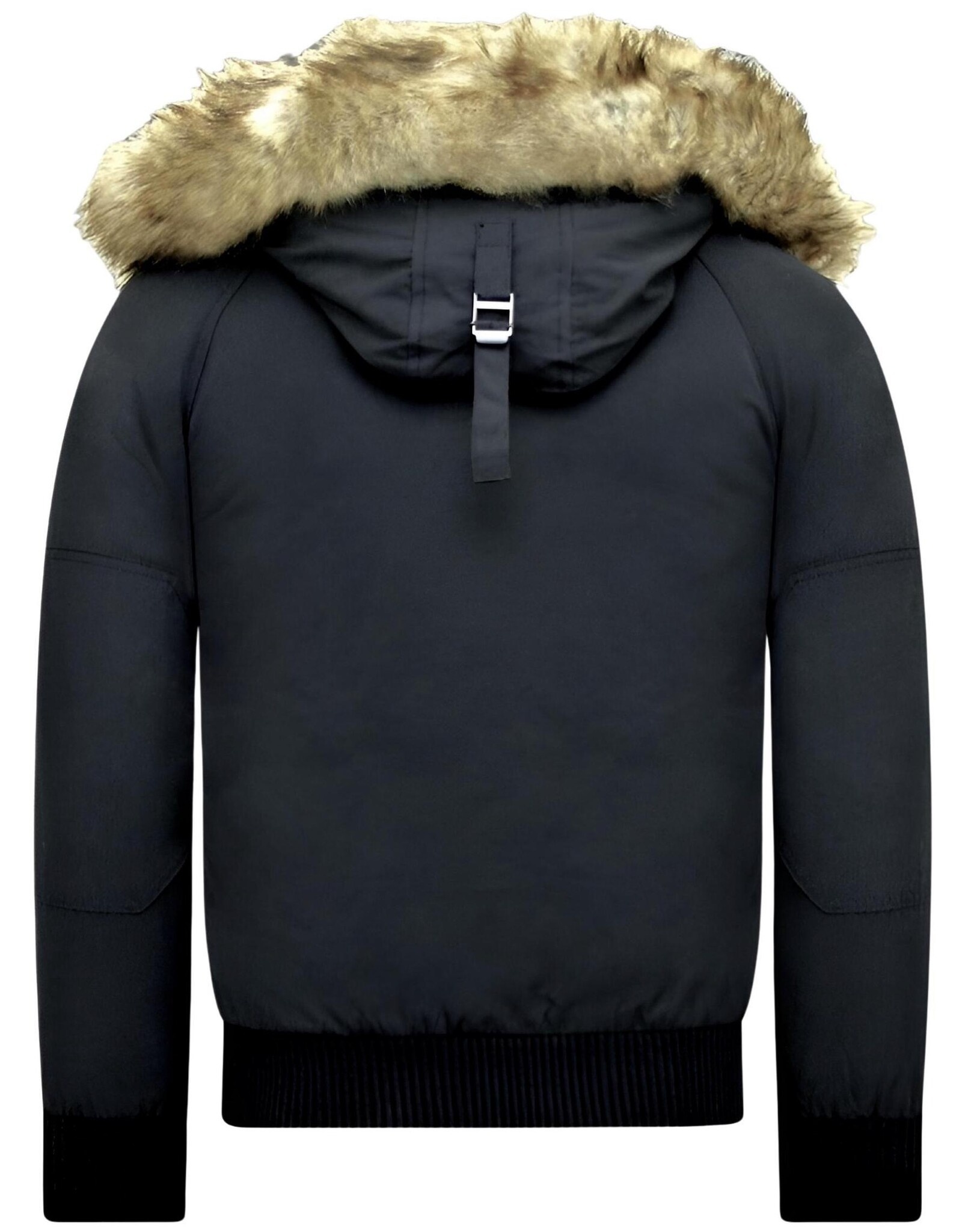 Vinterjacka För Herr Kort - Fuskpälskrage - Svart