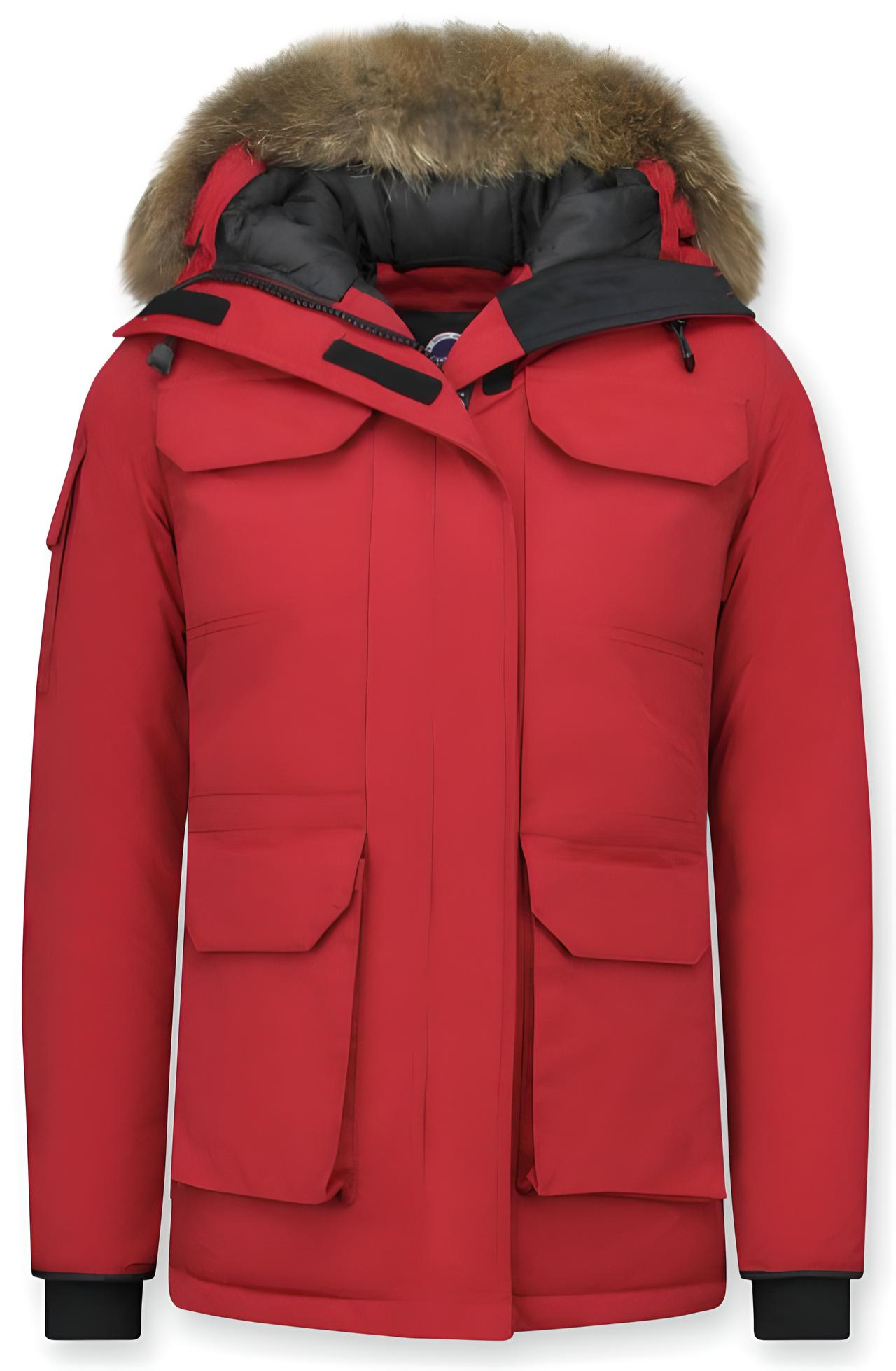 Vinterrock Medellängd - Pälskrage Parka Damer - 7603R - Röd